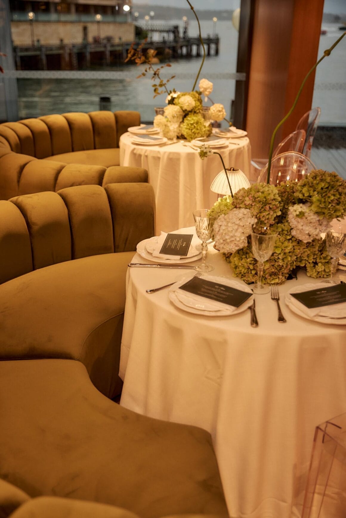 Design-forward furniture and decor that elevates the space without overpowering it – that was the brief for SOCO Hire. For this shoot, their carefully curated pieces brought a fresh, contemporary edge to the luxurious setting. Clean lines, muted tones and luxe linens worked in perfect harmony with the florals and styling, helping to transform the Guest House into a chic, intimate celebration space perfect for a party. Oh, and just check out that bar on the Terrace. D.R.E.A.MY!