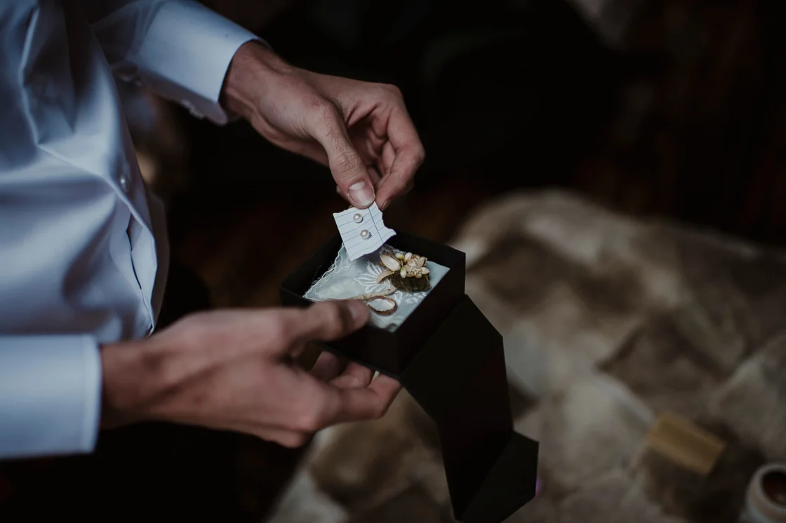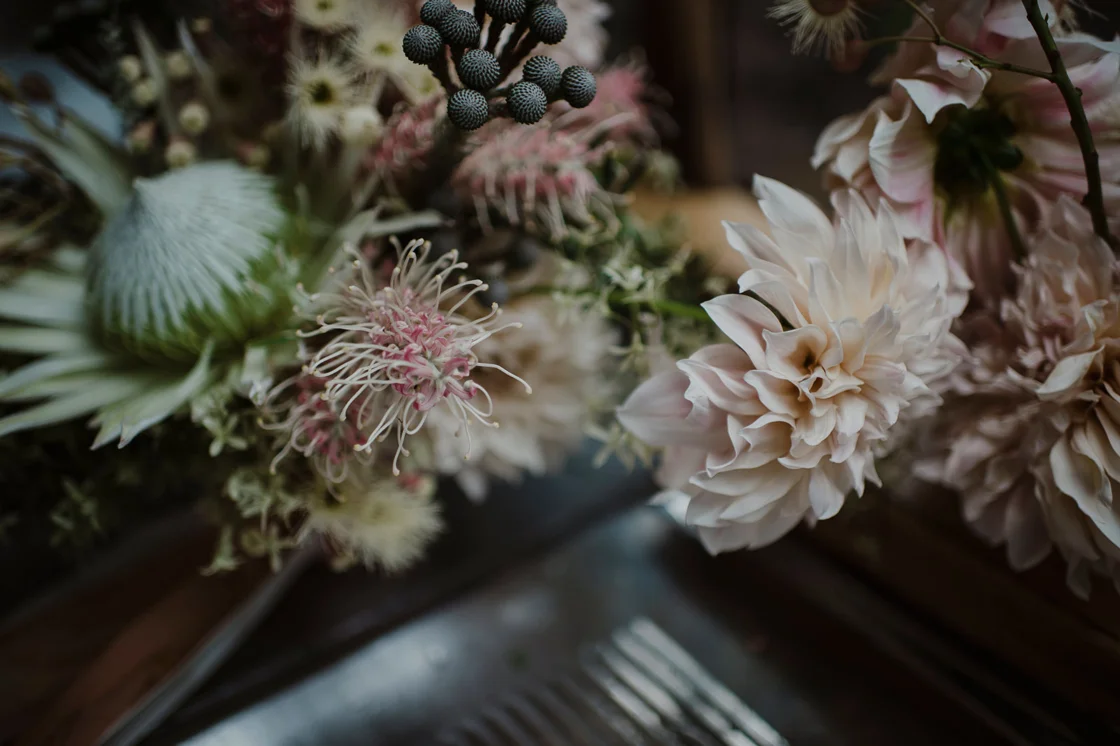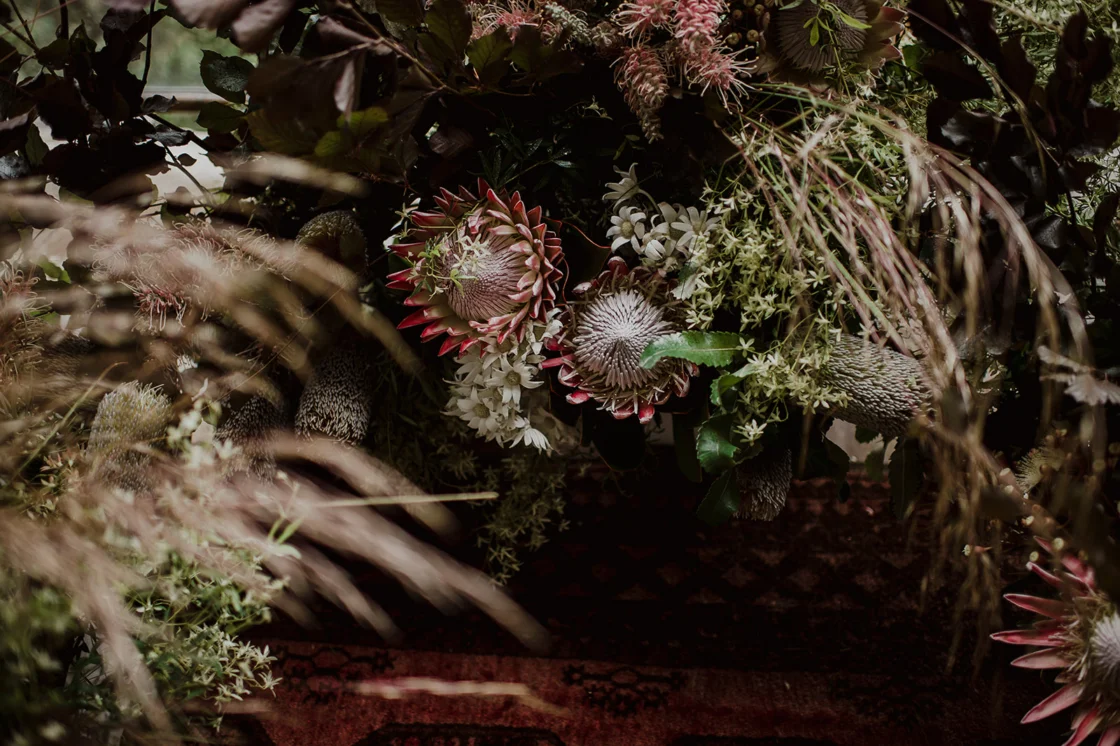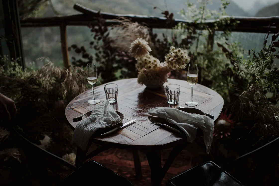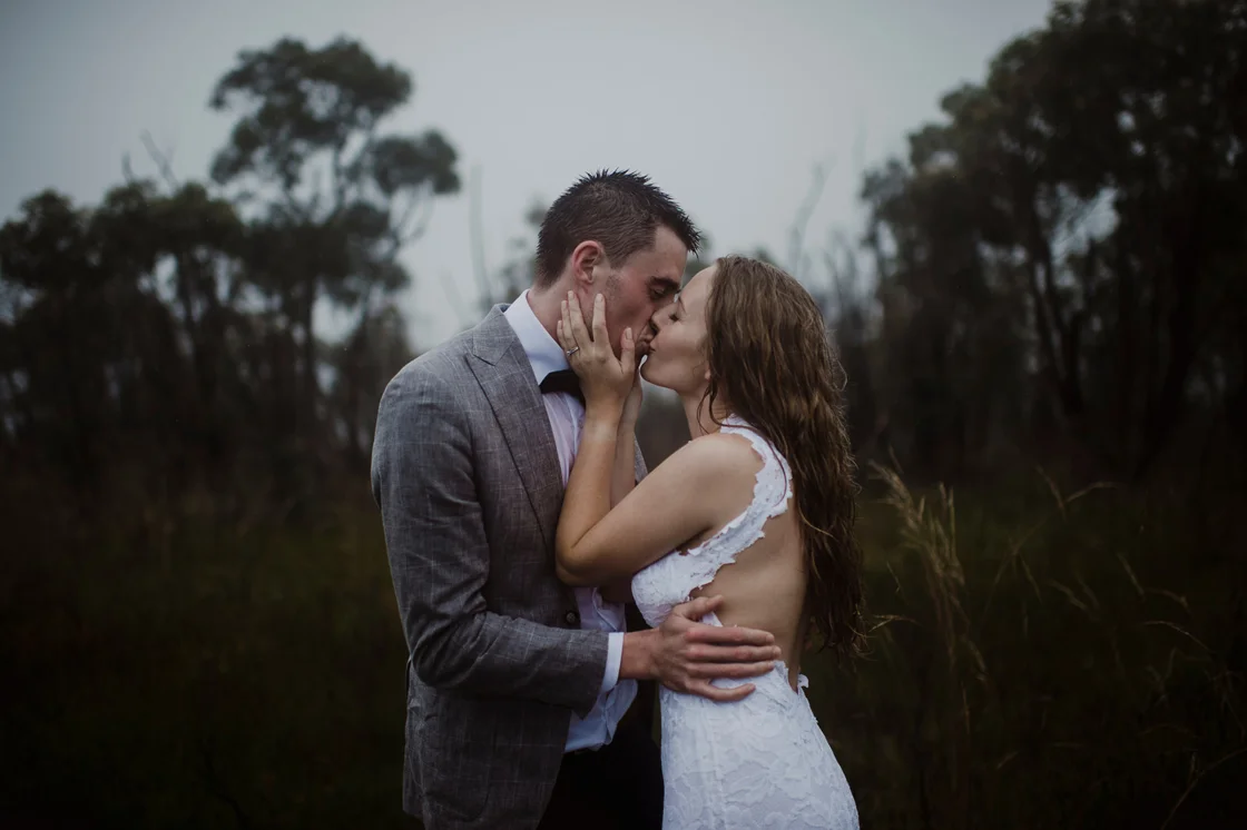 FAVE DETAILS “One of our favourite details was the venue itself. The Treehouse Blue Mountains is one of the most spectacular accommodations we have ever seen! It sits almost 11m above the ground in the tree canopies overlooking Wollemi National park. You could hear the river flowing at the base of the valley, the fog and cloud formation changed by the second and the view was just breathtaking! Although it was December it was actually quite cool due to the rain, which was perfect as there was a fireplace in the treehouse and made the mood and setting so much more magical! Our other favourite detail of the day was hiking up Mount Banks in the pouring rain for our adventure shoot with our photographer, Barefoot & Bearded, and cinematographer, The Lucky Ones. It had been raining for a few days so the ground was quite wet, we hiked 20 minutes up the mountain in our raincoats (we planned in advance as the weather wasn’t looking good), took them off at the top of the mountain and got absolutely soaked walking back down. But this memory I will never forget! “