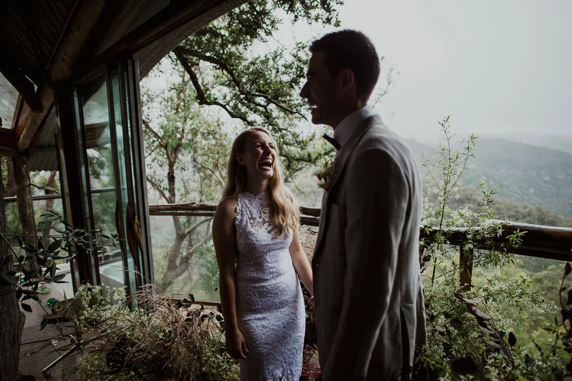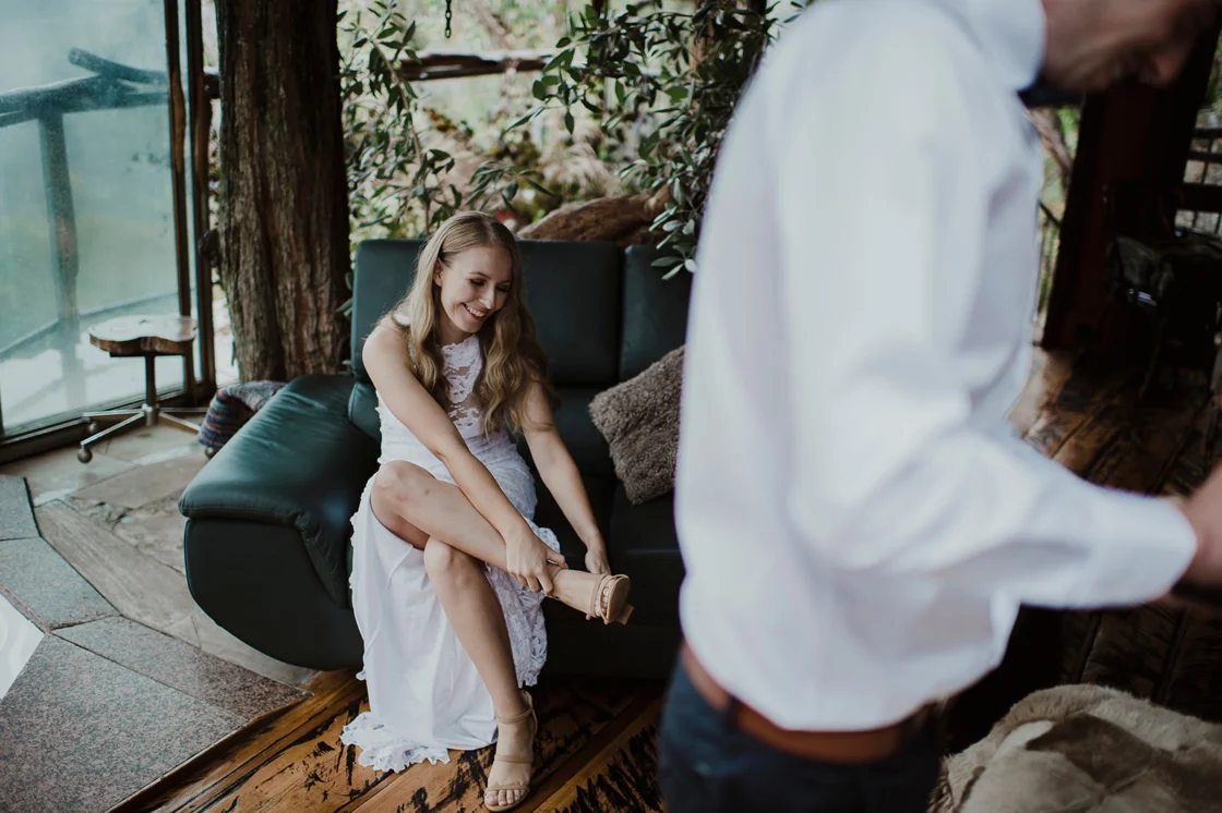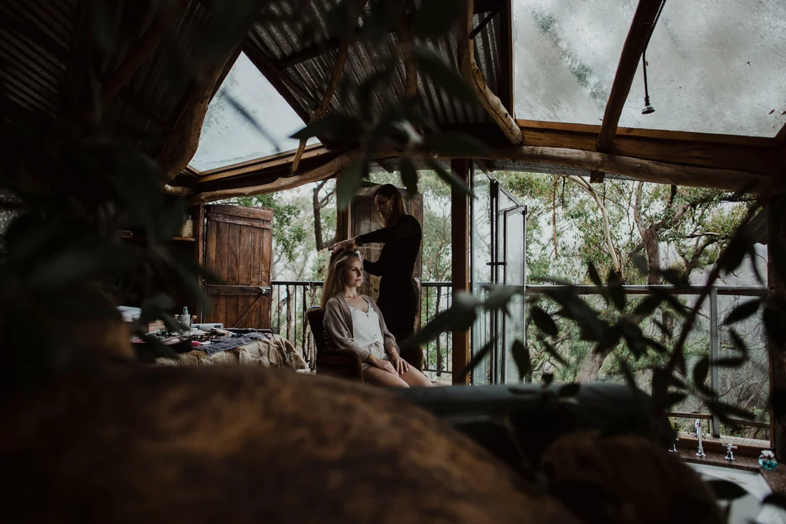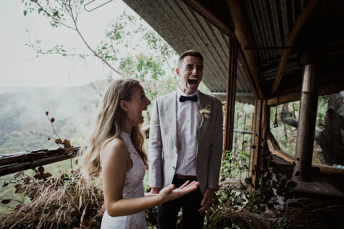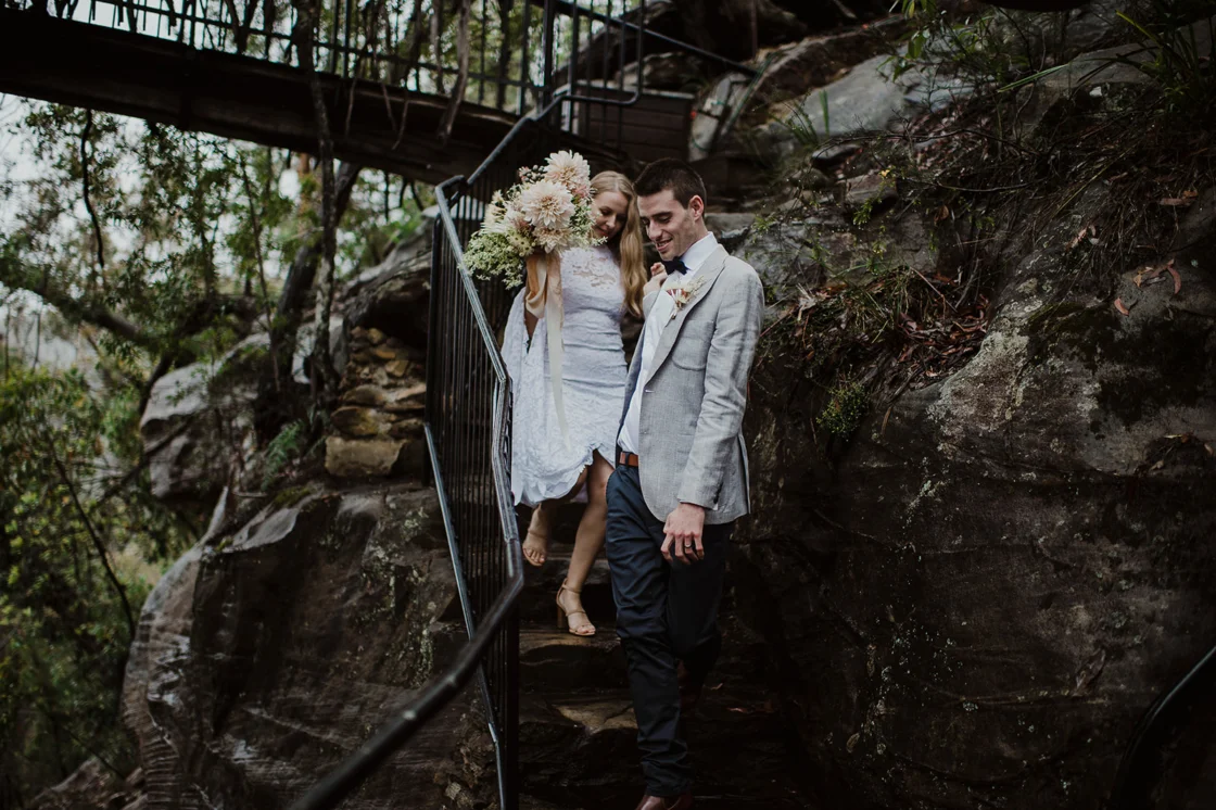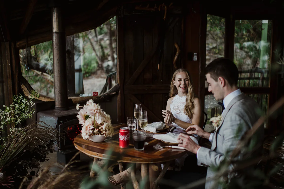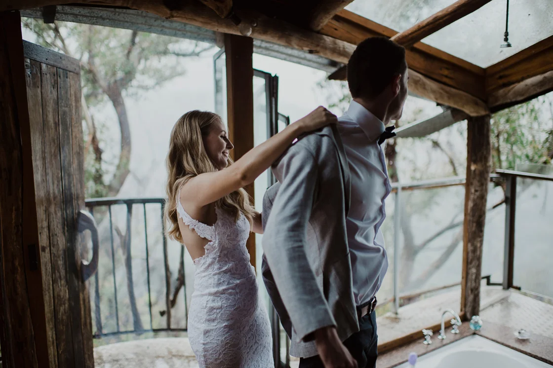 THE VENUE “We love travelling and our holidays always end up as something adventurous, such as hiking, camping, snowboarding or mountain biking. We love exploring different locations and have been going on amazing adventures since we met. We love hiking and the different feel of the mountains compared to the coast, so we chose the Blue Mountains to elope. When we came across the treehouse there were no questions, we just looked at each other and said “that’s the place”. We still can’t believe we got married in a treehouse! We had actually planned to get married at a lookout 100m from the treehouse, but on the day it was pouring rain and so our backup was to get married in the treehouse itself. We are actually so glad it rained, the treehouse was spectacular.”