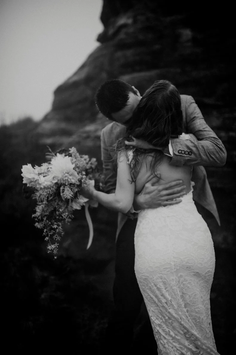 THE DRESS “I have always absolutely loved Grace Loves Lace gowns. Ever since we got engaged I had my eye on the Alexandria gown, I loved the high neck and the look of the stretch lace, it always looked so comfortable and flattering. I never tried it on and when we finally decided to go all out and book the elopement I knew that was the dress. I actually had a friend who wore the Alexandria gown for her wedding four years prior – on a whim I messaged her to see if she still had it, and she did… it was a perfect fit! So basically I tried one dress on and it was meant to be!”