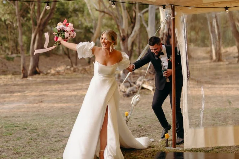 “Bright, unique, colourful and happy” was the inspo for Alana and Jack’s lovefest in their hometown of Deniliquin. And we’d say they nailed the brief. Together for over 11 years, these highschool sweethearts had Weddings By Sam along for the ride to take some phenom pics of their day of days in country NSW. Scroll down to see for yourself…