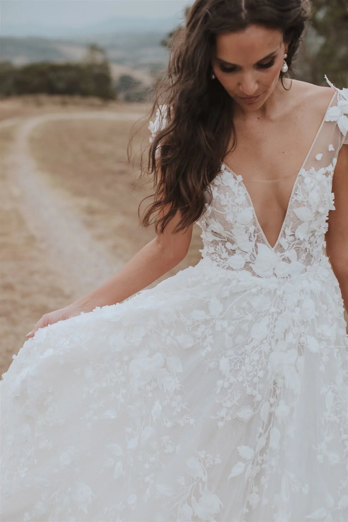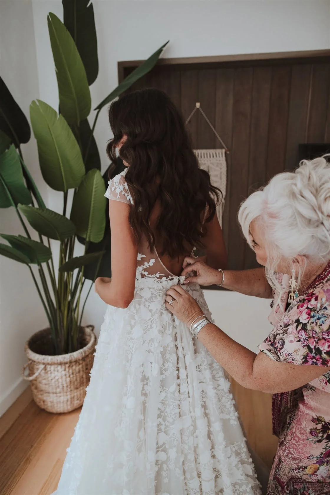 THE DRESS “I came across my dress on Instagram not long after we got engaged, but couldn’t find a retailer in Australia. Two months before the wedding, Berta was having a trunk show [in Aus], so I flew to Melbourne and went straight to the bridal store for a fitting. I knew that I had found my dream dress, but I couldn’t order the dress in time, so my mum called every retailer in the USA until she found a store that was willing to sell us their floor sample and flew it to Perth two weeks later. 40 dollars later [alterations] it fit me perfectly.”