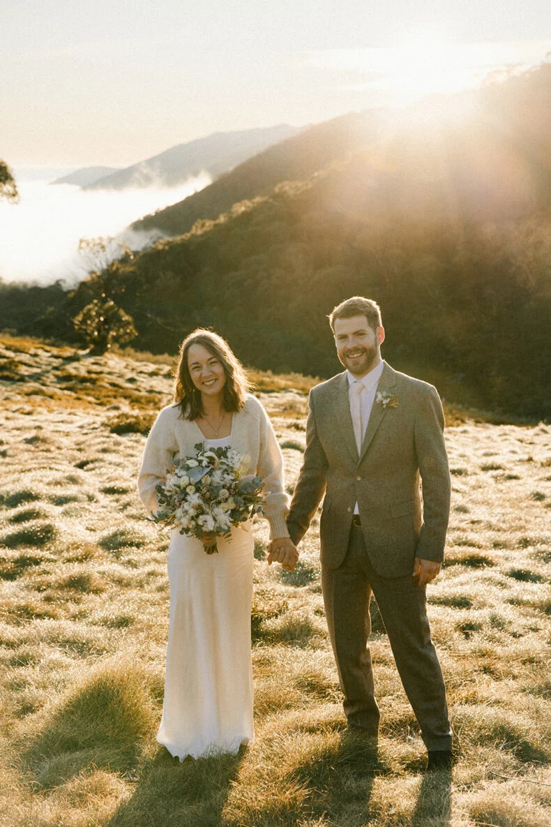 FAVE DETAILS “Pat’s sister Cate (Sweet Asylum) arranged the bouquet and buttonhole. We were hoping for native flowers that looked like they belonged in the Kosciuszko National Park, and with no reference photos to go off, she absolutely nailed it! The flowers were perfect, and we couldn’t be happier. Cate is such a talented florist, and it meant so much personally to have Cate’s style of floristry as a focus point.”