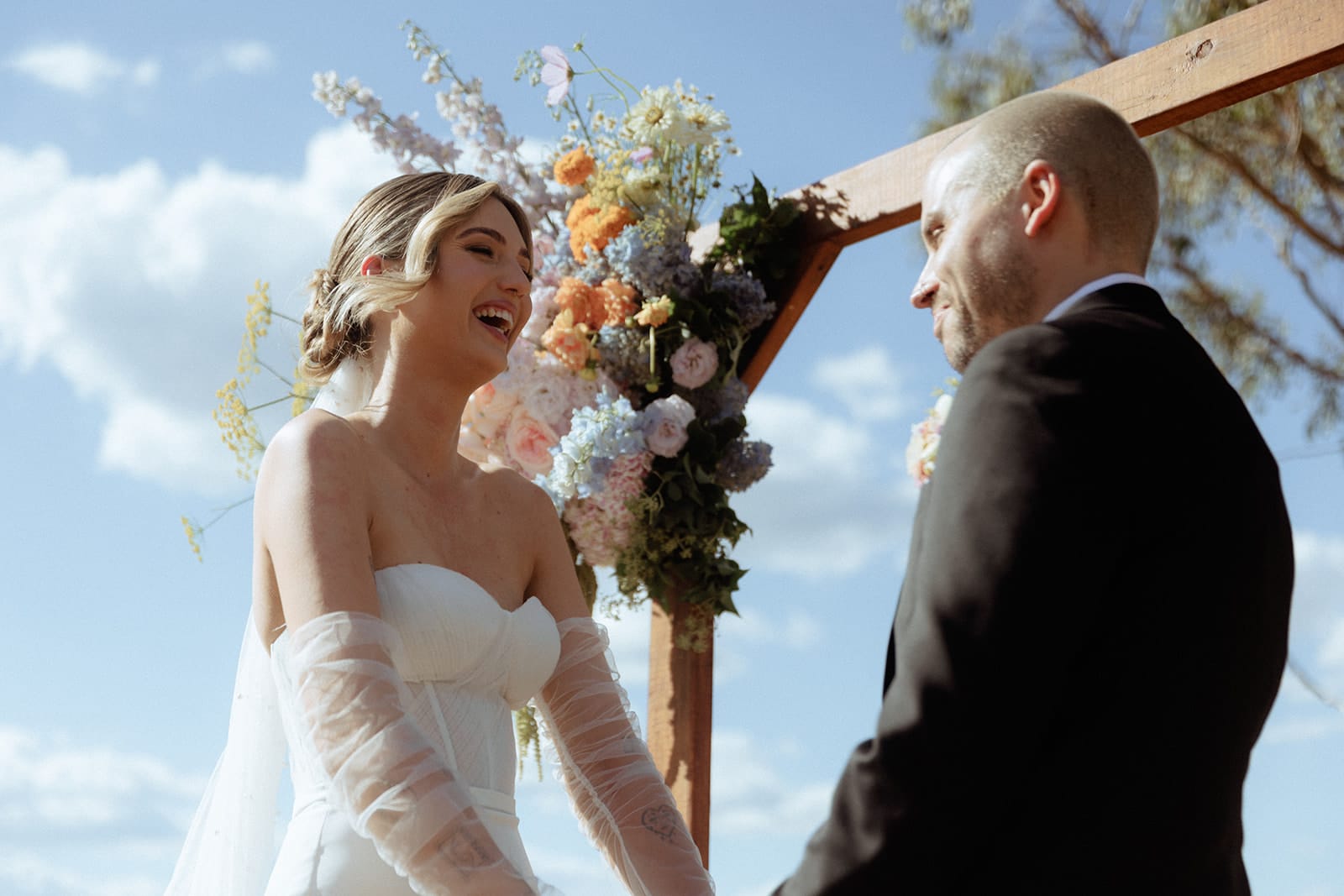 Embodying romantic-meets-rock-and-roll energy, the bride boogied in Bared Footwear while Gibson Clothing formed the foundations of the groom’s punk-infused ‘fit. The audio guestbook by Off The Hook was an absolute winner, as was the couple’s choice to put Caity & Duncan in charge of photography and videography. Cancel your plans and enjoy an all-access pass to Ally and Sam’s love-fest below.