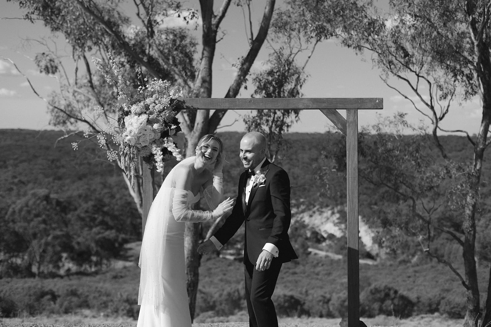 You heard the newlyweds: if you’re on the hunt for a dynamic photography and videography duo, you’re going to want to reach out to Caity and Duncan on the Hello May Directory here. Or, if you’re looking for more unique ways to bottle up the mems, check out Off The Hook’s audio guestbooks. Wanna steal these lovebird’s look? Gibson Clothing has you sorted for suits, and Bared Footwear is always a fave.