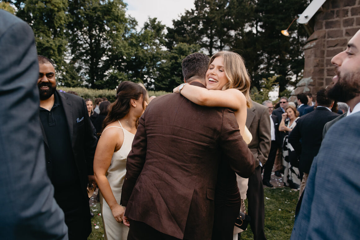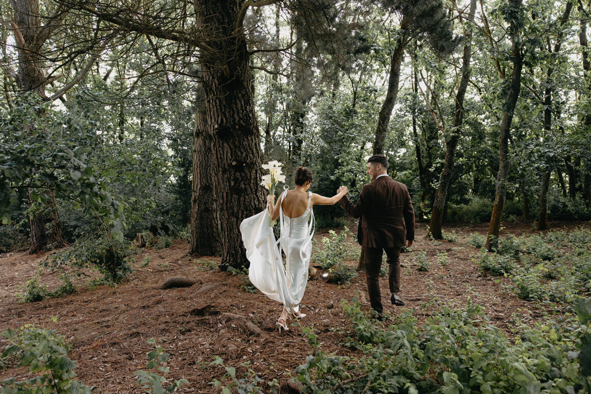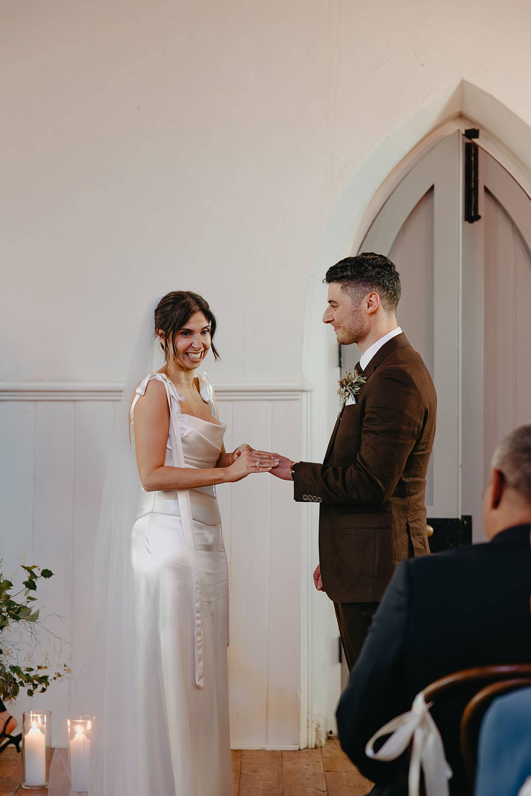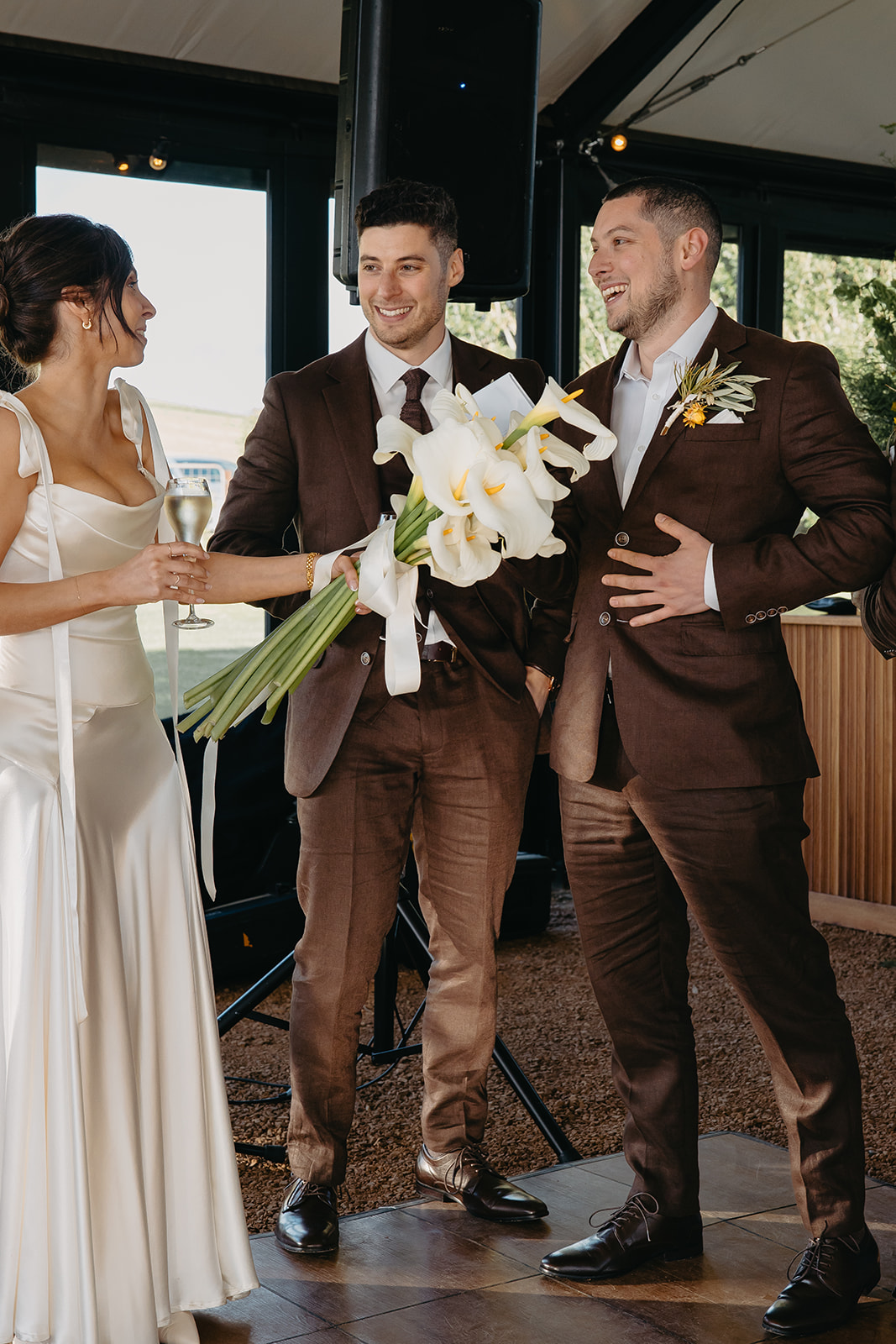 “One of the most special moments of the ceremony was how we created my bouquet. With the help of our florist Elissa (Larkspur Flowers), we placed a single stem calla lily on ten guests’ chairs. As I walked down the aisle, I collected one from each of them, building the bouquet as I went. When I reached the altar, Marco’s mum handed me the final stem, my mum gave Marco the ribbon, and he tied it all together. It felt like a beautiful symbol of everyone who had played a part in our journey.”