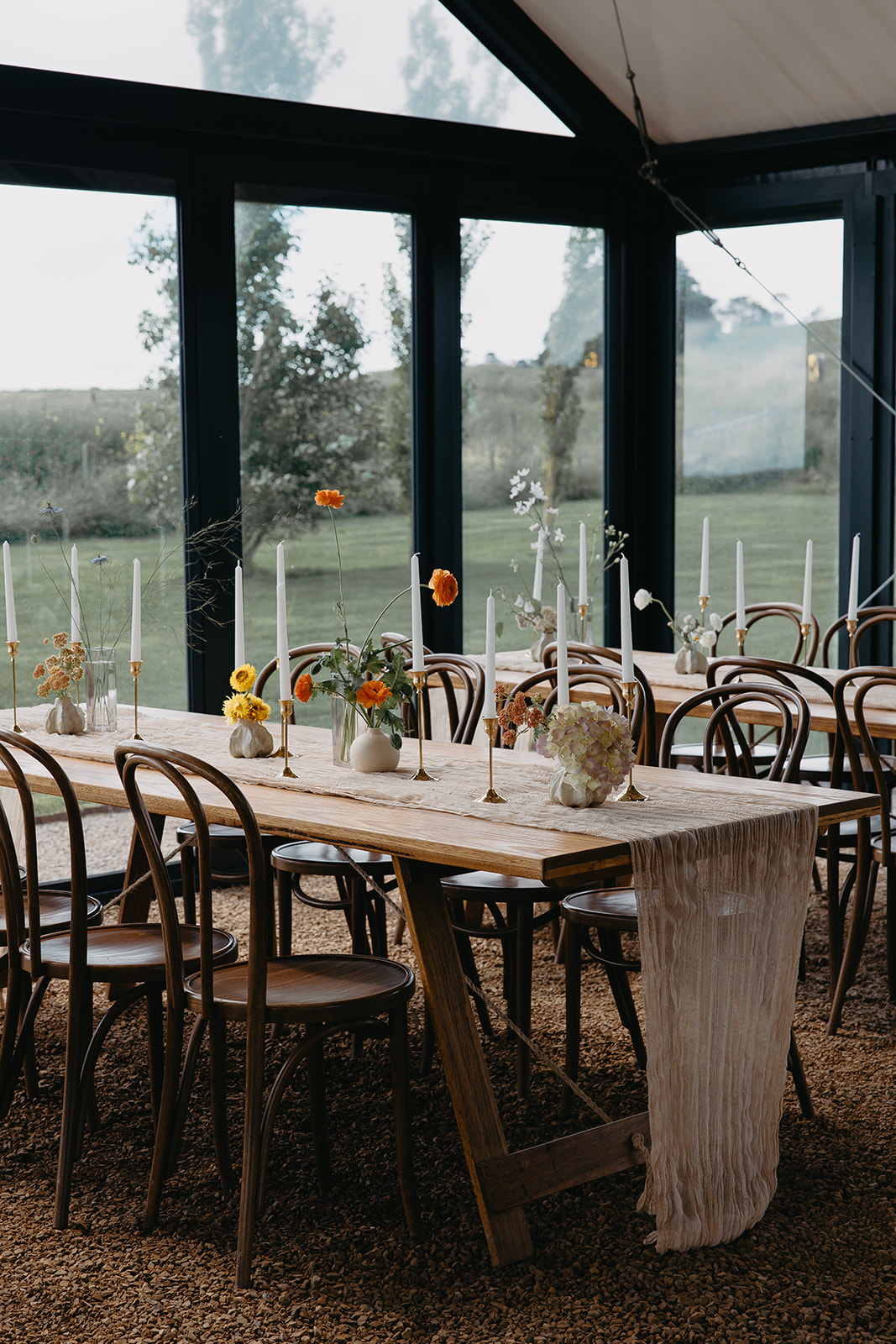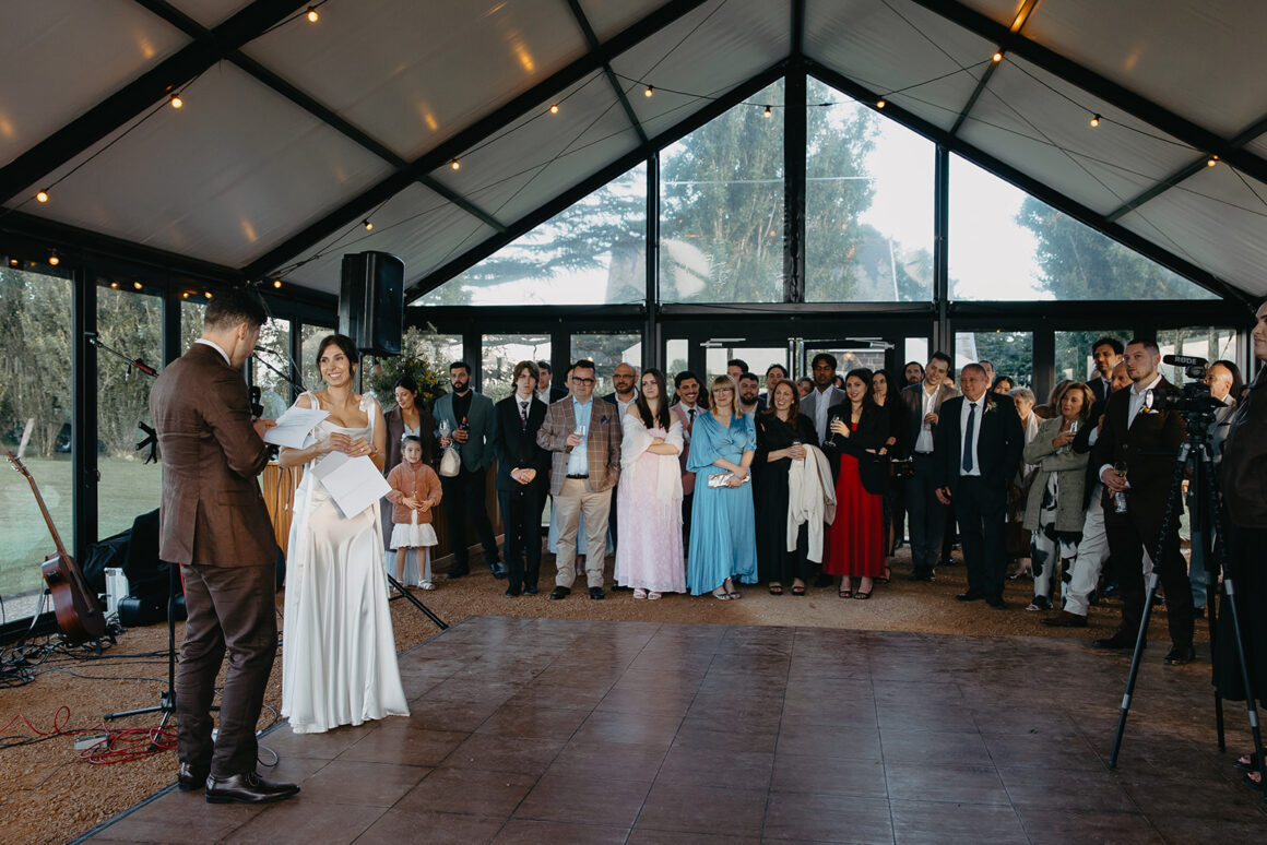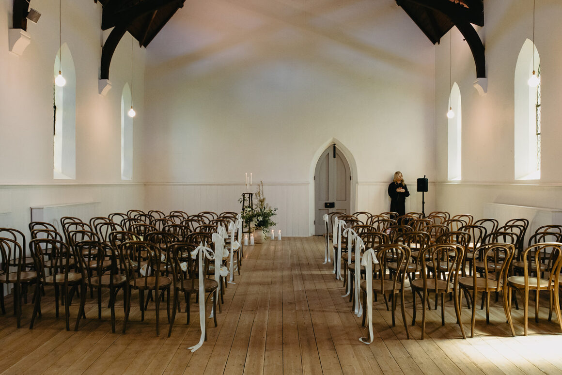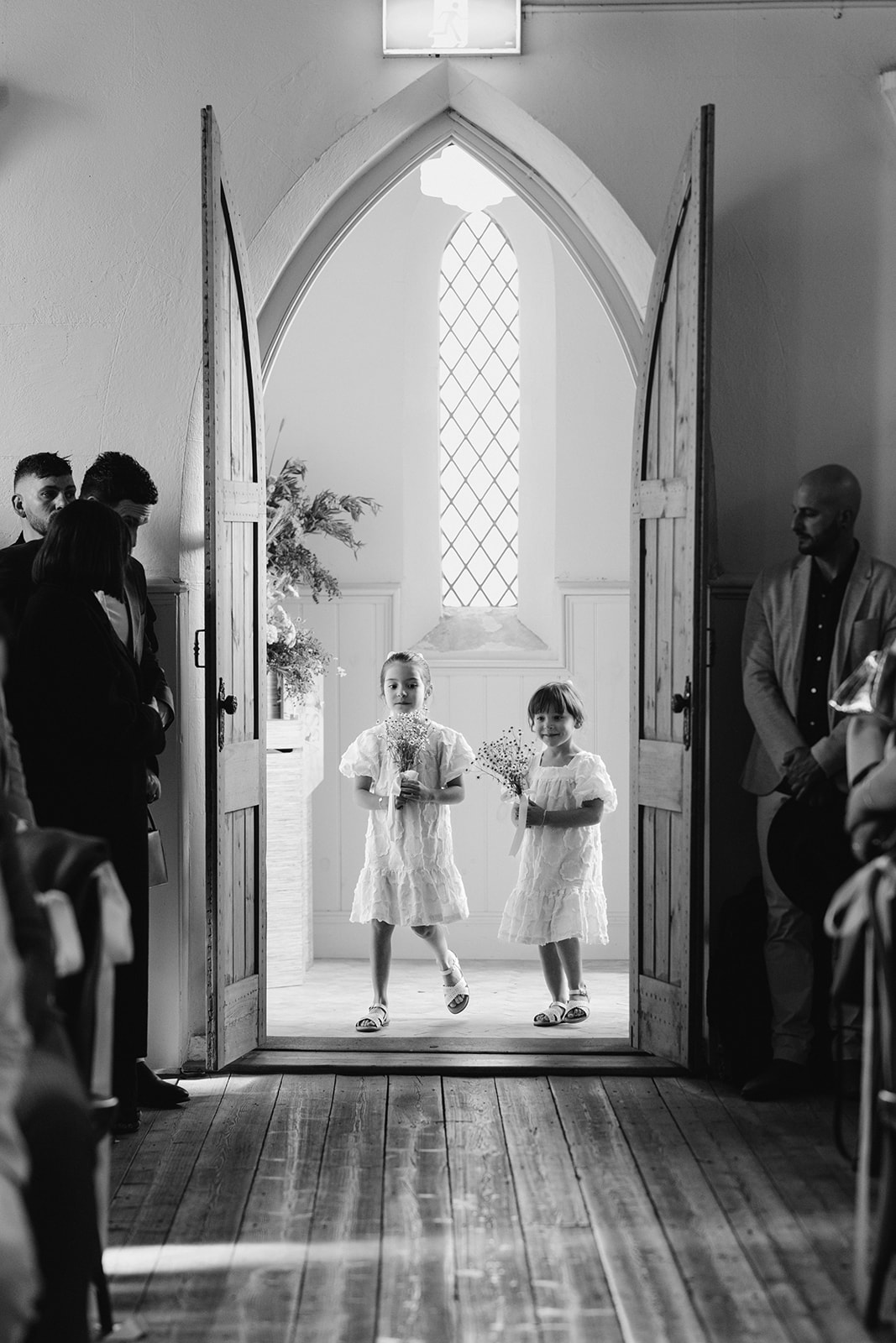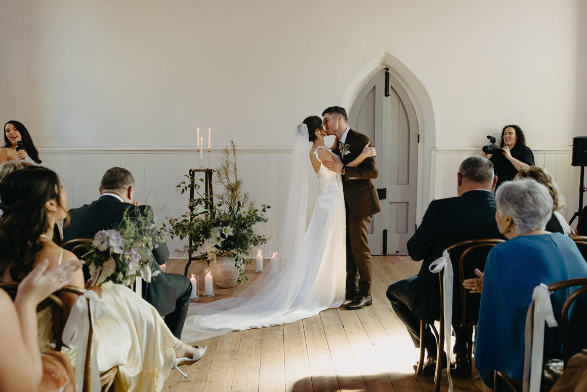 A forest ceremony and glass marquee reception were on the agenda, with the old bluestone chapel a charming wet weather option. As fate (and Mother Nature) would have it, this backup plan became the perfect setting for their ‘I do’s. As the happy couple shared, it was all meant to be. “Although the forest was our first choice, it truly felt like the ceremony was always meant to be in the bluestone chapel,” says the bride. “Afterward, Marco and I looked at each other and knew everything had fallen into place exactly as it should.”