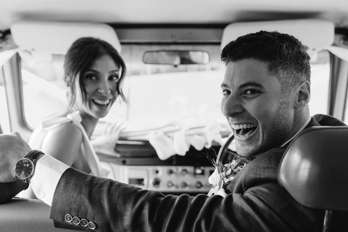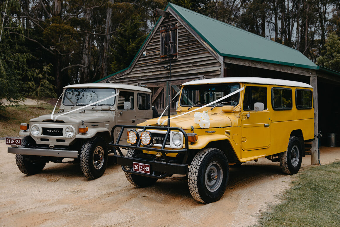 “For our wedding cars, we used our own Toyota Land Cruiser – our mustard Troopie. The Marino boys have always loved their Land Cruisers, and this one has been part of so many milestones in our lives, including the proposal. It carries twelve people, so Marco drove, I sat in the front, and our bridal party rode in the back on the way to the venue.”