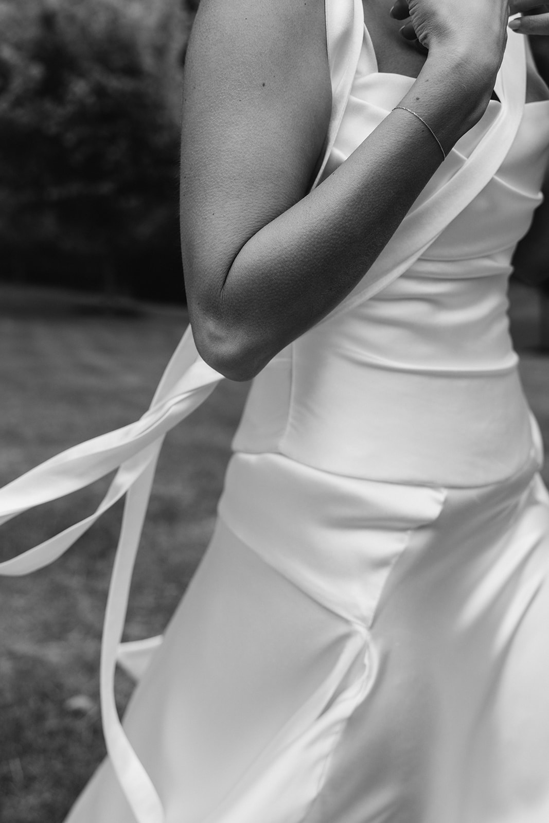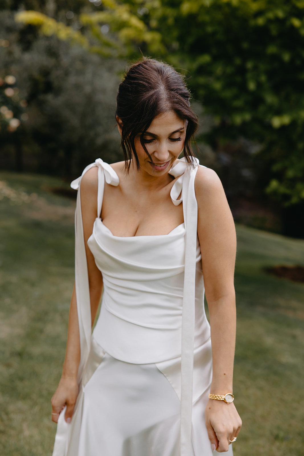 “Marco’s aunty, who is a talented wedding dress maker—and who, surprisingly, had also taught me at RMIT—made my dress. I designed it and asked her to bring it to life, and she did an absolutely beautiful job, with every detail falling perfectly into place. I chose to have two skirts: one with a train for the ceremony, and a shorter, 1920s-inspired godet skirt that didn’t touch the floor. It was truly everything I had dreamed of.”