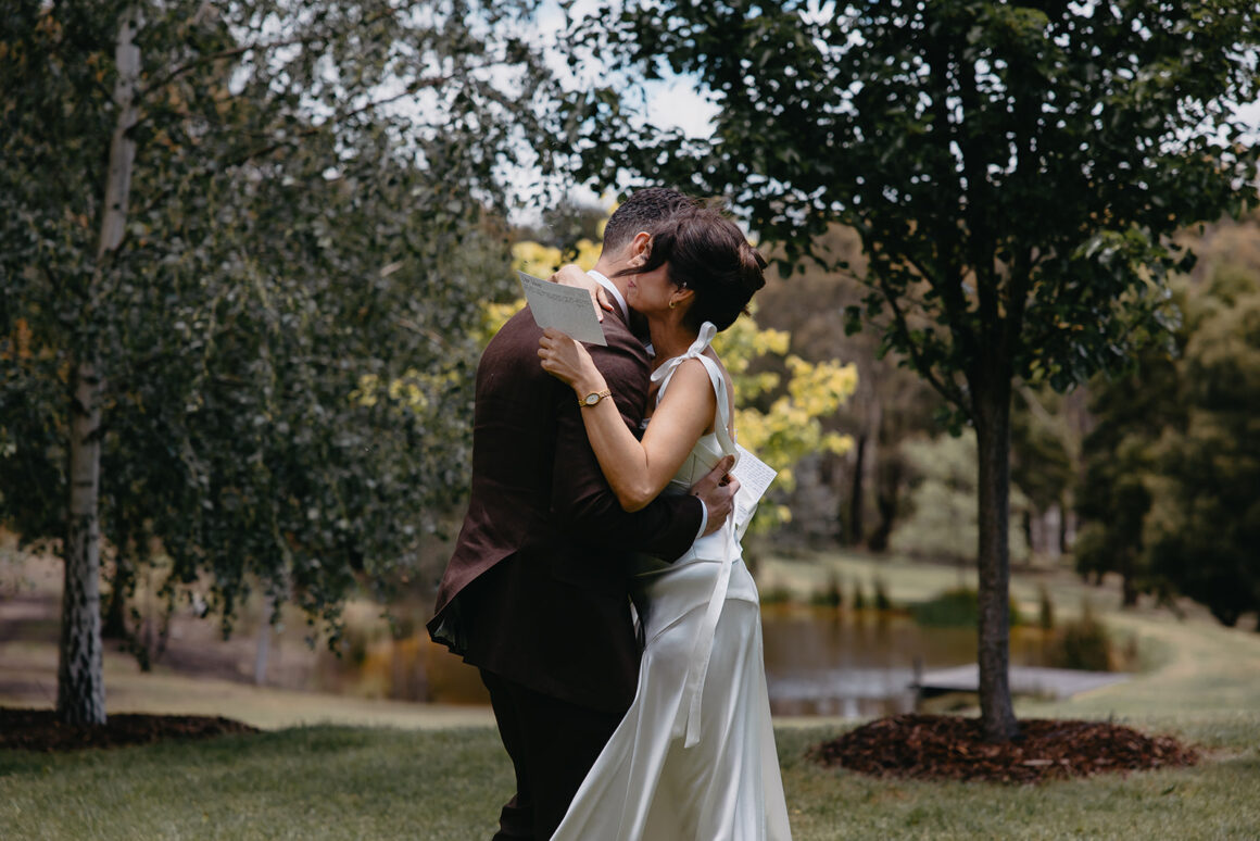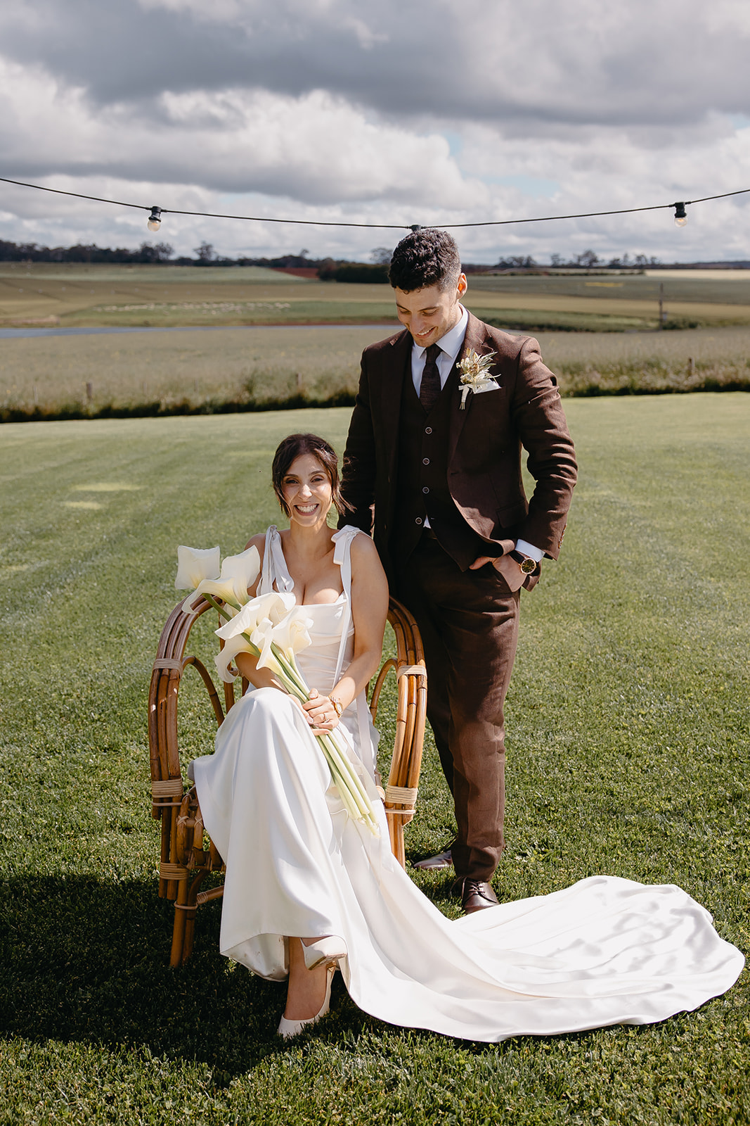 When Marco (a project manager) and Alyssa (an assistant fashion designer) began looking for their dream venue, they knew they wanted something in the countryside, envisioning rolling hills and quiet serenity. “Scrub Hill immediately felt like the perfect fit,” the couple of eight years told us. “It’s in a small country town not too far from Daylesford, and we loved the idea of it being a beautiful little getaway for our family and friends.”