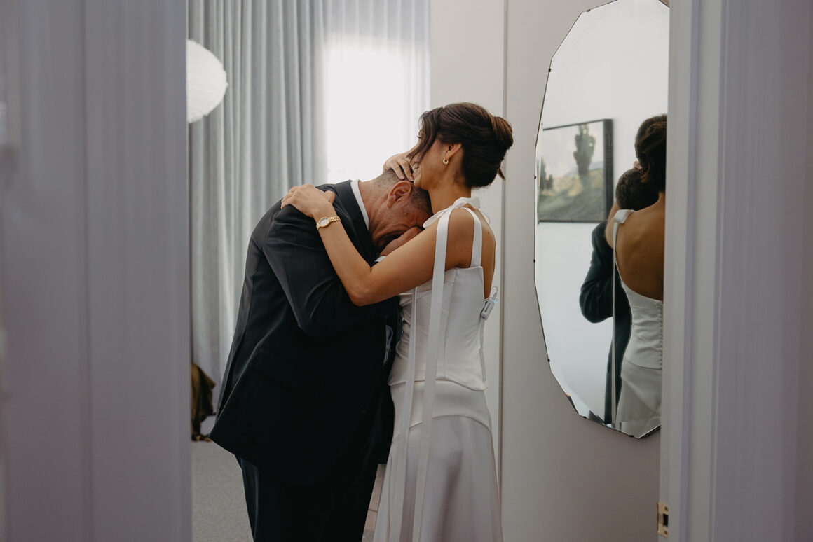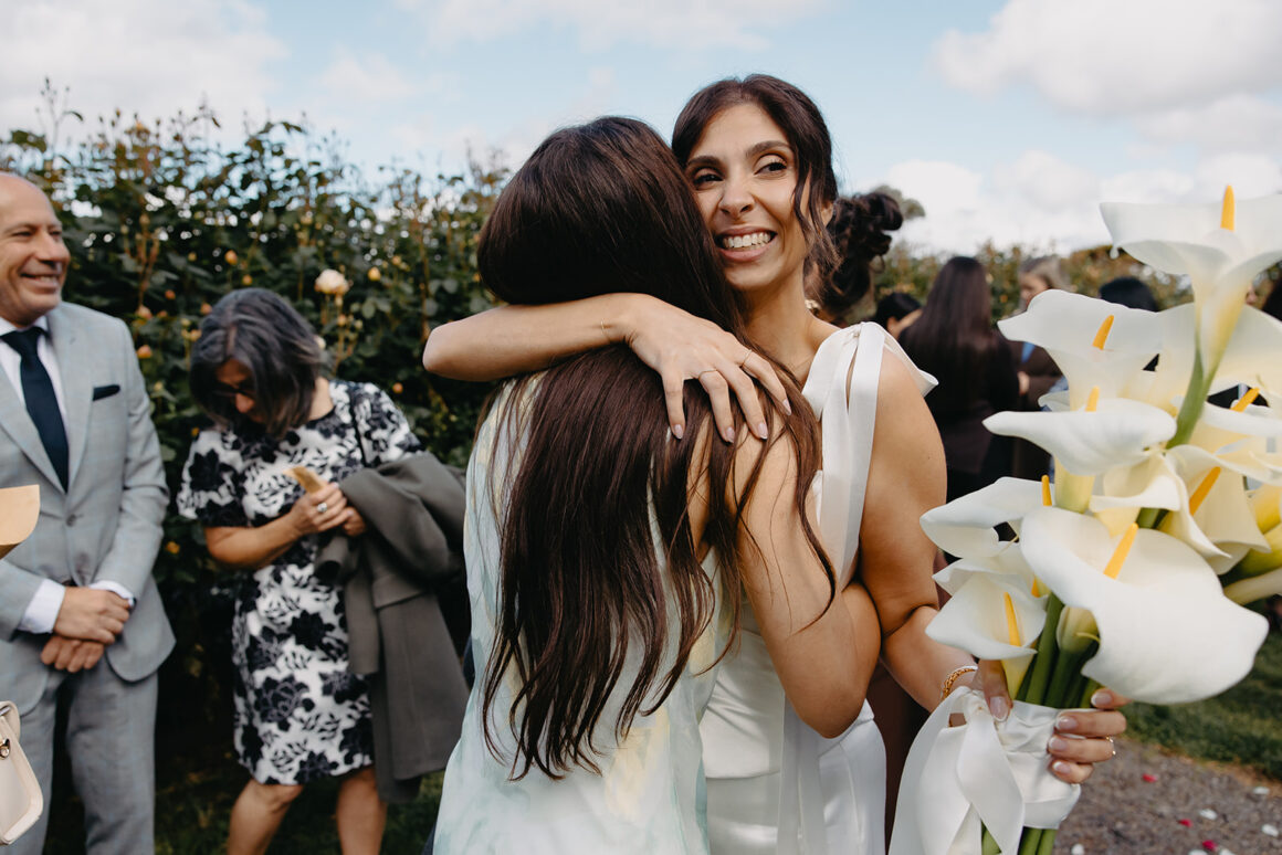 “The night before the wedding, we stayed together. It was so special waking up side by side, just like any other morning, but with the excitement of knowing we were about to get married. We shared private vows, just the two of us, and then invited our immediate family and bridal party over for lunch and a few bubbles before the ceremony. It gave us extra time with the people closest to us.”