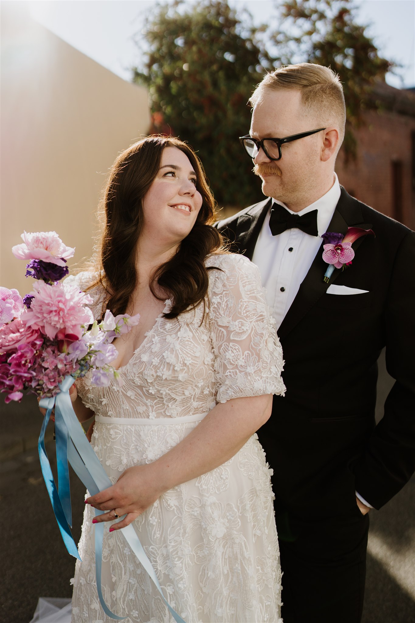 “As a couple we love to go to festivals and gigs with our friends, so wanted to recreate that feeling on the night. Most of our guests travelled (we both grew up in Perth) so we wanted to treat our guests to a very ‘Melbourne’ wedding. A love letter to Melbourne, you might say. We wanted it to be more of a party and Josh from Married to the Groove absolutely blew our minds – bringing the vibes from the cocktail hour all the way through to dirty dancefloor bangers. We added on his amazing lighting set-up and it really did feel like a nightclub!”