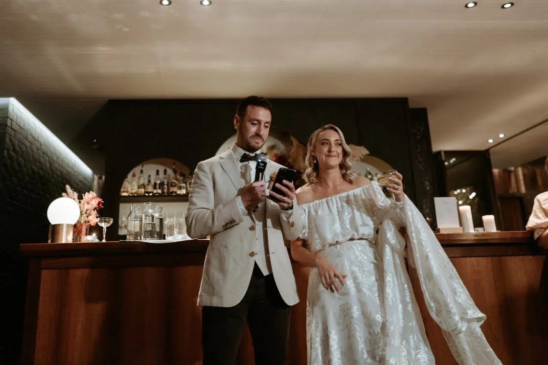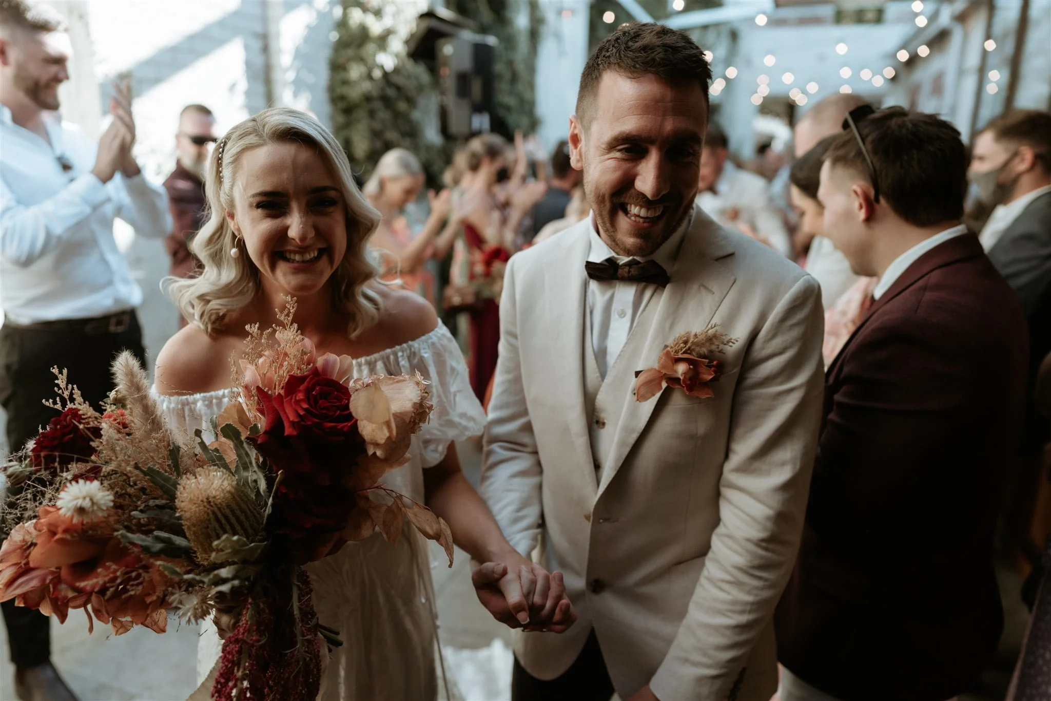 STANDOUT VENDORS “Our photographer and videographers Eve and Jo from Ring and Veil. Eve and Jo were there for everything – getting ready, wedding, reception, getting ready again and down south party. Jamie and I both dislike having our photo taken but somehow, they made us feel comfortable enough to stay still for a few piccies. They captured everything fun about the day which was super important to us. Our friends and wedding guests still talk about how amazing and fun they were. They even did a tequila shot with us!”
