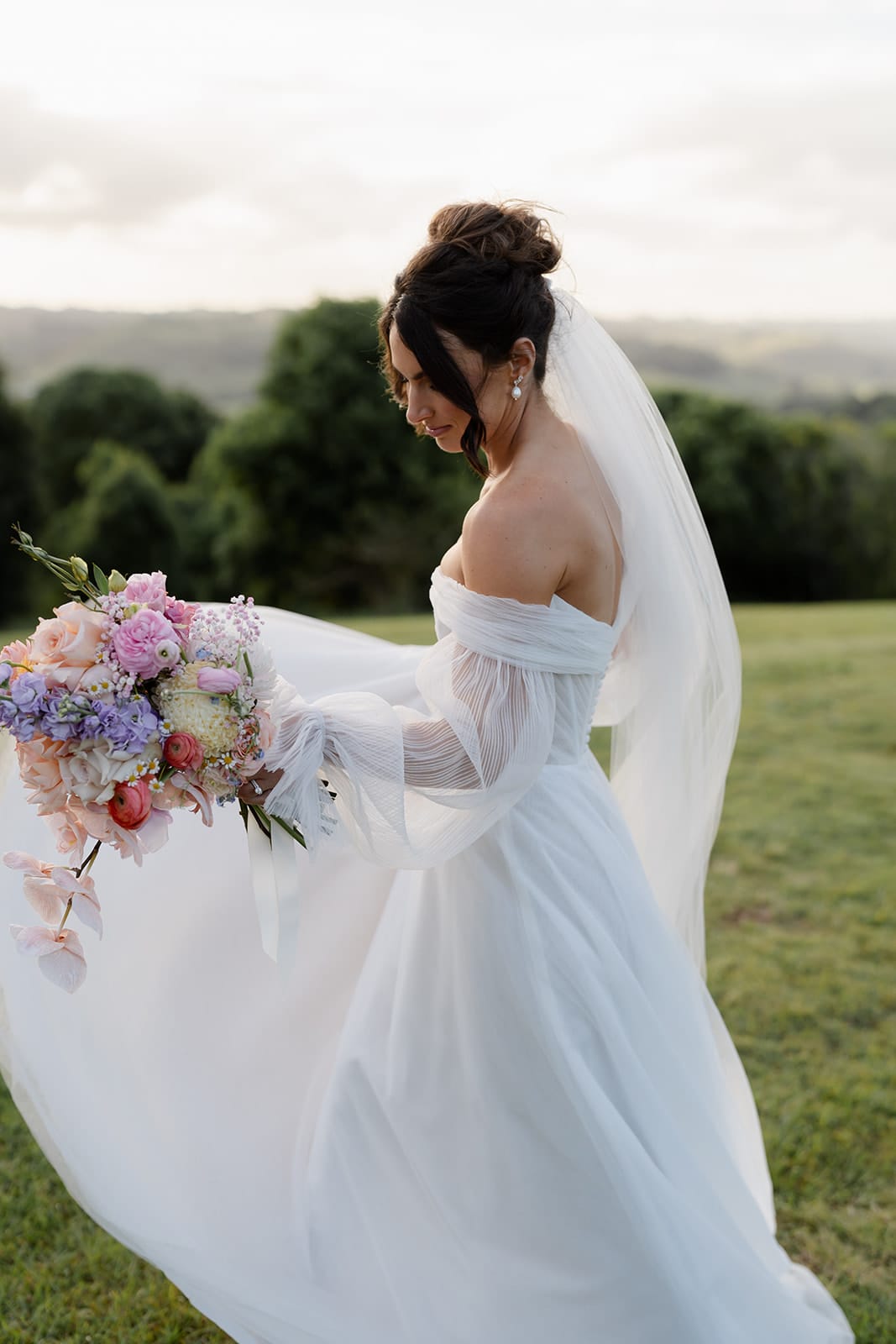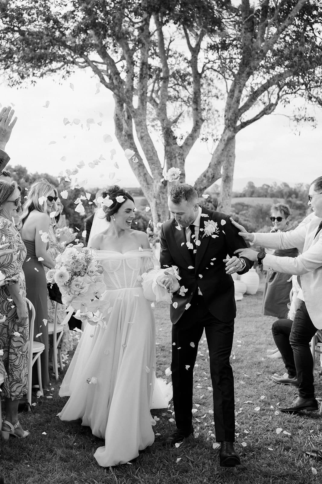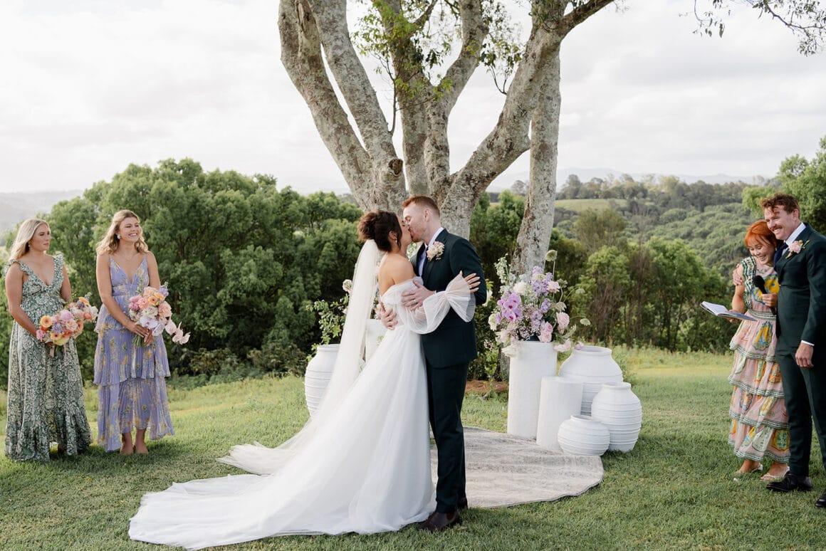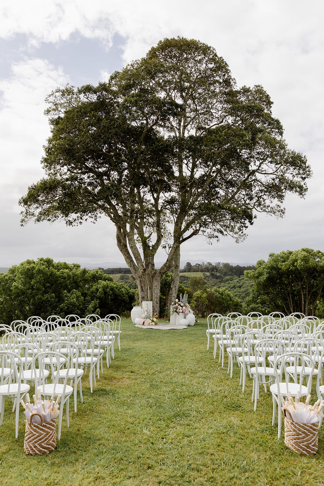 THE VENUE “We always loved the idea of a Byron Bay wedding. We road tripped up for the Byron Bay Weddings venue open day and visited as many venues as we could in he time we had. We actually had our hearts set on a different venue, but after staff at the open day recommended The Orchard Estate, we decided to squeeze in a visit. We’re so glad we did because we were both instantly obsessed as soon as we entered the grounds. The rows of macadamia trees are enchanting and the views from the lawn are breathtaking. We knew the venue was the perfect fit for us.”