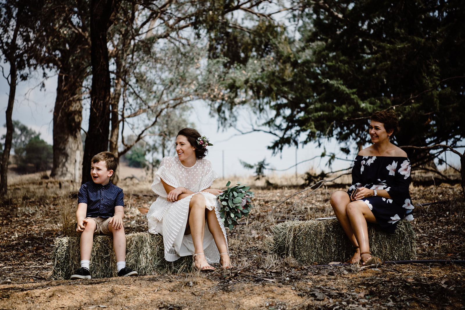 STANDOUT VENDORS “Most importantly Tamsin and Matt, we completely put them on the spot asking to have a wedding at their place and they were up for the challenge. From extra watering, planting, weeding, mowing to putting in new gate and fences and allowing us to build a bike track, they were so accommodating and we cannot thank them enough for their generosity. Rachel Emily, our photographer, was amazing in taking the documentary style photos completely incognito at our request. She was gentle and nurturing, and her contact leading up to the wedding and after the wedding was reassuring and made us feel really special. Selena from Flowers Naturally, a good friend, usually exclusively does funeral arrangements, however, couldn’t say no to our wedding. I gave her some very loose direction and ideas, nothing definitive and she was able to take that and create the most gorgeous arrangements, including Maeve’s flower necklace (which she wouldn’t wear haha). Farrah and Andrea of Pinchos of course! We had a pizza wedding and they took care of every single thing from getting the wood-fired pizza oven in, to our own special antipasto plate post-ceremony knowing that we’d be famished.”