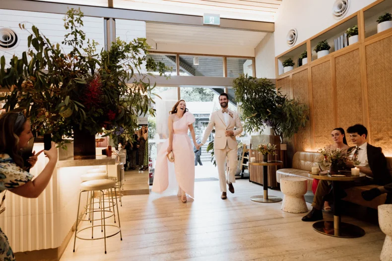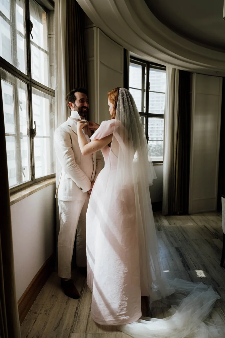 Annabel and Liam’s Sydney soiree was elegant, fun, non-traditional and filled to the brim with those loved-up moments we live for here at HM… and, um, have you seen the bride’s fairy floss-coloured Rachel Gilbert dress. SWOON! Set against the iconic city skyline, with the wonderful human that is Ona Janzen in charge of taking pics, and magic lighting courtesy of Festoon, this wedding hits all the right notes. Scroll down to see… but first, over to the happy couple.