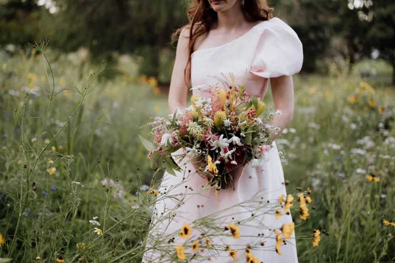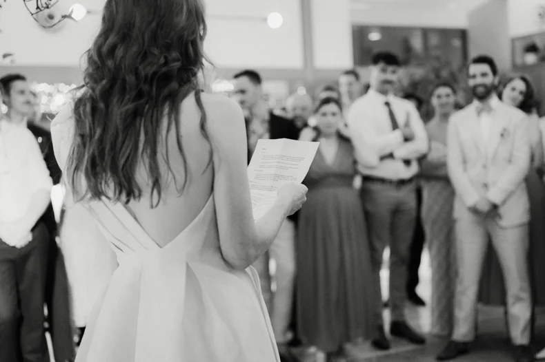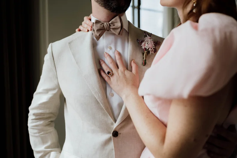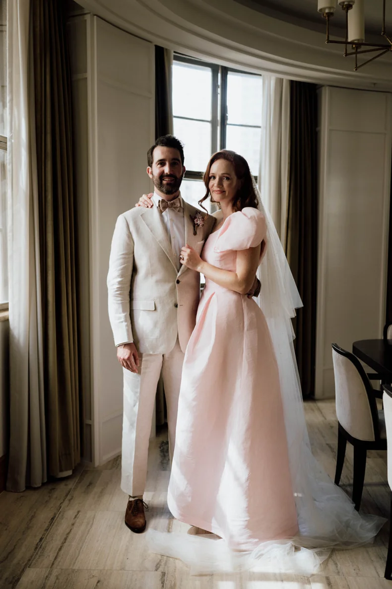 THE DRESS “I didn’t think I wanted to wear white (I couldn’t get over the symbolism) so I did go to a few bridal boutiques (which were lovely) but they didn’t have a lot of non-white options and I didn’t feel like anything I tried on was really me. I had an idea of the shape I wanted and I saw the Rachel Gilbert dress online and thought it was perfect. I went and tried it on in the shop once and bought it so it was a pretty easy process. I had some doubts at various points, thinking I should have gotten a bridal dress but once we got to the day I absolutely loved it and I am glad I picked something that felt really me.”