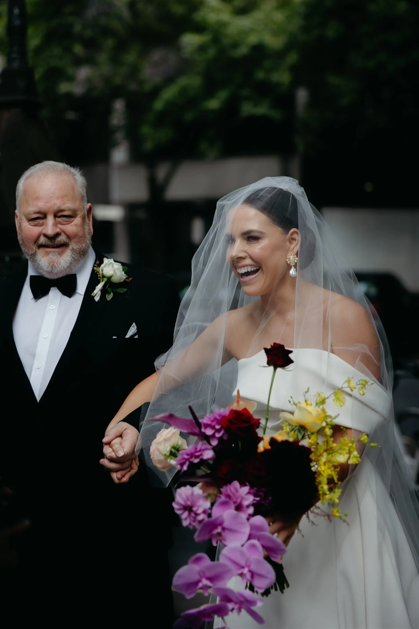 FAVE DEETS “Bek from Tremella Botanicals did such an incredible job with our florals – we wanted an explosion of vibrant colours. My bouquet was stunning and our table settings with a mix of florals and fruit… we loved it. We also loved the champagne tower and oyster cart by Pearl Oyster Cart, it was so fun and our guests were raving about it!”