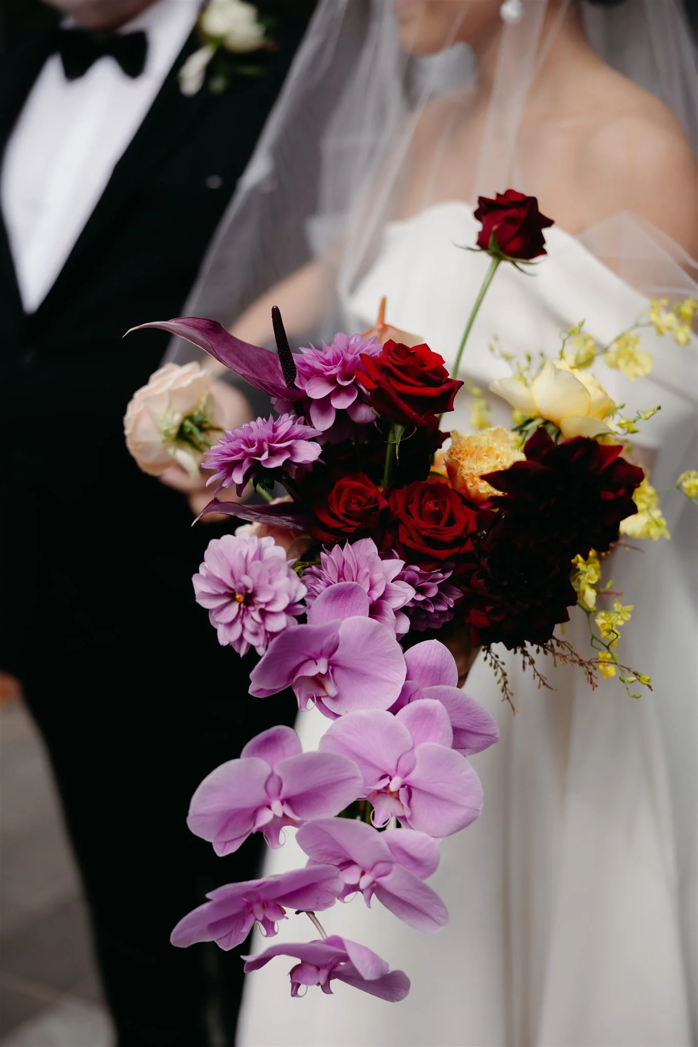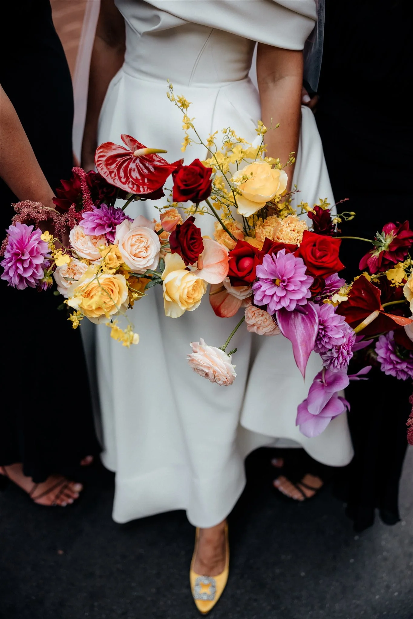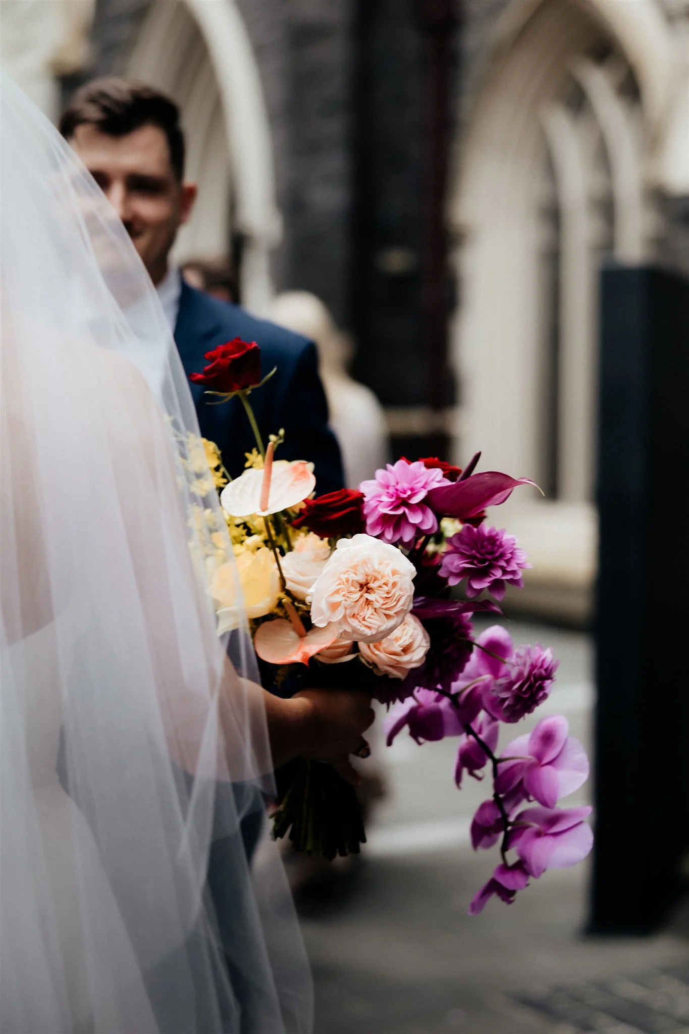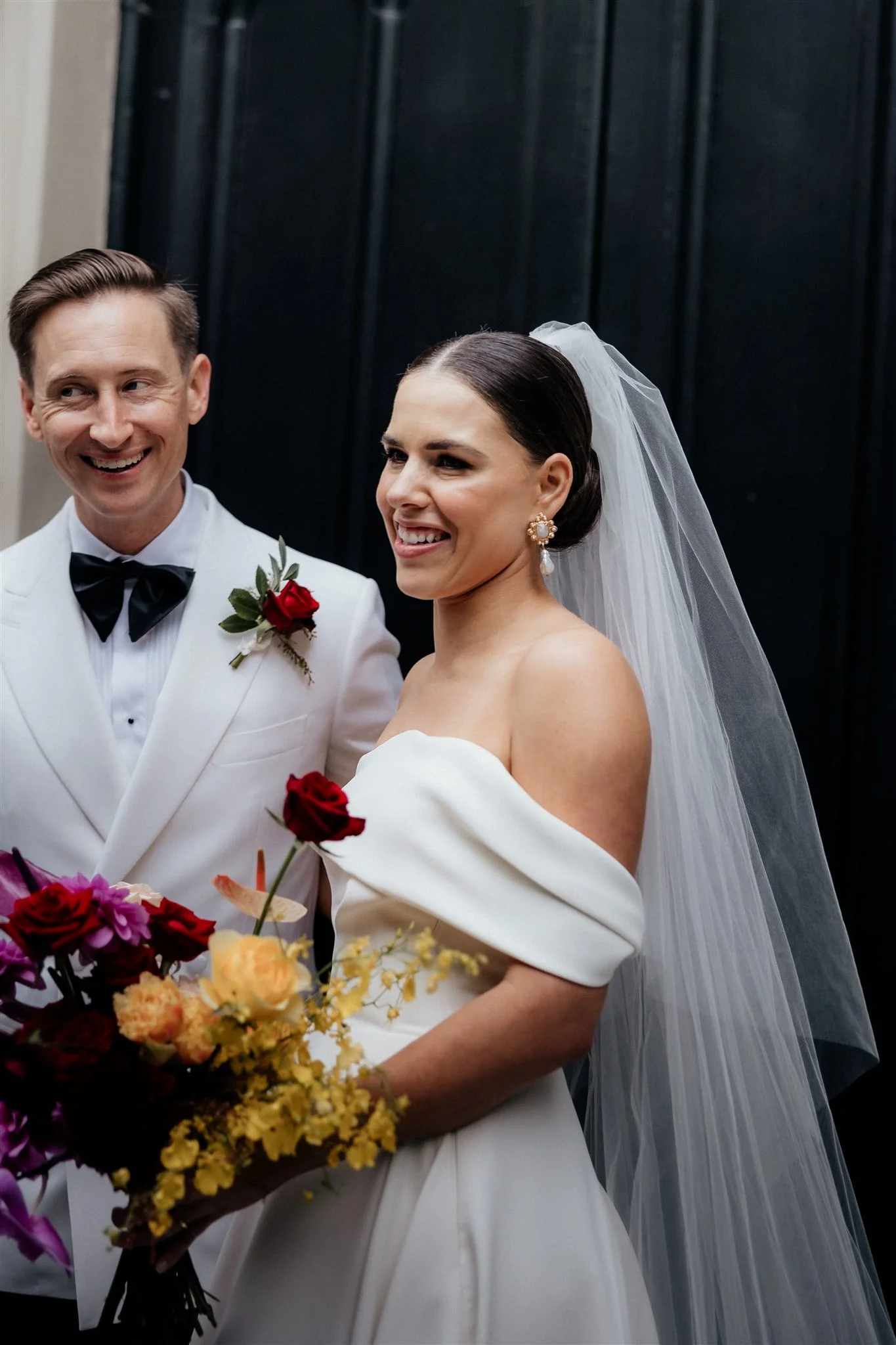 THE VIBE “We didn’t have a particular theme, just lots of bright pops of colour with our florals. We wanted to both be relaxed and enjoy it all, have a HUGE party with our friends and family and celebrate with lots of champagne!”