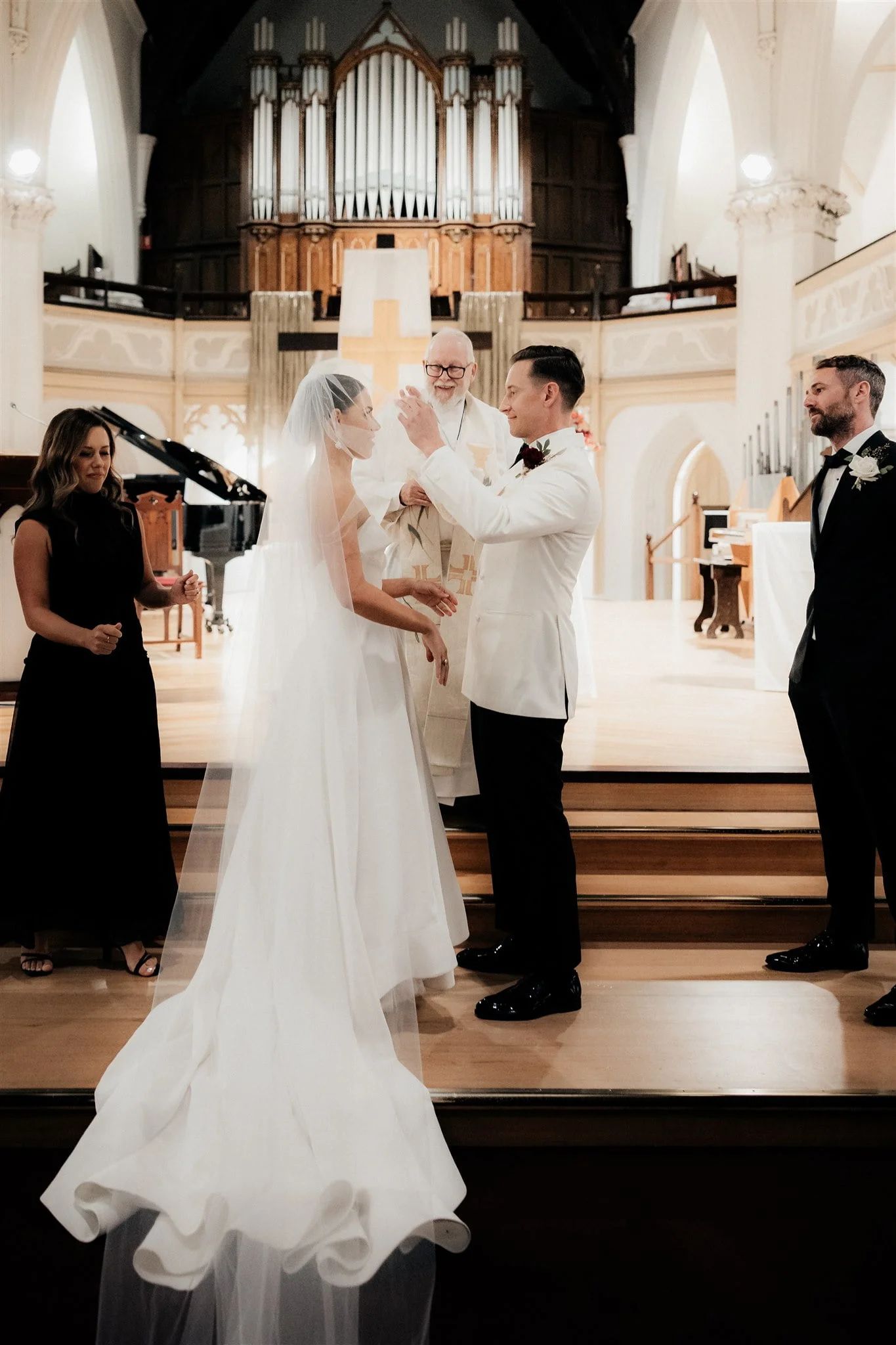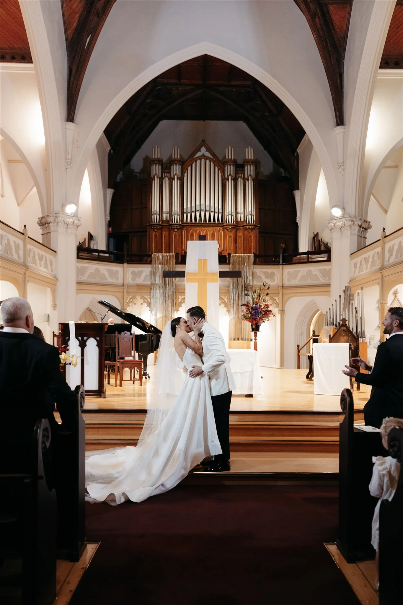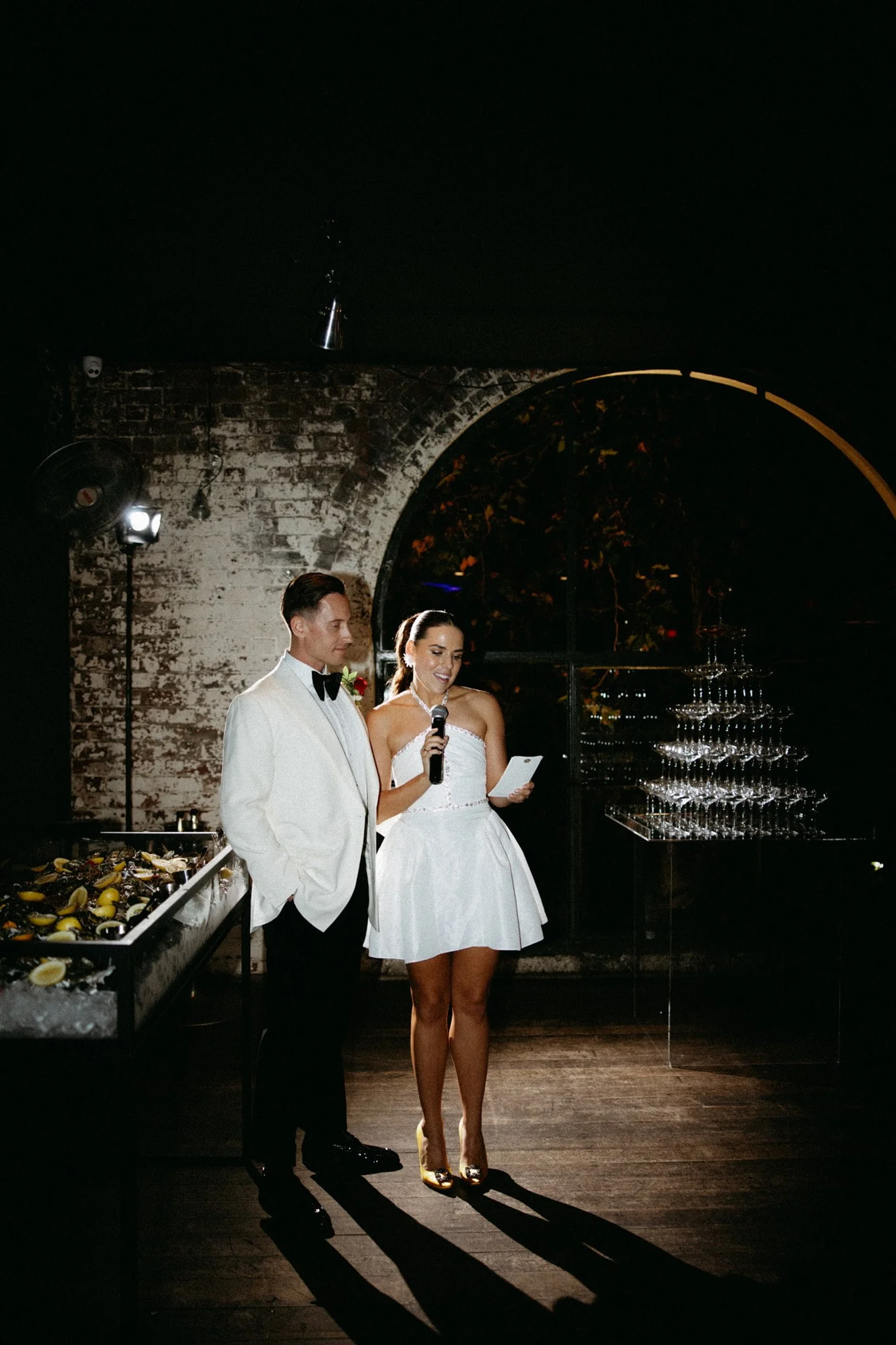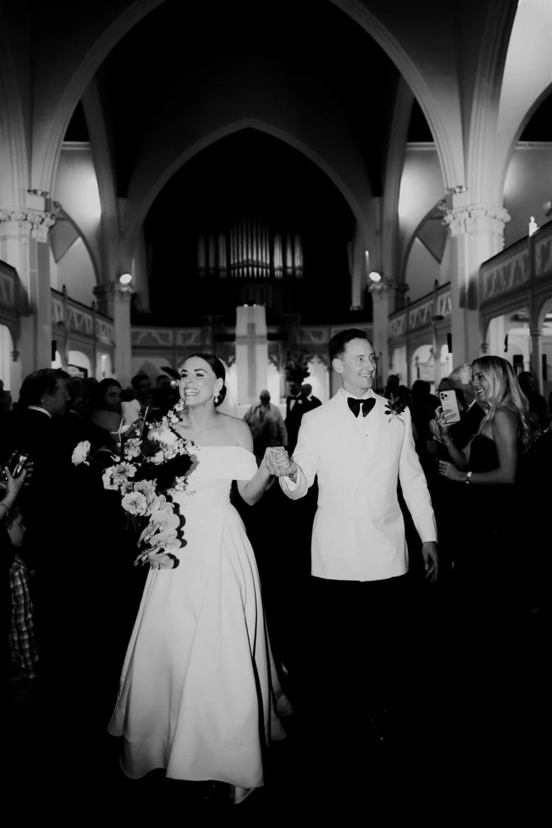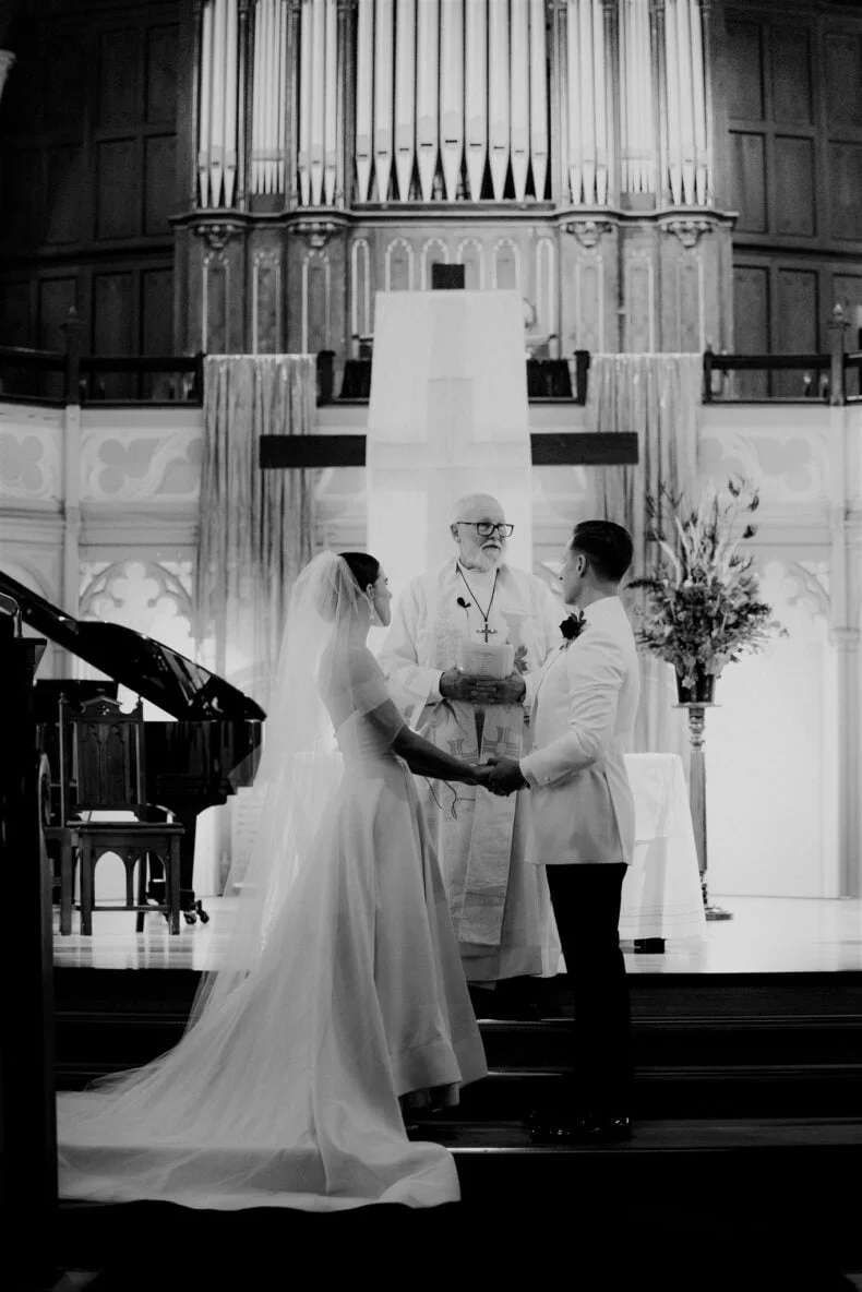 CONTRIBUTING VENDORS Photographer Maegan Brown Moments Florist Tremella Botanicals Ceremony venue Wesley Church Reception venue & catering Panama Dining Room Oyster Cart & Champagne tower Pearl Oyster Cart Cake Snow White Bakery Hire Items Table Art Entertainment Baker Boys Band THE BRIDE Bridal gown designer Toni Maticevski Reception Dress SELF-PORTRAIT Hair & Makeup Tonic Agency THE GROOM Suit Oscar Hunt