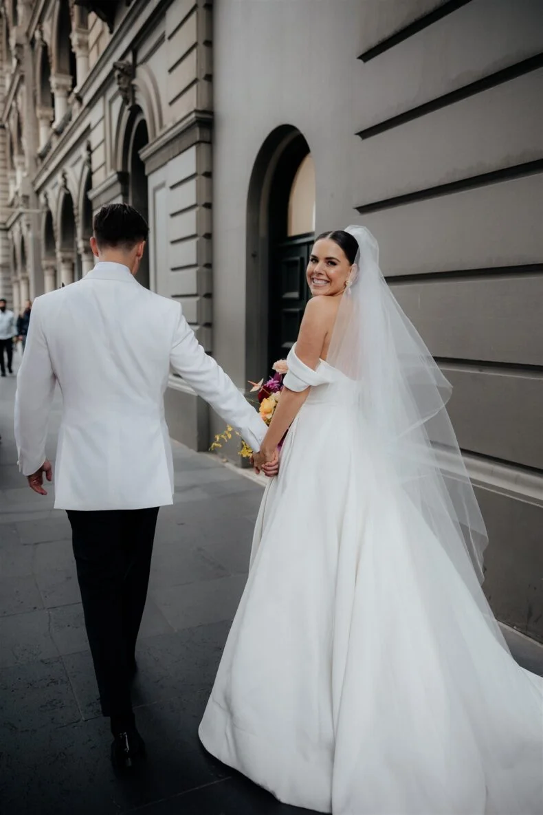 After a romantic proposal at Cronulla beach, where Annalie grew up, she and Chris planned a bright and vibrant wedding in their now hometown of Melbourne, and to bring it all together, they called on some of the best vendors goin’ round. Maegan Brown Moments was tasked with taking some incredible snaps (she nailed it, BTW), the groom was oh-so-suave in Oscar Hunt Tailors and Hello May fave Baker Boys Band got the dancefloor going with their high-vibe energy. That’s enough from us, start scrolling to see all the delish deets for yourself…