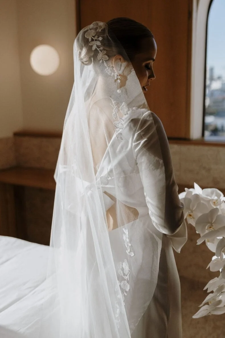 THE DRESS “My wedding dress was from Grace Loves Lace. I knew I wanted a simple and elegant gown with long sleeves, which had some unique elements to the design. I loved the off-the-shoulder vibe. It was just by chance that I was on the Gold Coast and had seen that Grace Loves Lace just released a new range of dresses, including Anu – a beautiful silk, long-sleeved gown with an open back. I went to the Burleigh Heads Boutique to try it on and bought it immediately. I was IN LOVE! I had such a lovely experience, Grace Loves Lace were so thoughtful and accommodating.”