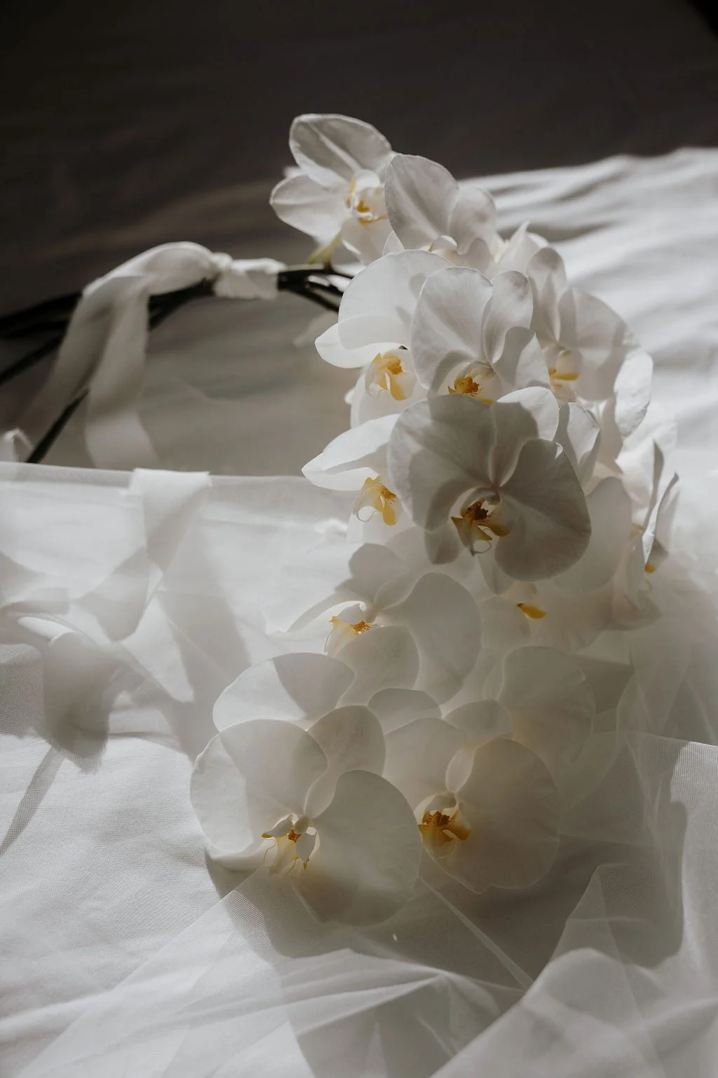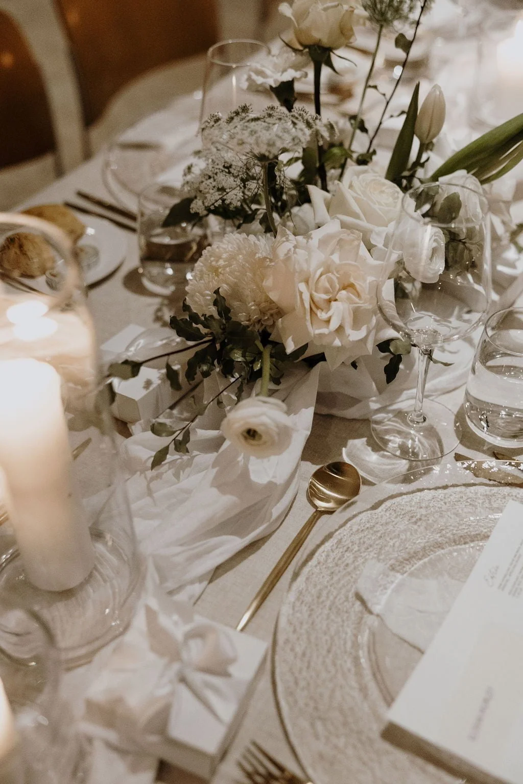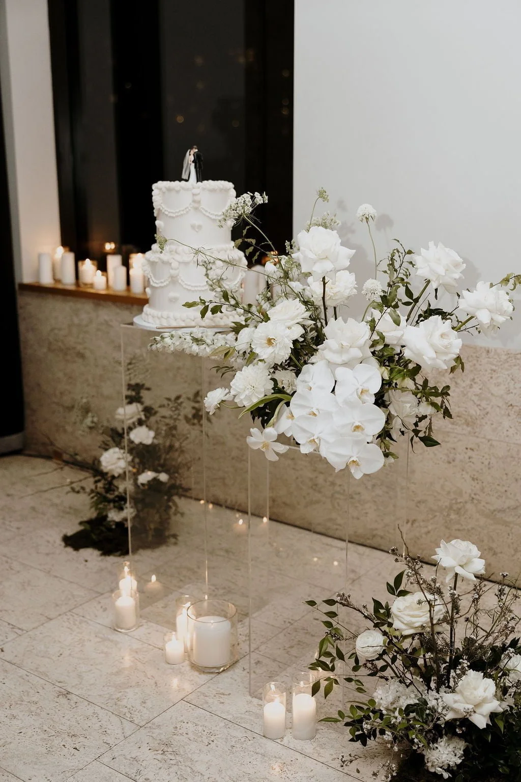 FAVE DEETS “The flowers were INSANELY BEAUTIFUL. I was set on having these dramatic, ethereal floral arrangements with greenery and luxe white flowers, which included a big half-arched arrangement for the ceremony – Kat from Garden Graffiti made the most beautiful ceremony flowers, and gave me the most luscious beautiful arrangements of orchids for my bridal bouquet. And my most fave detail – we chose to serve a midnight snack. This obviously had to be chocolate brownies and espresso martinis provided by The Calile Hotel. By the end of the night there was not a brownie or martini in sight – the best idea ever for a wedding snack!”