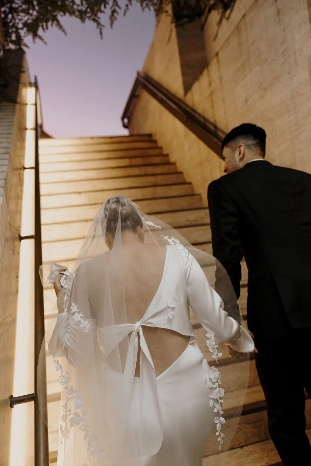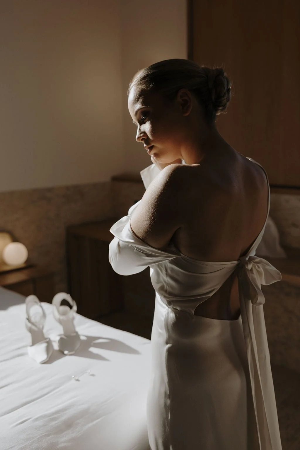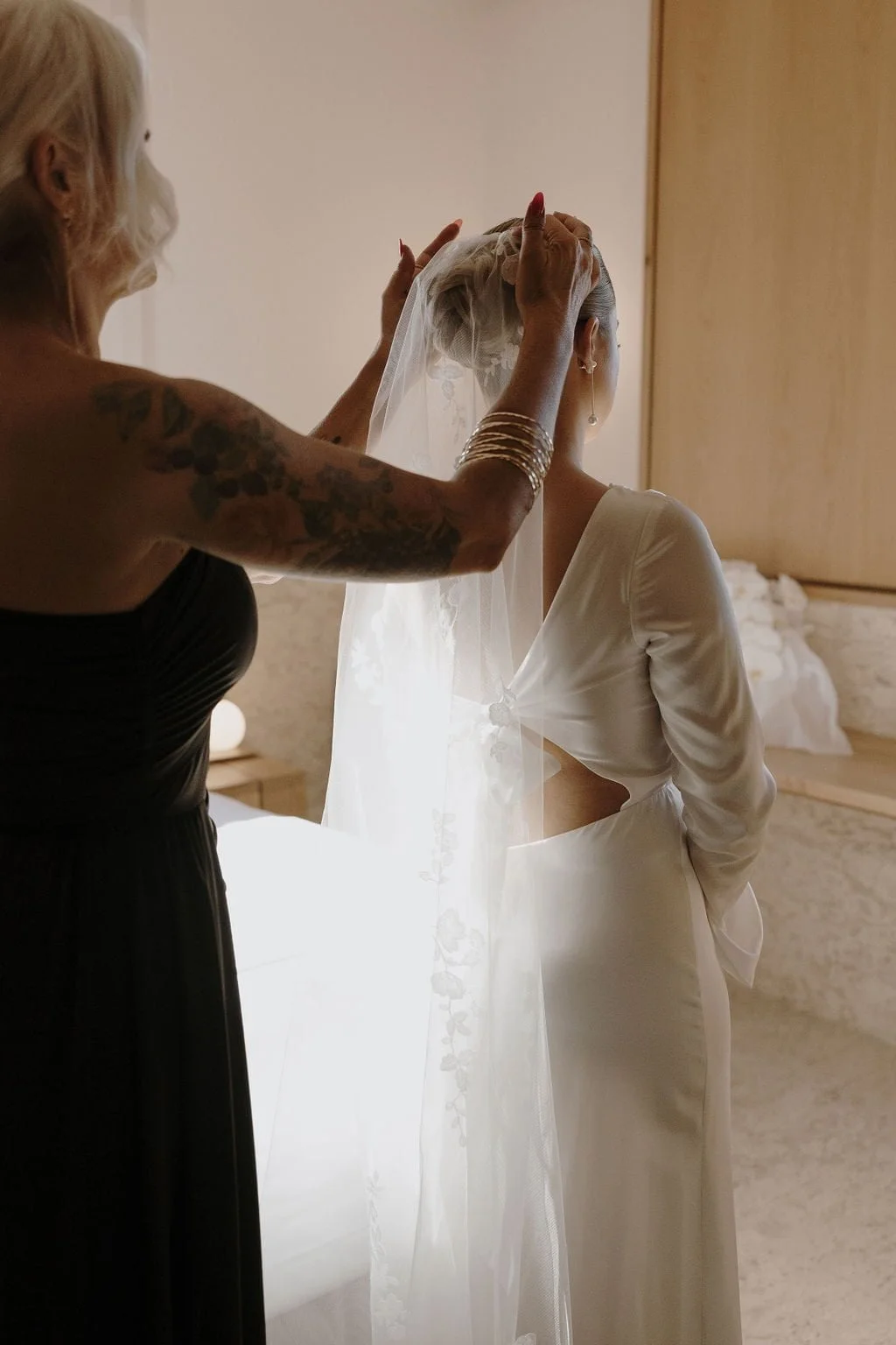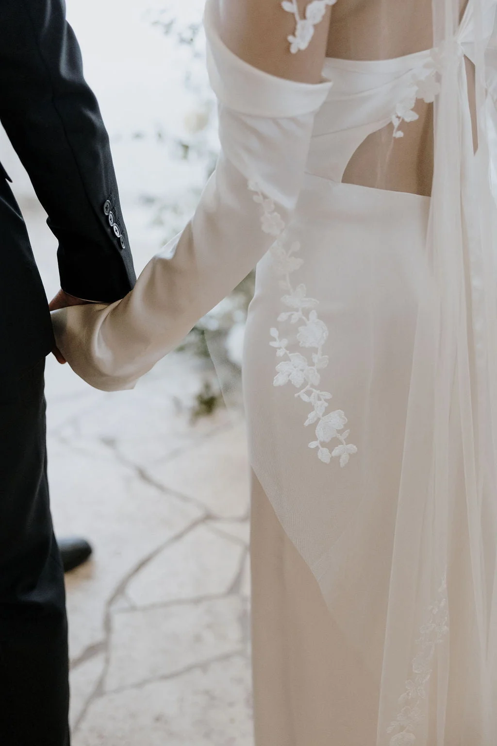 THE DRESS “My wedding dress was from Grace Loves Lace. I knew I wanted a simple and elegant gown with long sleeves, which had some unique elements to the design. I loved the off-the-shoulder vibe. It was just by chance that I was on the Gold Coast and had seen that Grace Loves Lace just released a new range of dresses, including Anu – a beautiful silk, long-sleeved gown with an open back. I went to the Burleigh Heads Boutique to try it on and bought it immediately. I was IN LOVE! I had such a lovely experience, Grace Loves Lace were so thoughtful and accommodating.”