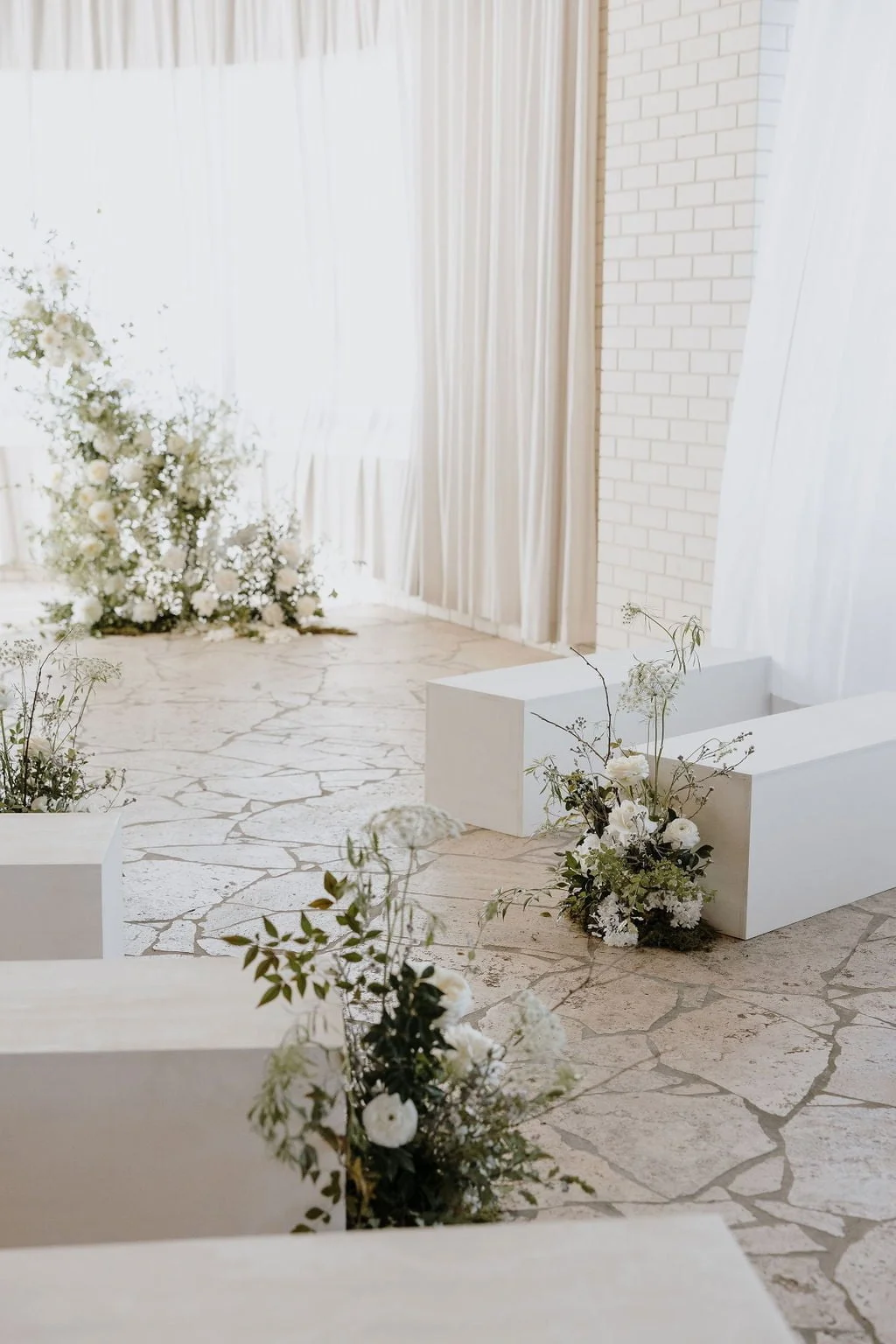 DIY “Ariella had this vision for the ceremony seating – she wanted bench-type seating she had seen in a fashion show, so I decided to make the wooden benches with my dad. We made 12 large white wooden benches over a month , and sent them up to Brisbane for the big day. It was definitely one of the most beautiful elements of our ceremony.”