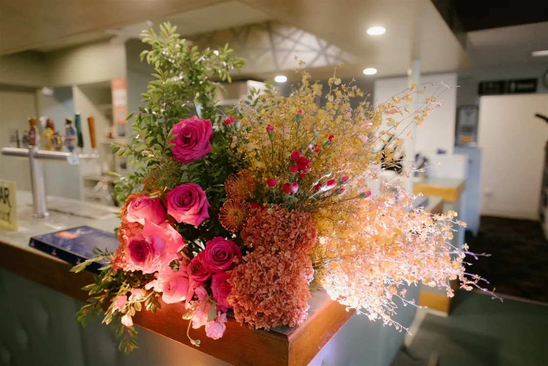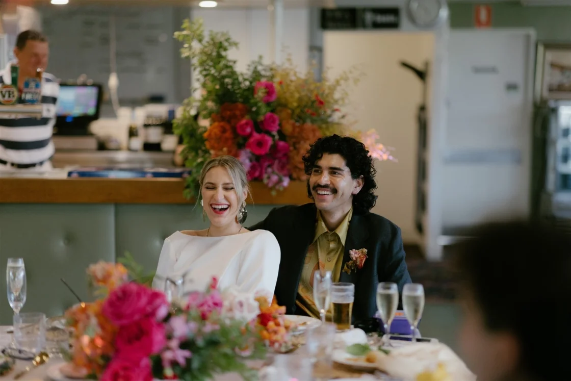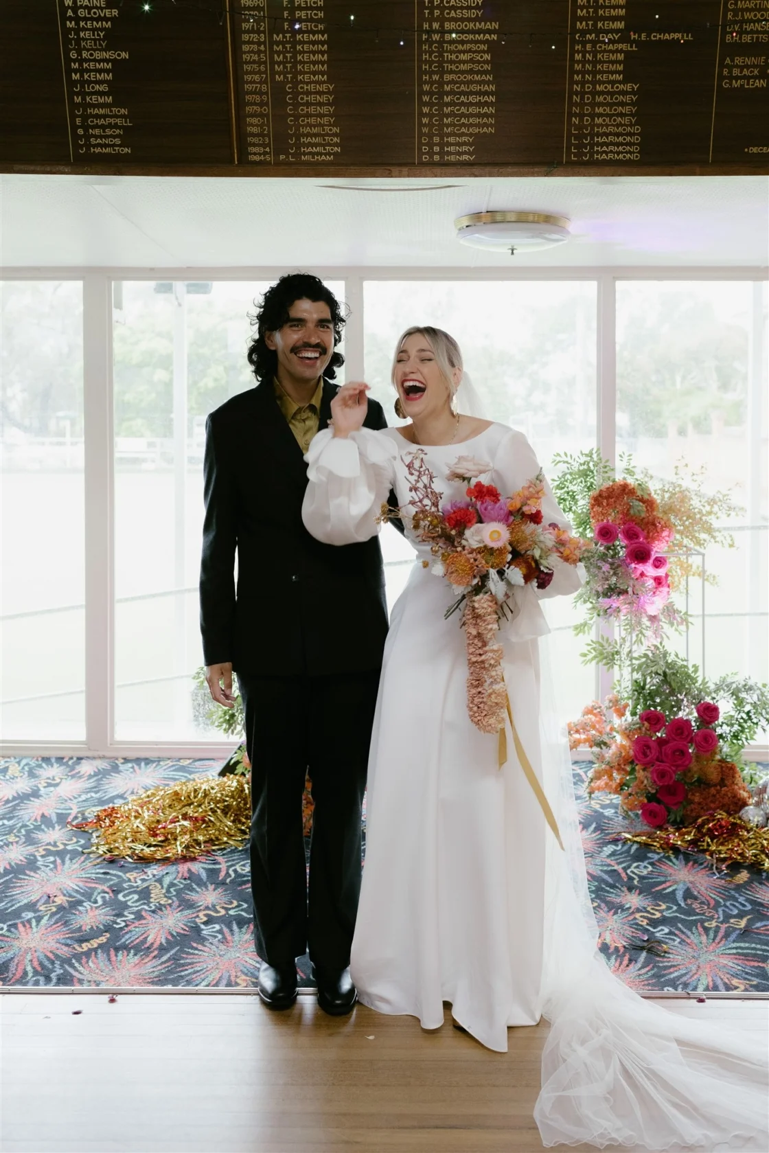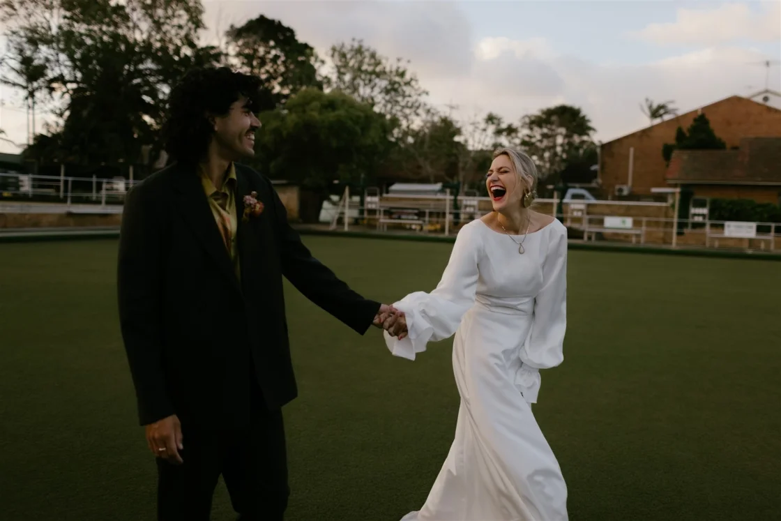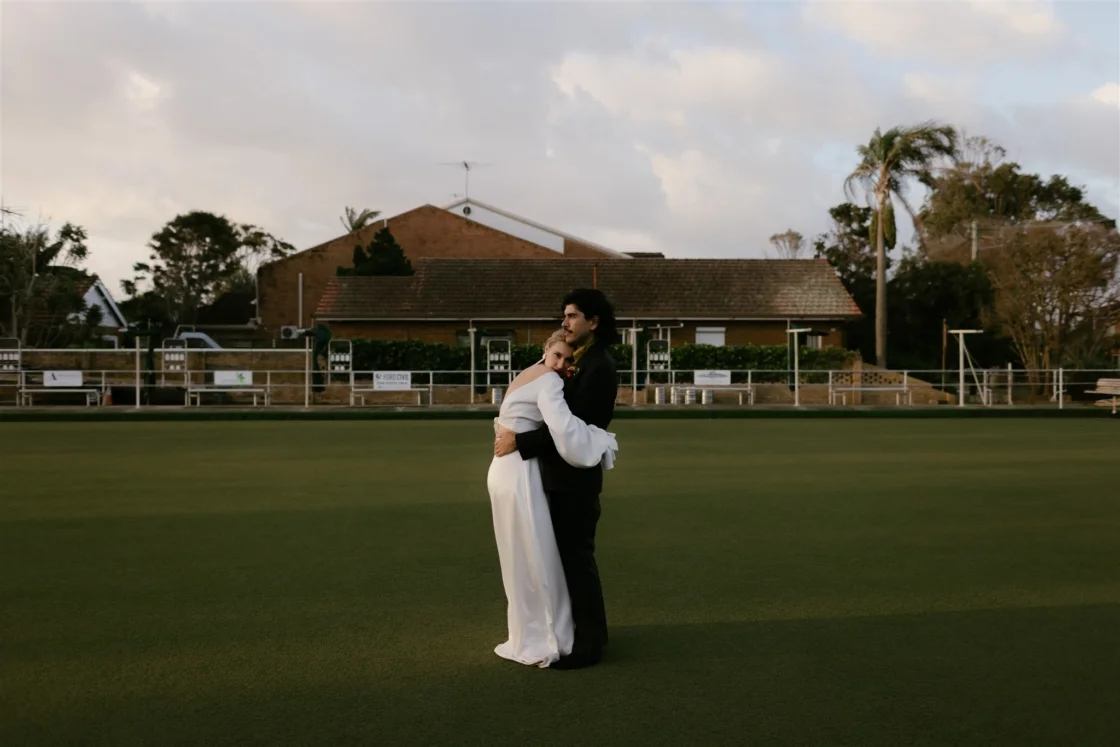 THE VENUE “We had the idea to get married at the South Cronulla Bowling Club and so we popped in for a drink one afternoon and it just felt perfect. We love the whole vibe and the retro movie-theatre-esque carpet is really something. Kalim’s family played bowls for the club many years ago and their names are embossed on the championship board on the wall, which made it quite special.”