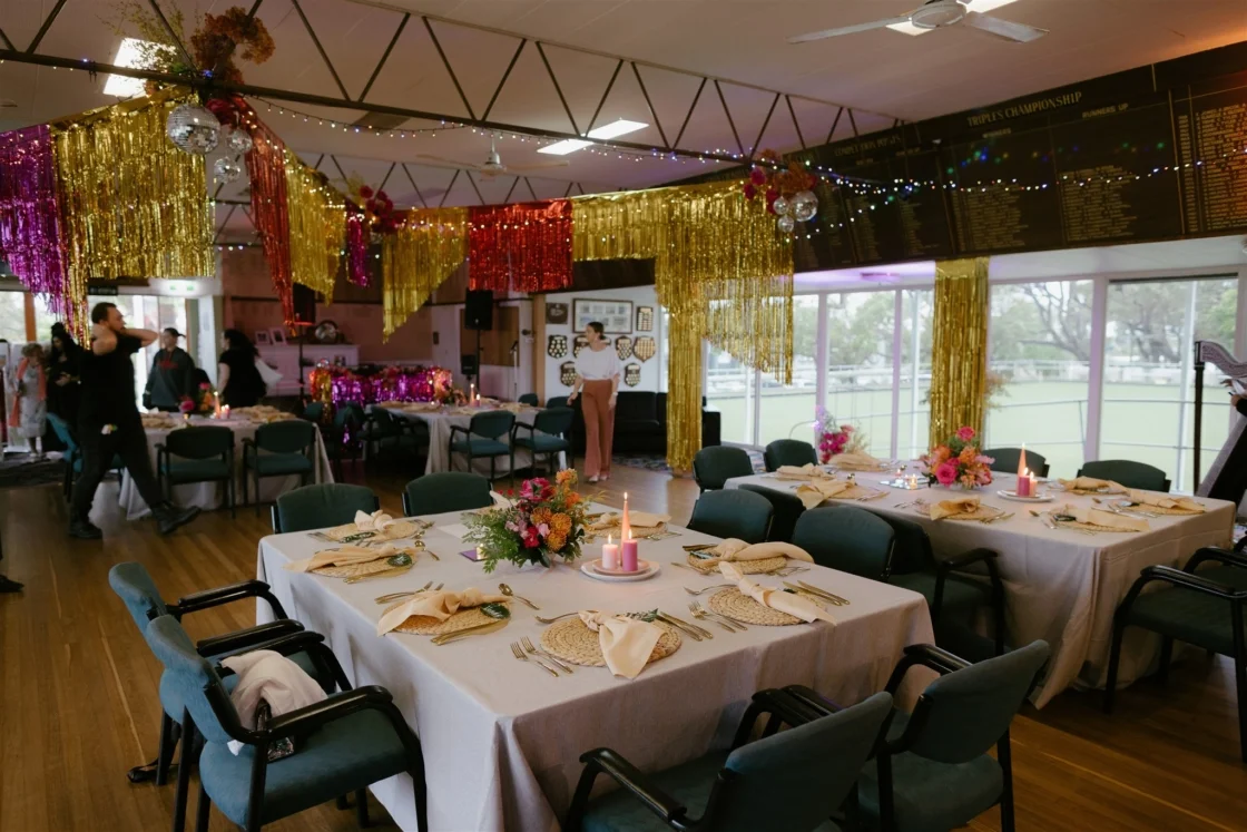 THE VIBE “We were inspired by the music we love and the vibe of the beautiful bowling club. We went to The Marmalade Sky with a vision of a disco dance hall wedding and they brought the goods. Our vendors accoutred the bowling club with disco balls, foil garlands, fairy lights and a Balinese feast, giving us the best disco-bowlo-banquet wedding that was truly unique to us.”