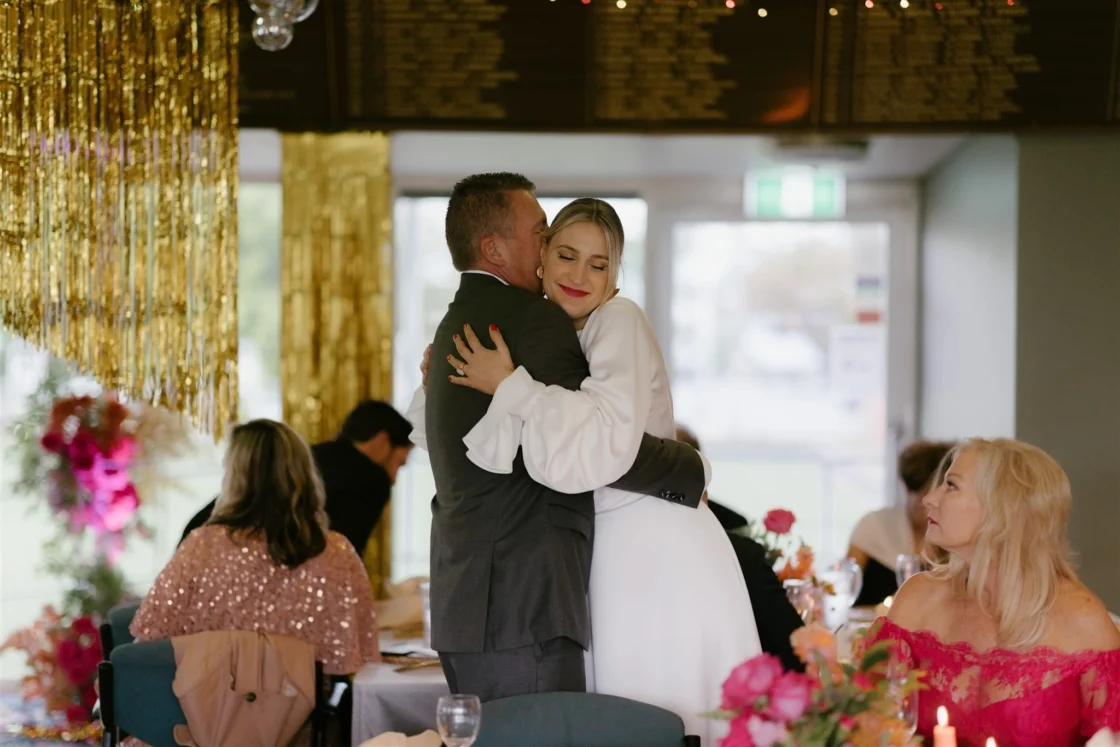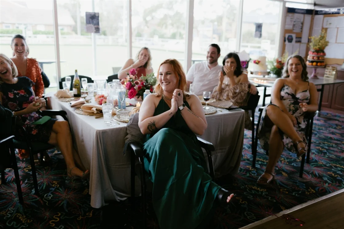 THE VENUE “We had the idea to get married at the South Cronulla Bowling Club and so we popped in for a drink one afternoon and it just felt perfect. We love the whole vibe and the retro movie-theatre-esque carpet is really something. Kalim’s family played bowls for the club many years ago and their names are embossed on the championship board on the wall, which made it quite special.”