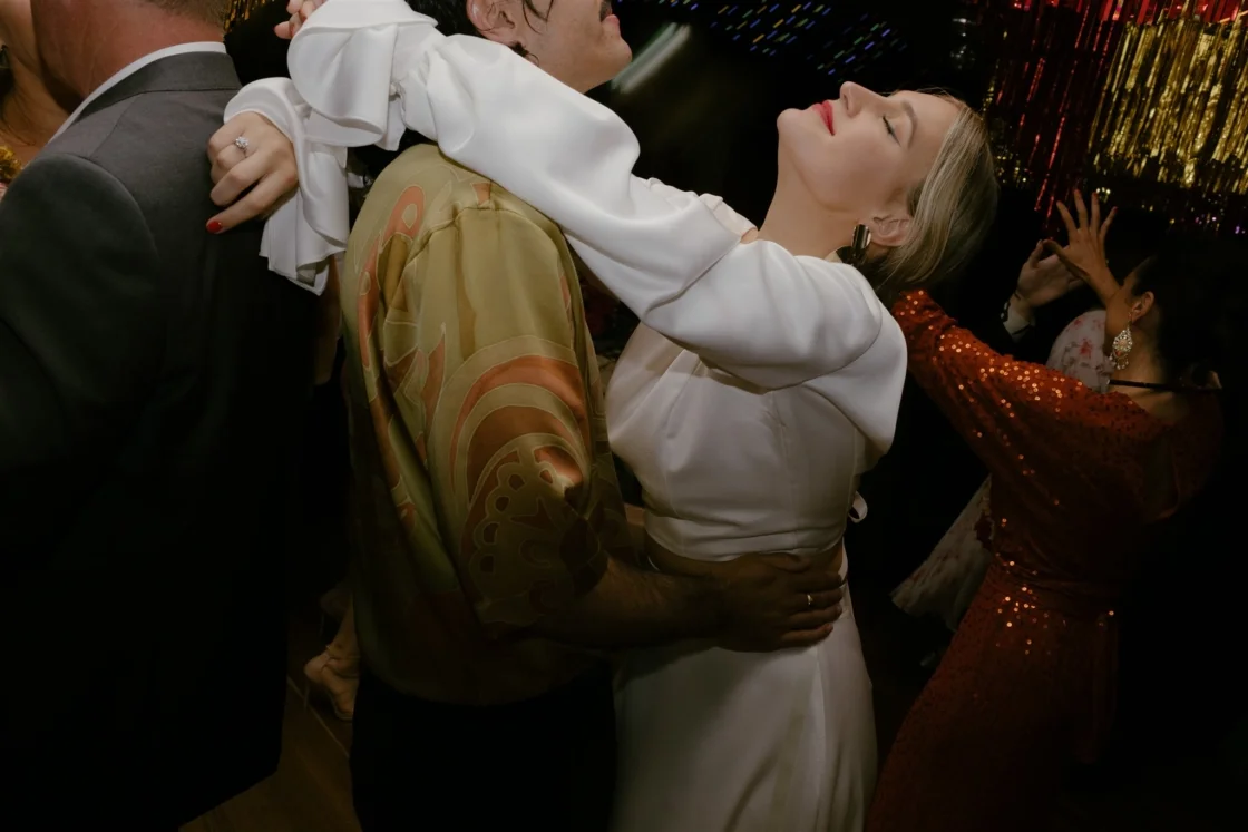 THE VIBE “We were inspired by the music we love and the vibe of the beautiful bowling club. We went to The Marmalade Sky with a vision of a disco dance hall wedding and they brought the goods. Our vendors accoutred the bowling club with disco balls, foil garlands, fairy lights and a Balinese feast, giving us the best disco-bowlo-banquet wedding that was truly unique to us.”