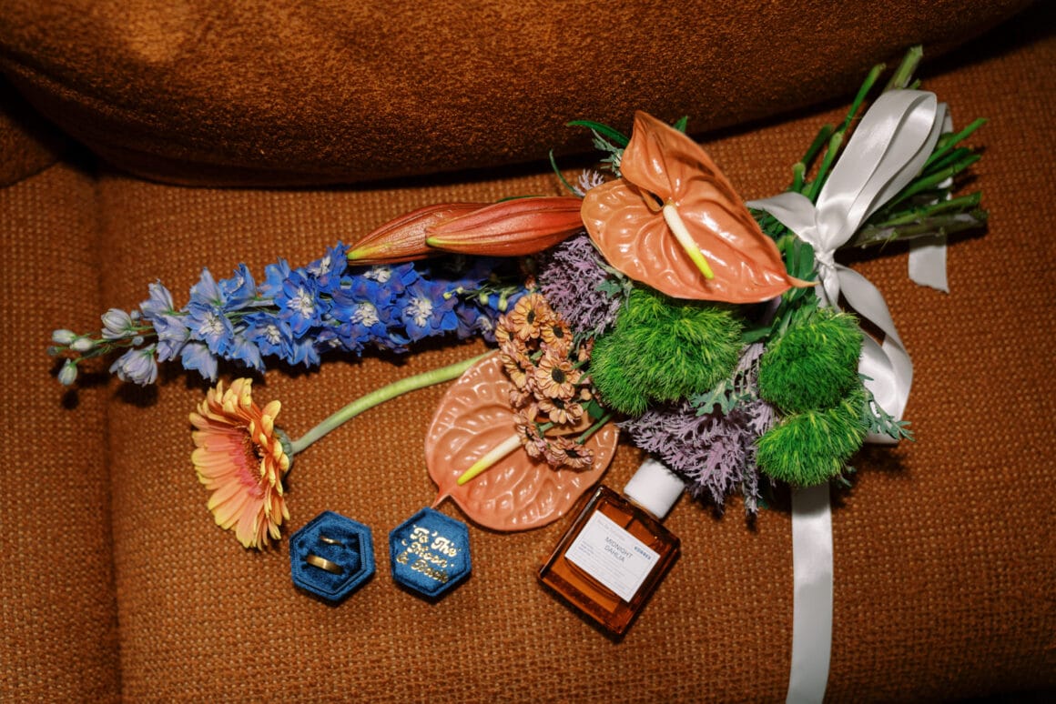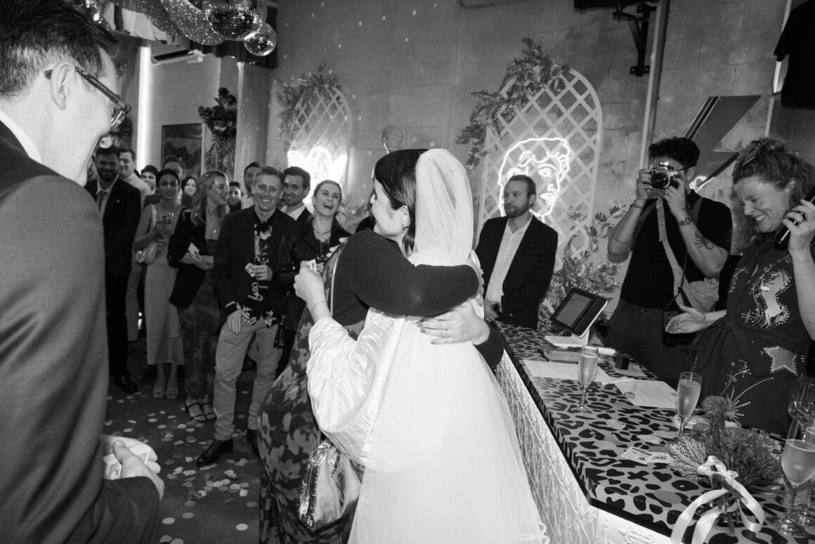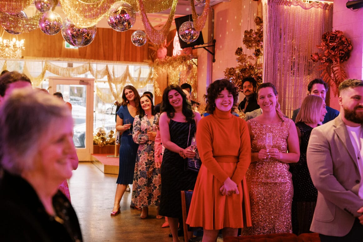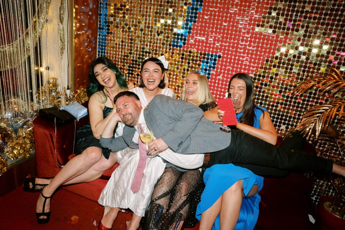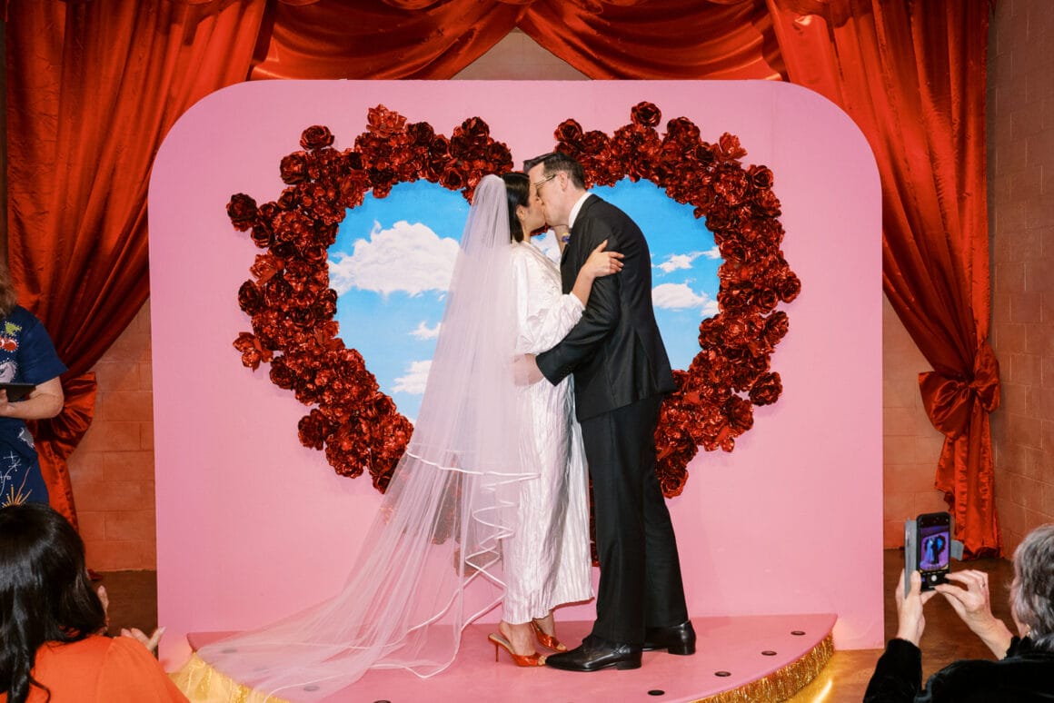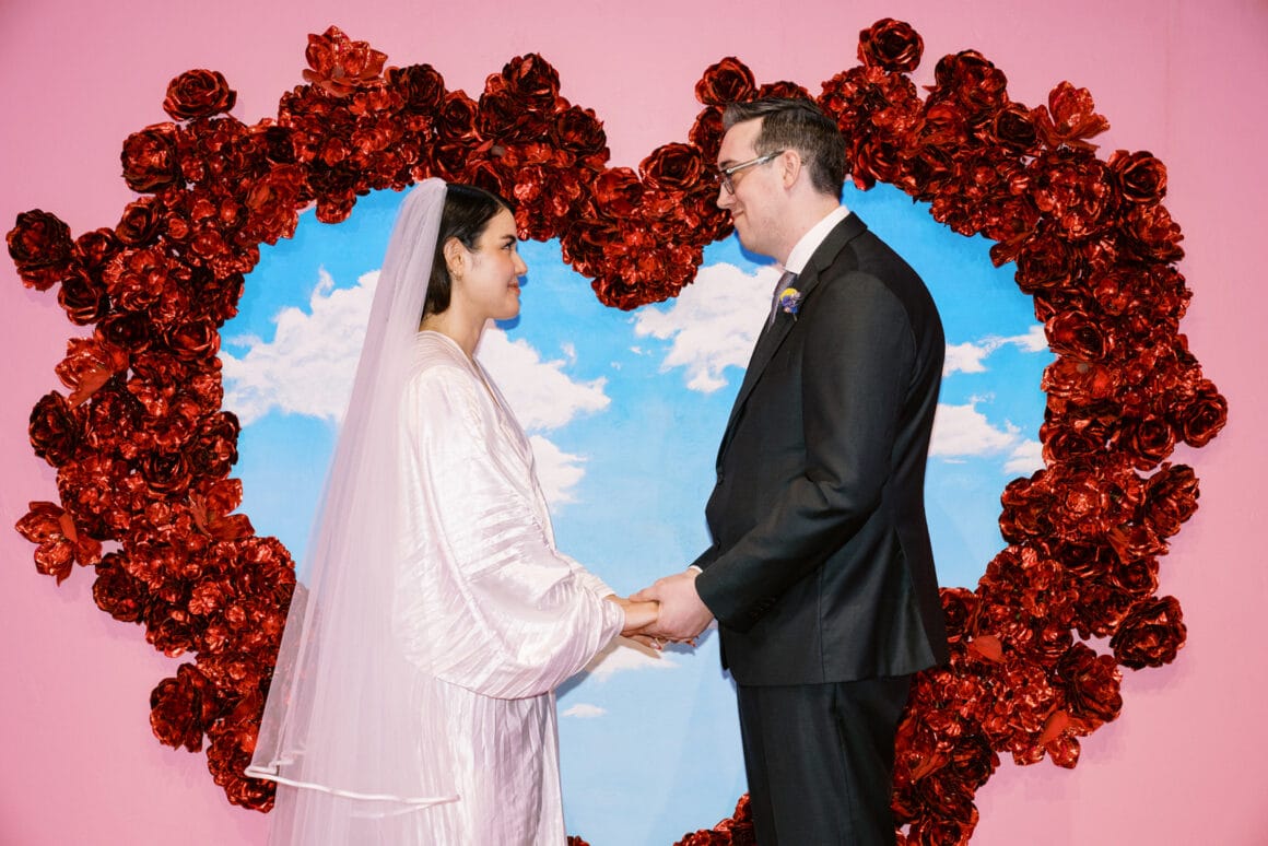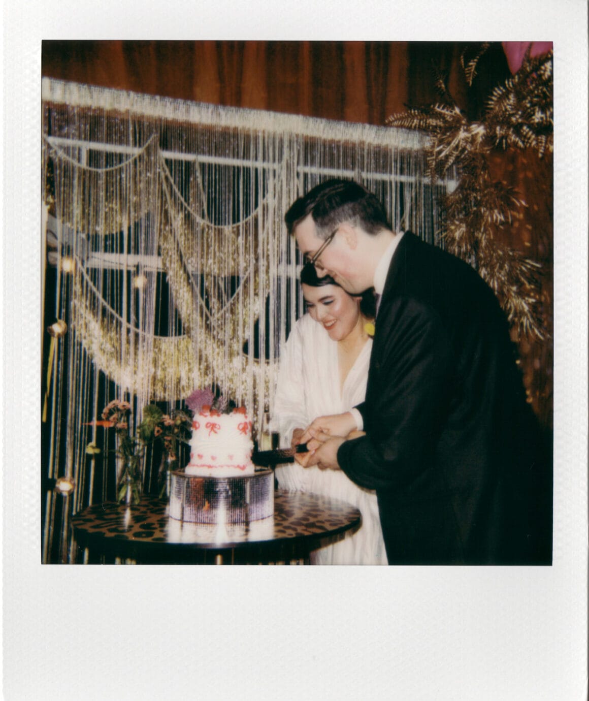 Asheda and Travers didn’t have to look far in hunting for a spot to get hitched – The Altar Electric was just down the road from their Melbourne abode! This duo of eight years fully embraced the venue’s bold aesthetics and Vegas chapel-esque vibe, while weaving in their own quirky, “out of the box” details (a butter sculpture, custom playing cards for guests to sign, and ice cream cake, to name a few).