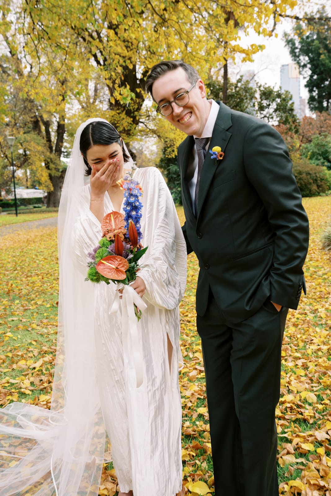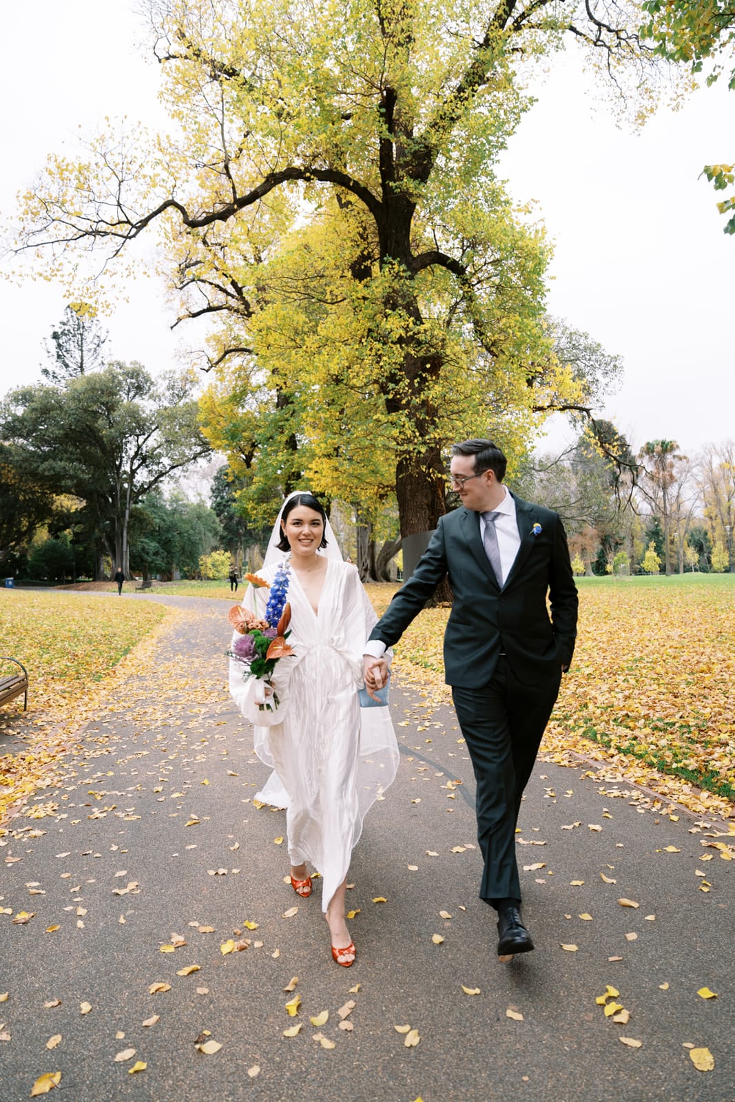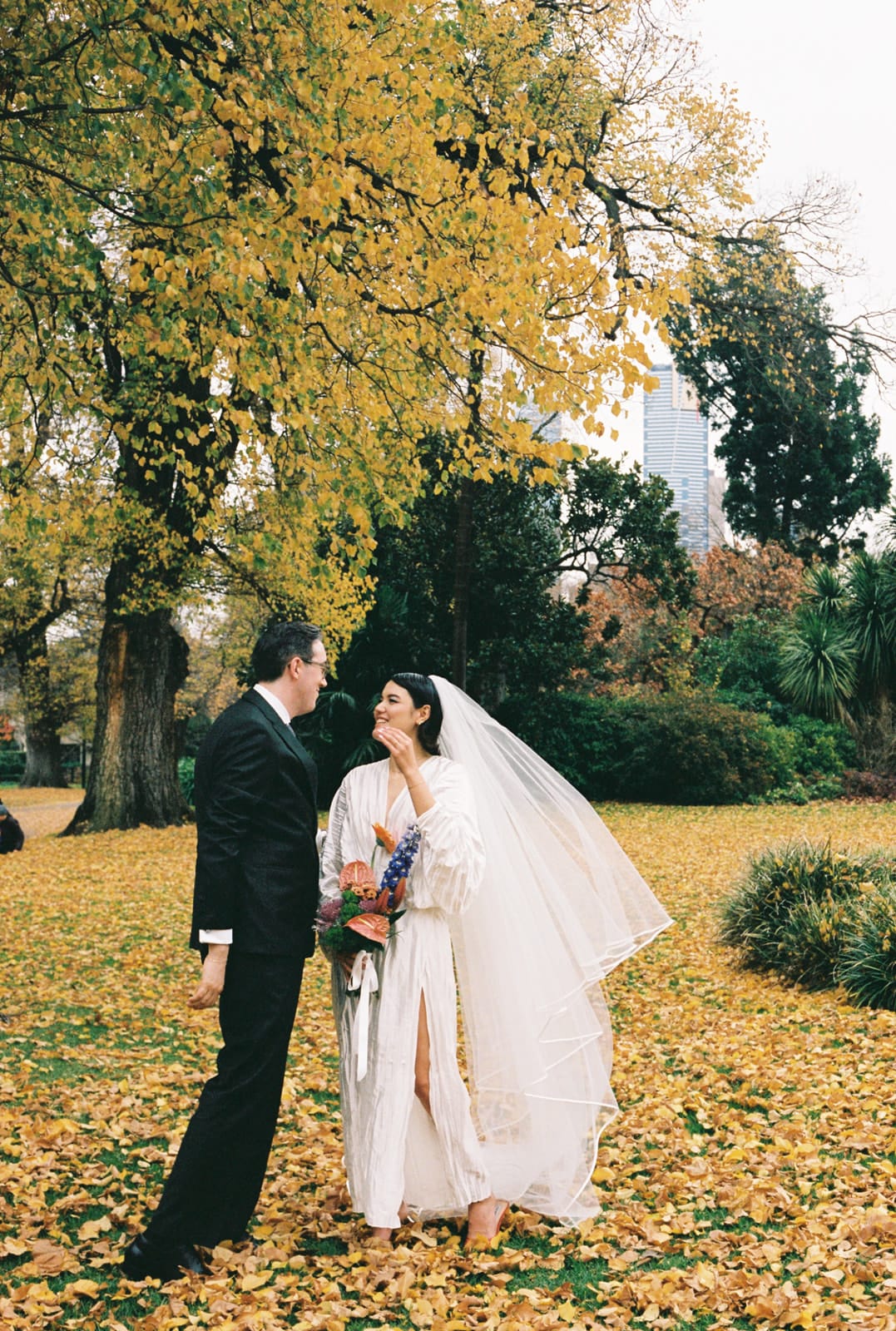 The bride wore L’idée, channelling “ethereal ’70s goddess” energy, and the pair described Travers’ custom suiting experience with InStitchu as “seamless.” Redbook Studios was there to capture the intimate Melbourne shindig – scroll on to see it for yourself. Oh, and Asheda (who helps folks write vows for a living) was kind enough to share some tips with us too. What a legend!