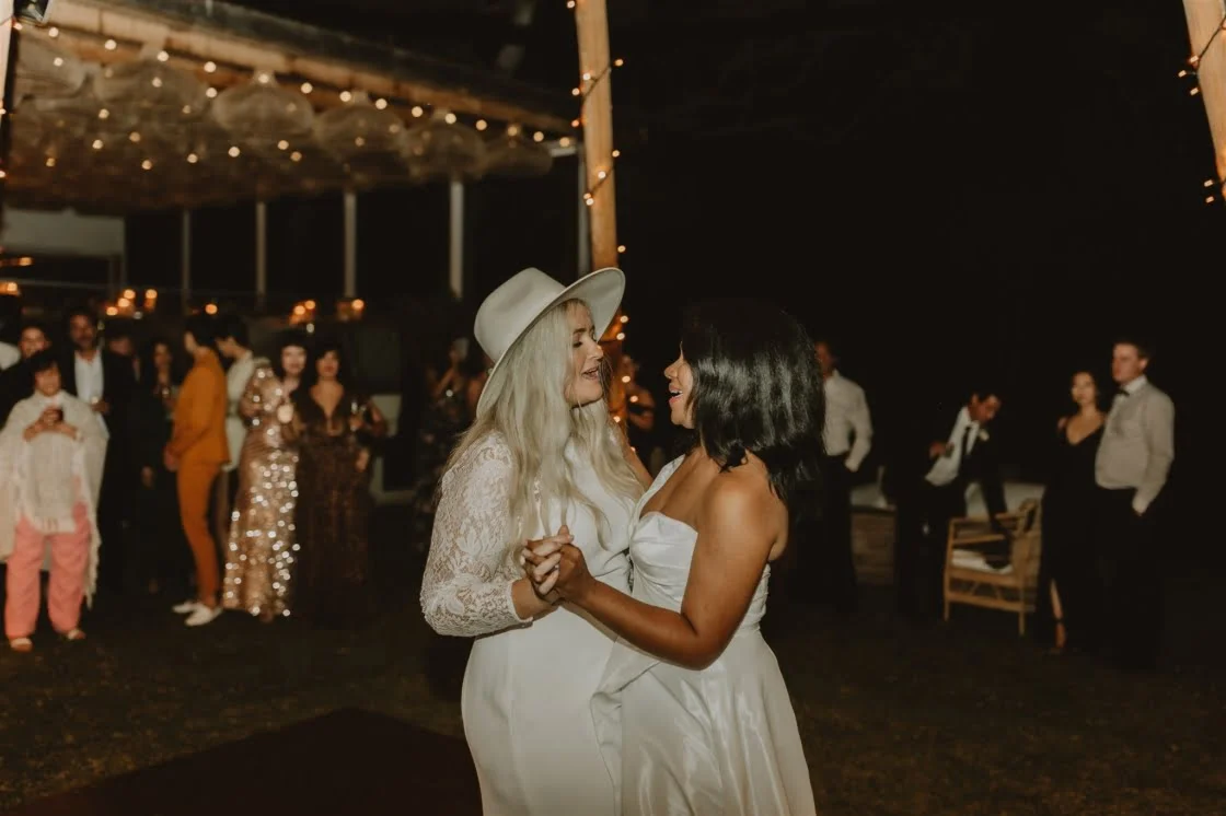 FAVE DETAILS “The celebrant planning for our guests to announce us wife and wife with a champagne toast was super special. The naked teepee with fairy lighting and wooden dance floor was also a standout WOW factor for us.”