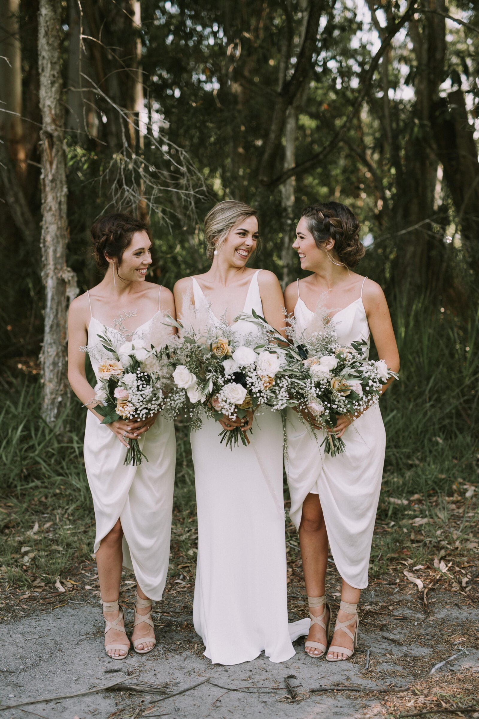 FAVOURITE DETAILS “The arbour was pretty magical. My florist had never done anything like it before, but I attempted to draw a rough picture along with a few Pinterest concepts and she absolutely blew me away. We were surrounded by timber on the property, so creating a soft, elegant timber-free arch completely from florals, foliage and pampas grass softened the feel of the whole environment. It was also portable so we could re-use it in the reception to frame the dance floor – she was a true creative genius!”