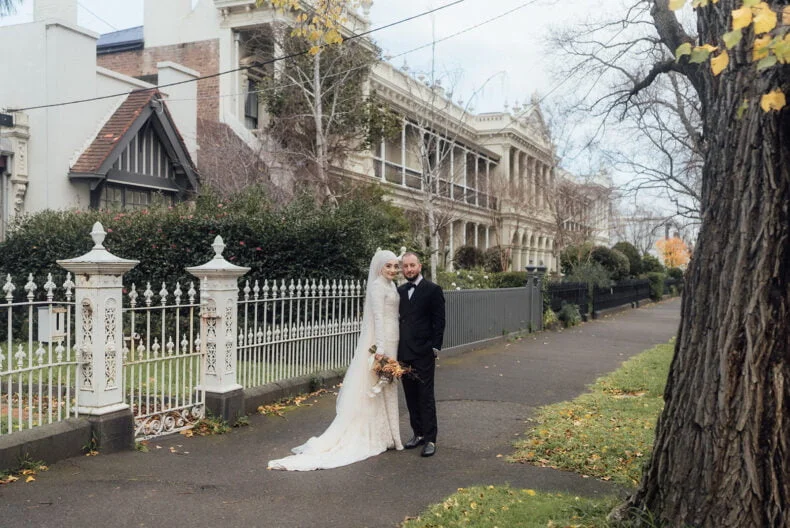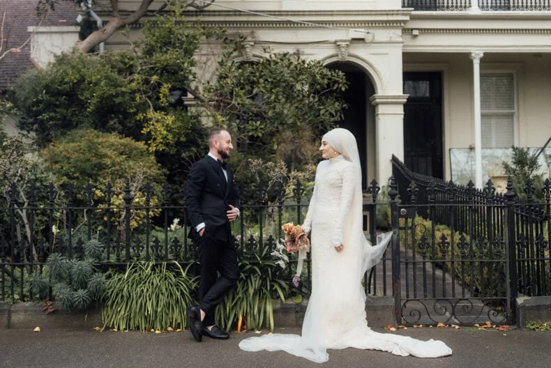 CONTRIBUTING VENDORS Photographer Free The Bird Cinematographer (Digital) Ninesixteen Films (Super 8 Film) Flynn Films Florist Twig & Type Ceremony & Reception Venue Sophia at Prahran Arcade Cake Get Caked by Lisa Entertainment The Wedding Maestro (DJ Umut) Celebrant Dr Bekim Hasani Rings Windfall Jewellery Transport Abbey Road Classic Car Hire THE BRIDE Bridal Gown Designer & Veil Bahar Robes Deiji Studios Shoes Badgley Mischka Accessories Jimmy Choo Hijab Styling Reyyan Emniyet Makeup Zee Makeup Artistry THE GROOM Suit The Suits Concierge
