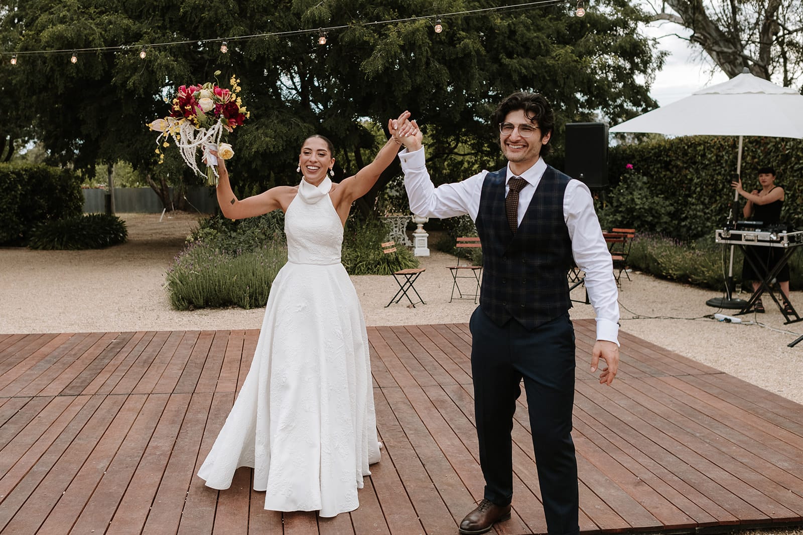“Where to begin! Being sung down the aisle by a loved one was so special. Our celebrant, Yolande, captured us perfectly in our ceremony and made it a core memory with just the right touches of humour and romance. She managed to ground us in the moment with each other and set the vibe for the whole day. Once everyone hit the dancefloor, they didn’t stop – we danced all night long!”