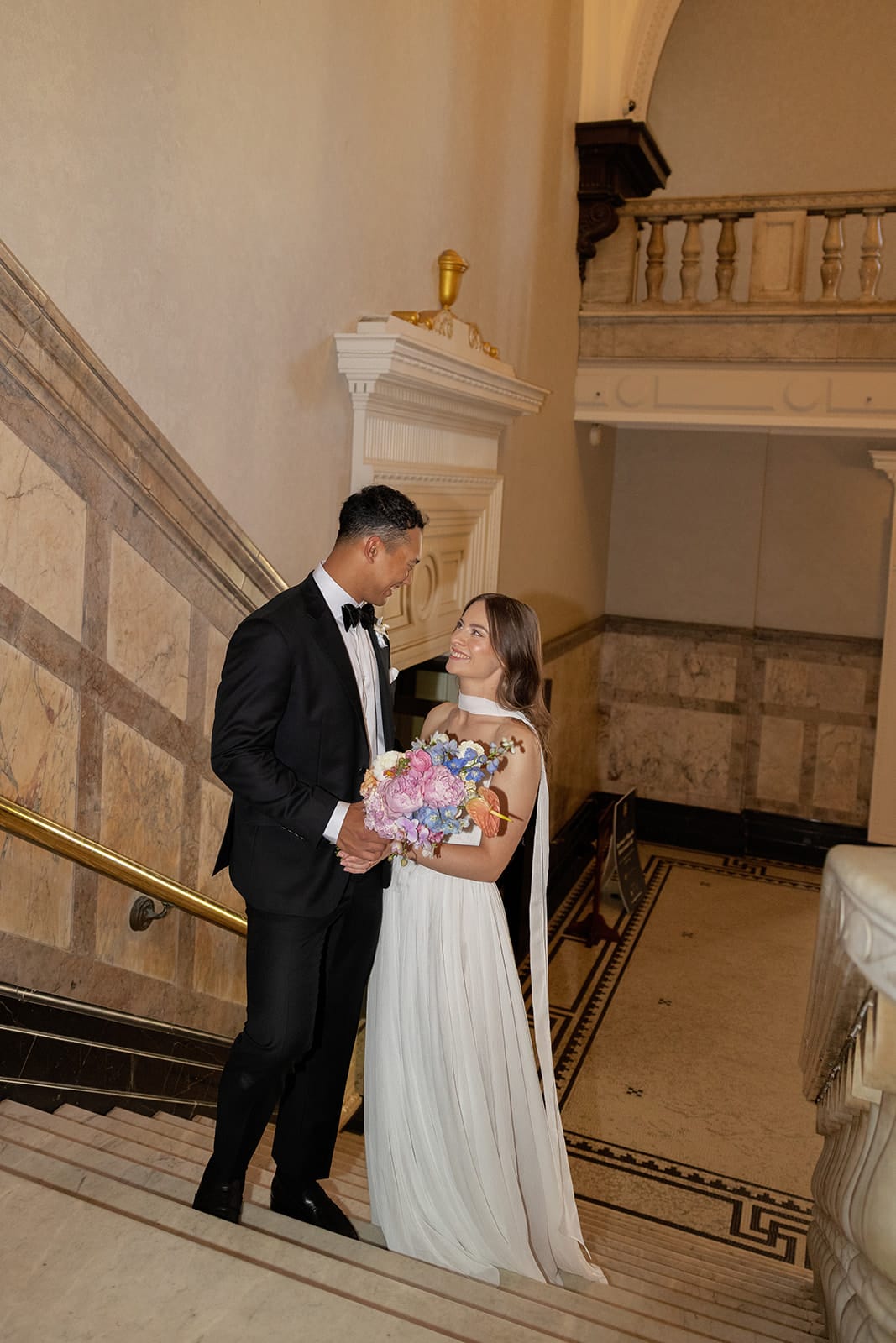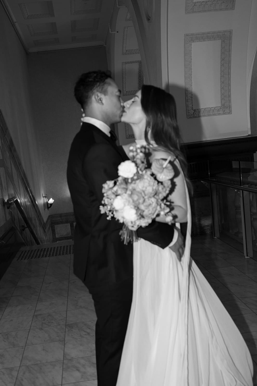 “We loved being able to include our immediate family in our ceremony at the registry. It was such a nice time for us to all connect on a smaller scale before the party started with the rest of our friends and family in the evening. We also both really appreciated being able to spend time with each other during our photography session with Alix, who made things pressure free and enjoyable! Additionally, meeting up with all of our dinner guests at LOS Bar for pre-dinner cocktails was so much fun!”