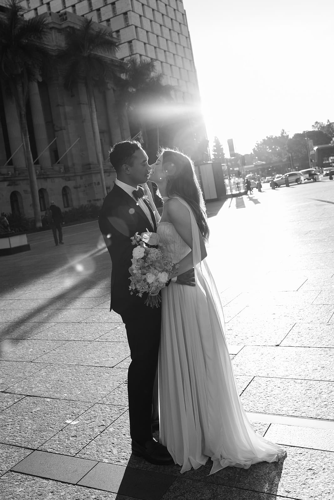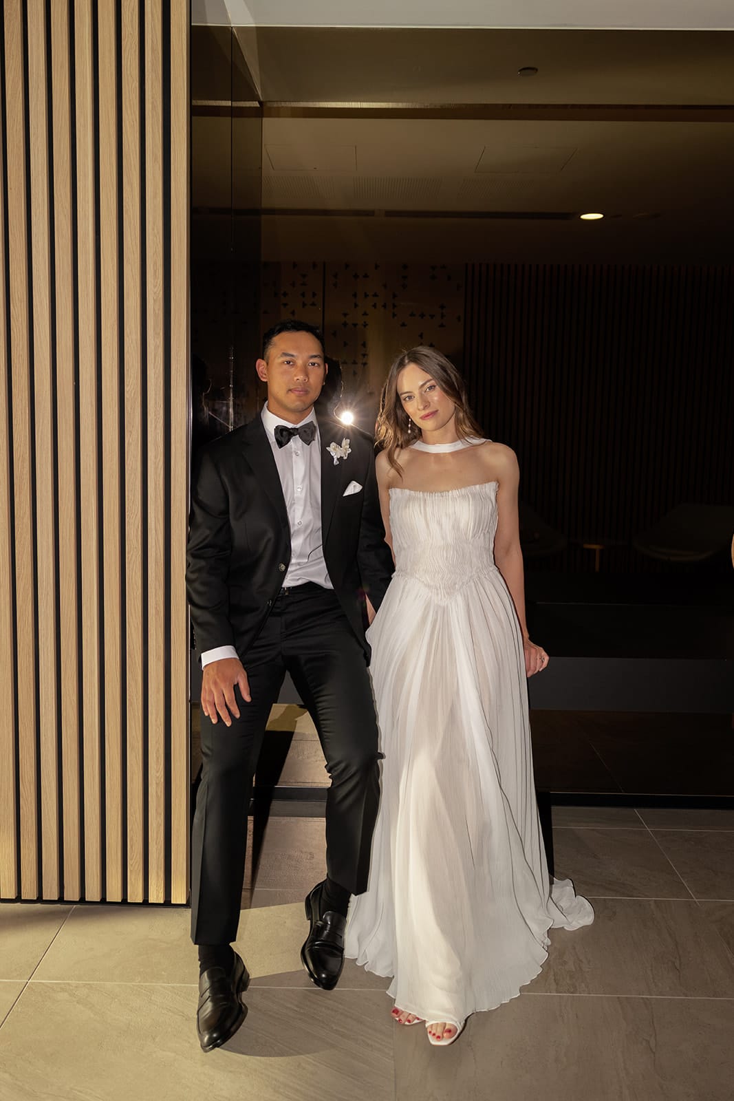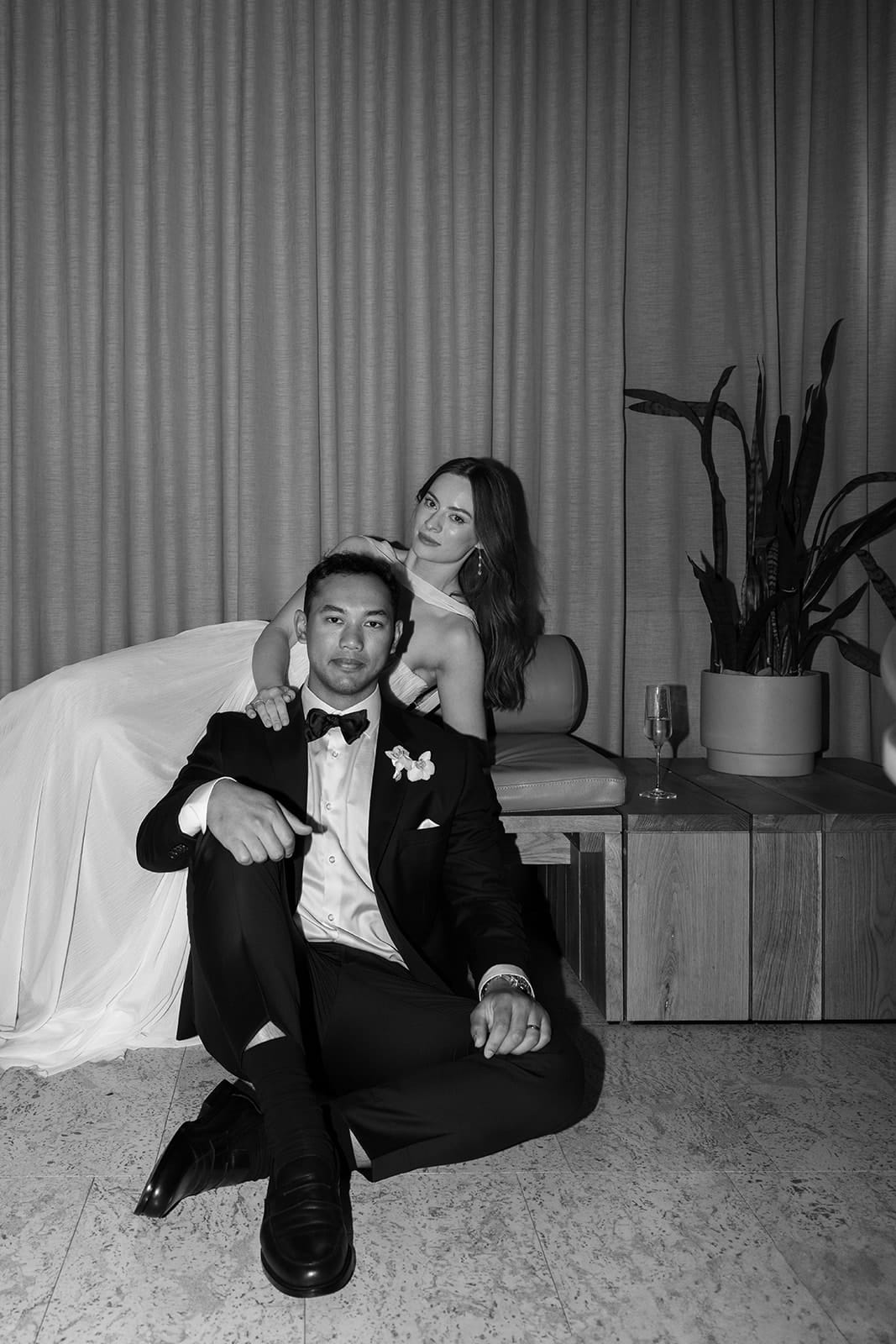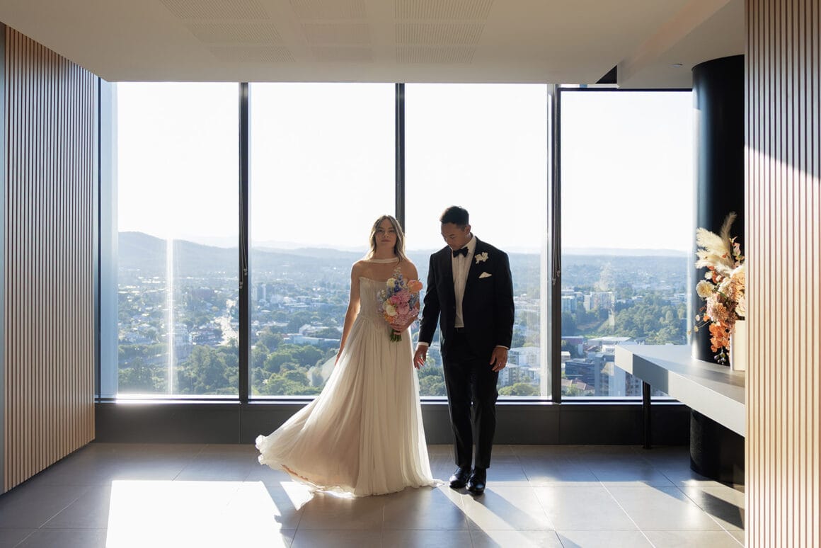 A simple, chic, Brisbane city elopement was much more Bella and Dom’s style, artfully captured by Alix Dubois Photography (“absolutely fantastic to work with”). After the ‘I do’s, the happy couple, with an intimate group of friends and fam, headed to sAme sAme’s private dining room to celebrate. As for accommodation, they made the genius decision to book The Calile Hotel (boasting a convenient location, and quick-thinking staff, as you’ll read below).