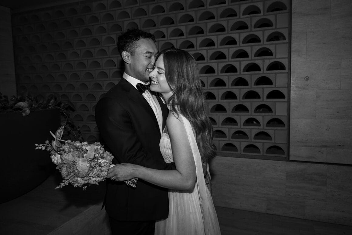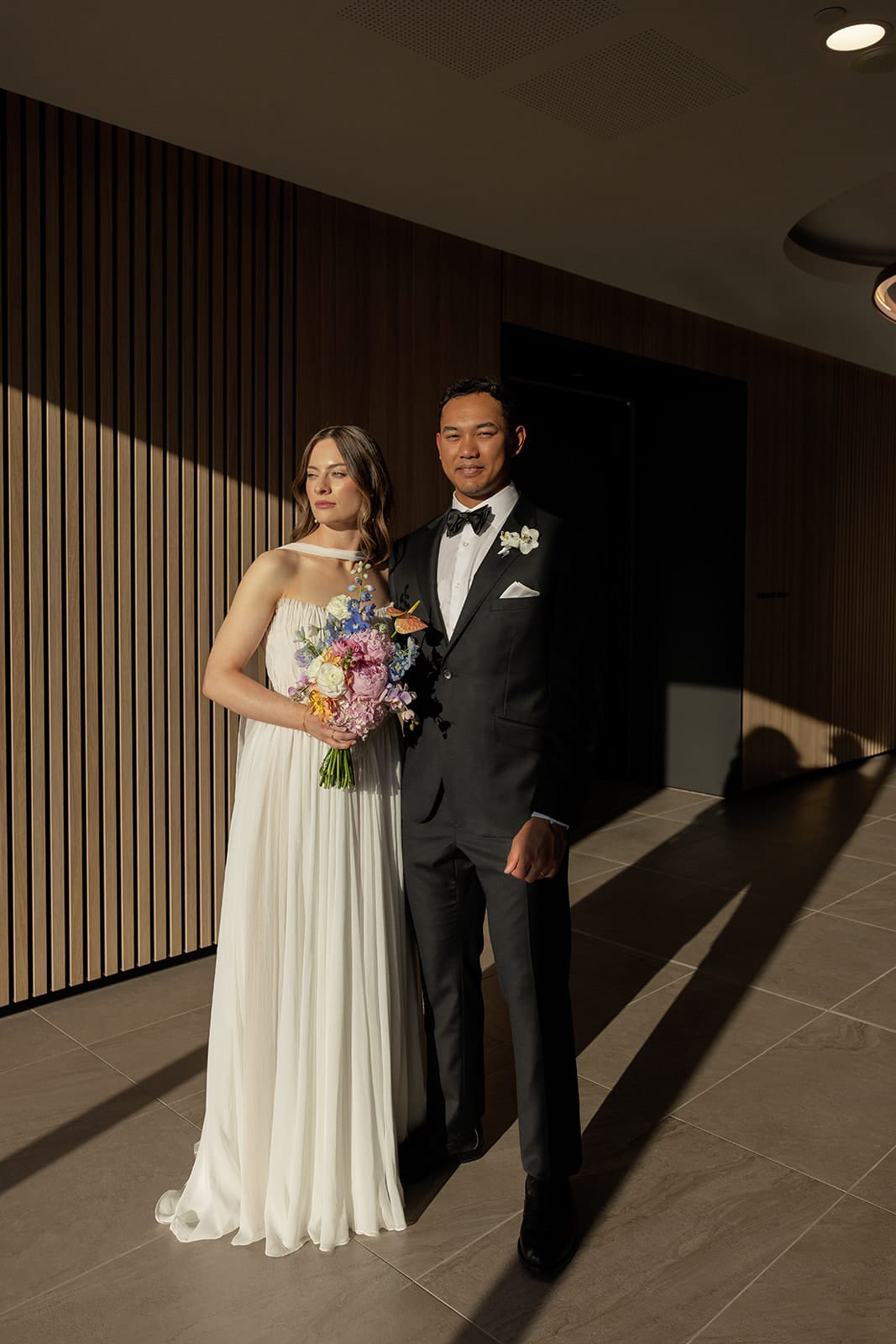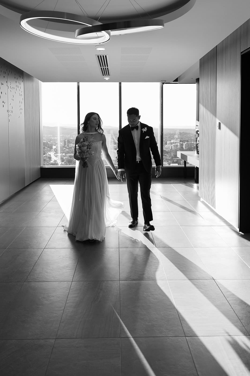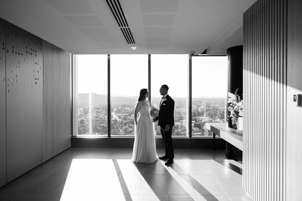 A simple, chic, Brisbane city elopement was much more Bella and Dom’s style, artfully captured by Alix Dubois Photography (“absolutely fantastic to work with”). After the ‘I do’s, the happy couple, with an intimate group of friends and fam, headed to sAme sAme’s private dining room to celebrate. As for accommodation, they made the genius decision to book The Calile Hotel (boasting a convenient location, and quick-thinking staff, as you’ll read below).