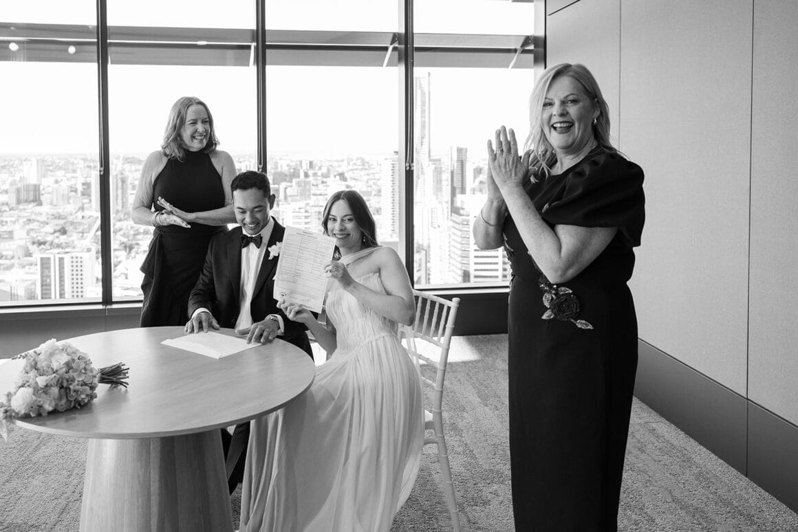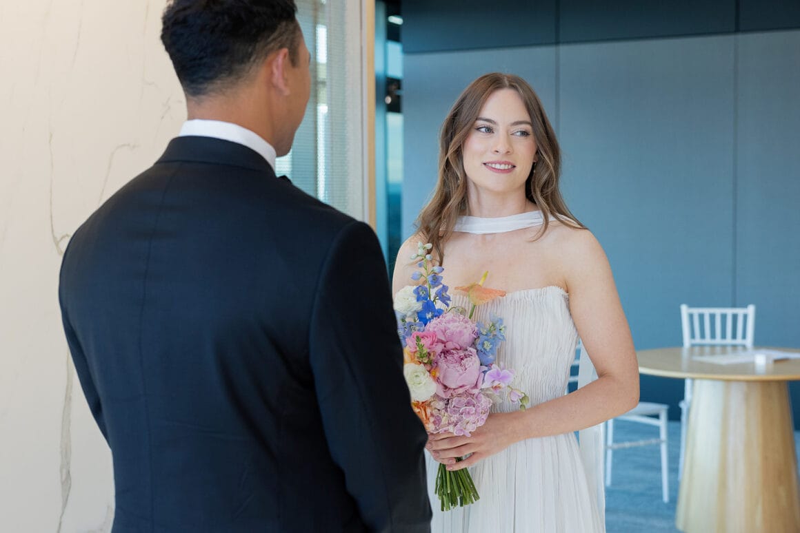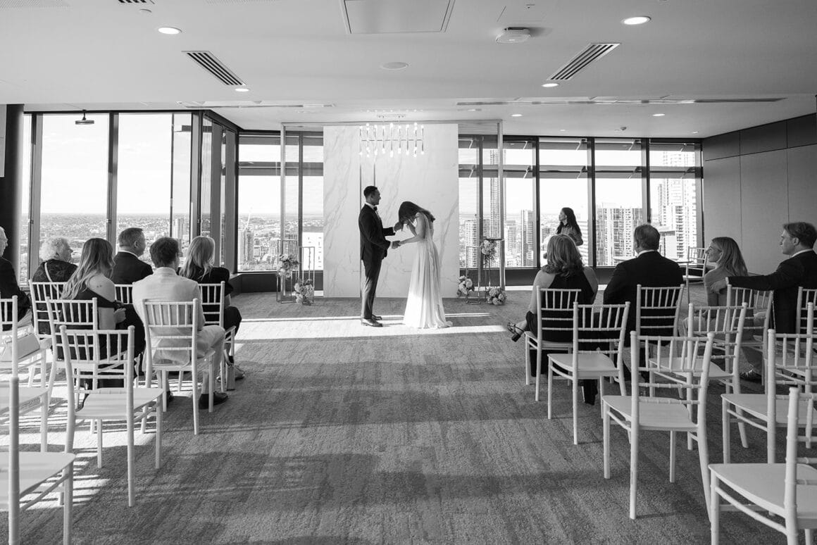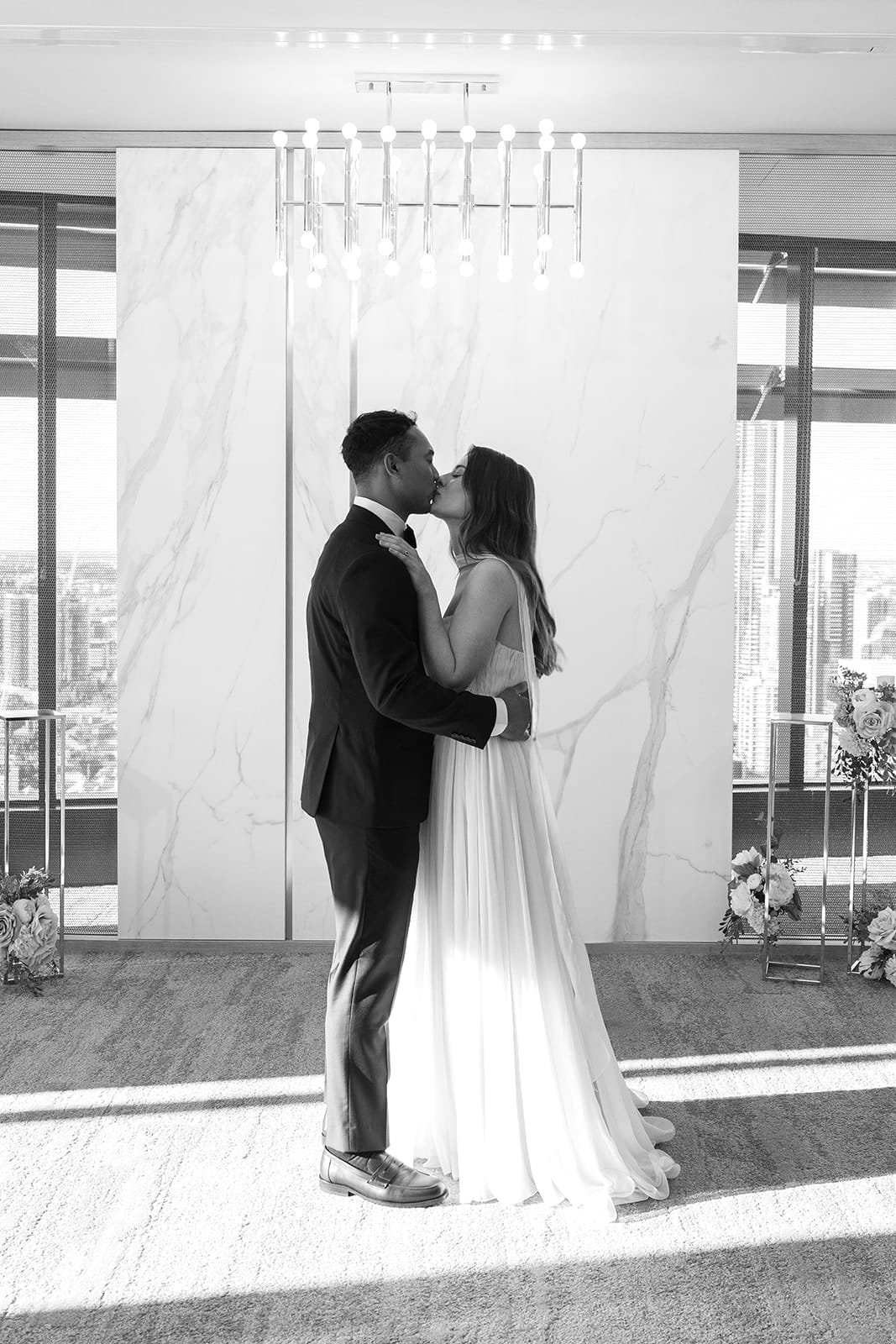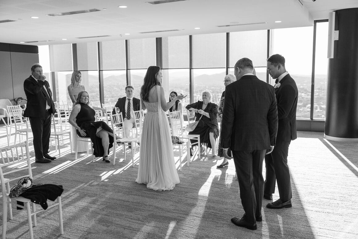 A simple, chic, Brisbane city elopement was much more Bella and Dom’s style, artfully captured by Alix Dubois Photography (“absolutely fantastic to work with”). After the ‘I do’s, the happy couple, with an intimate group of friends and fam, headed to sAme sAme’s private dining room to celebrate. As for accommodation, they made the genius decision to book The Calile Hotel (boasting a convenient location, and quick-thinking staff, as you’ll read below).