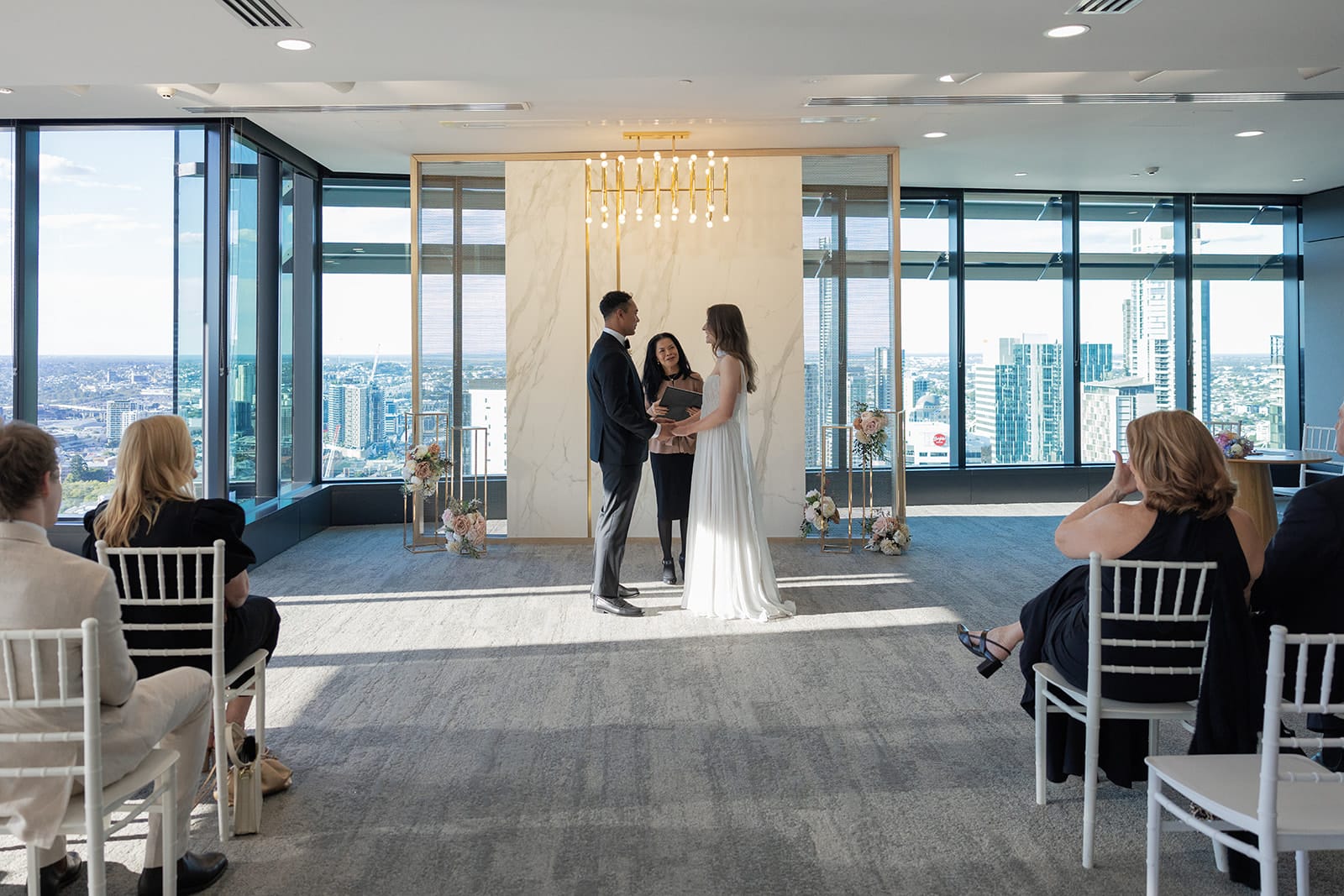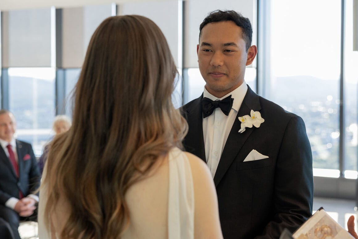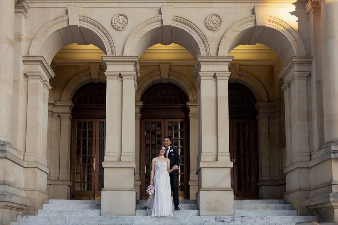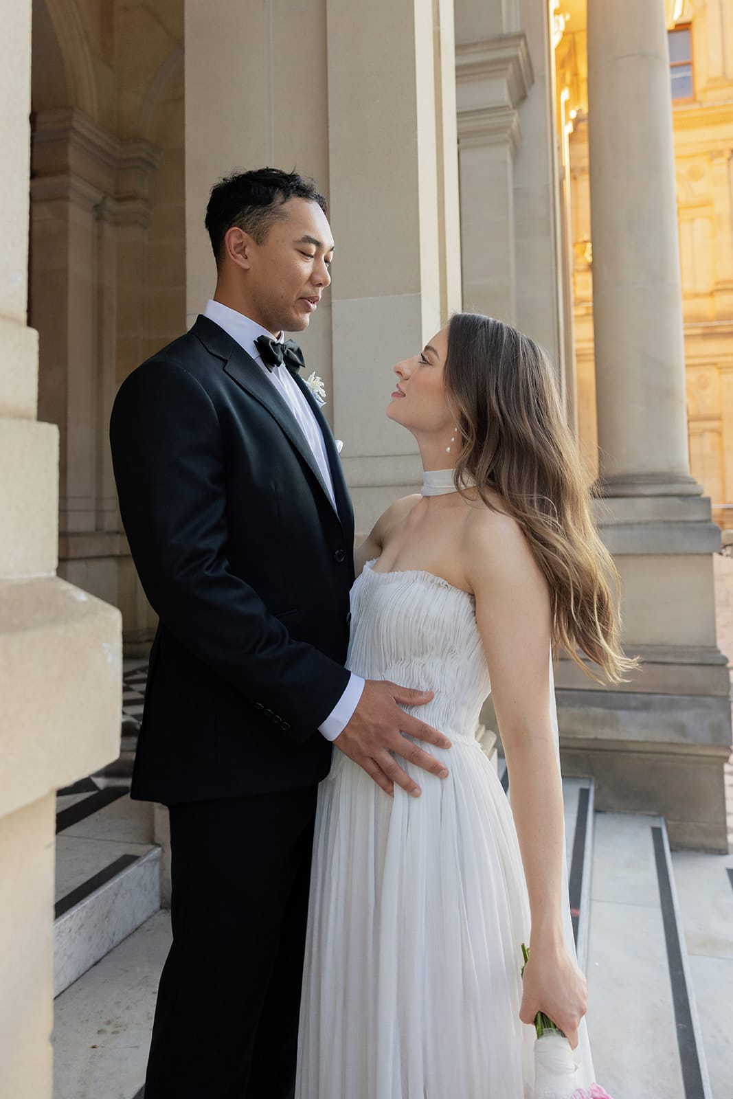 “Dom and I decided we would meet up at our hotel after getting ready to travel to the registry together. As we were getting out of the elevator, Dom stepped on the train of my dress and ripped my dress where the skirt attached to the bodice. We both kept our composure and did not panic! Thankfully the staff at The Calile reception were able to pin my dress back together. Their work was so well done that you couldn’t even tell that the dress had been ripped. Looking back, it’s a bit of a comical moment for us… Special shout-out to the staff at The Calile for their quick thinking and incredible tailoring skills!”