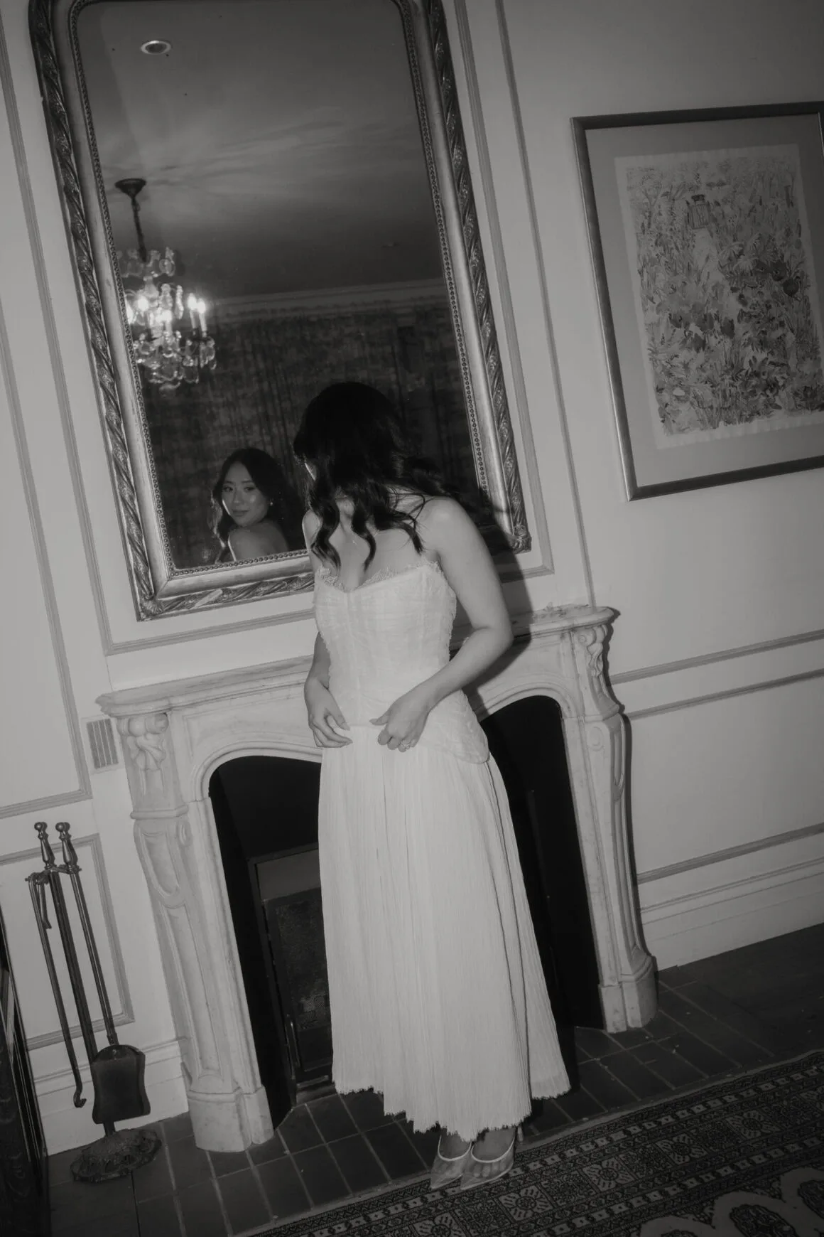 THE DRESS “I knew I wanted a Greta Kate dress before I even got engaged. I had seen her beautiful work all over my feed, so it was a dream to work with Greta on not only one but two incredible dresses. The design for the first dress came together very naturally. Greta brought it to life from my vague inspiration, a beautiful off-the-shoulder A-line dress that I absolutely adore. I wanted [the second dress] to be more delicate and loved the elegance of a drop waist, tea-length style.”