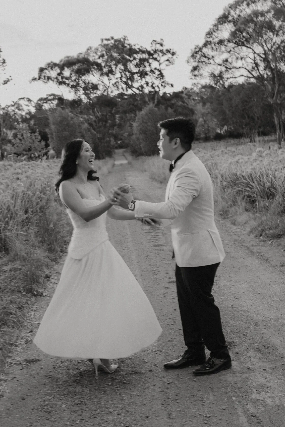 CONTRIBUTING VENDORS Photographer Taylor Kezia Cinematographer Jessie Anderson – The Film Room Stylist, Signage & Florist Hygge Studio Stationery Paperlust (Save The Dates), Peggy and Polly (Invitations) & Hygge Studio (Other Stationary) Venue Al Ru Farm Catering Dine Catering Food Trucks or Carts Canela Cartels Cake Maker Cielo Wedding Favours Cloud Theory Hire Items White Marquee Event Hire & Memory Lane Events Photo Booth Snap/Snap Entertainment DStar Entertainment & Him & Her Music Celebrant Wild Love Stories Rings Janai Jewellery Transport A1 Tour & Charter Dog Chaperone I Do Paws THE BRIDE Bridal Gown & Veil Designer Greta Kate Robes / Getting Ready Tees Piyama Shoes Jimmy Choo, Meggan Morimoto Accessories Dior (Earrings) & Janai Jewellery (Necklace) Hair NFM Hair Makeup Frankie Makeup & Brows Perfume Celine Bridesmaid Dresses Hexie Bridesmaid Gifts Amelie George THE GROOM Suit, Jacket, Shirt, Pants & Bow Tie M.J. Bale Cufflinks David Jones Shoes Florsheim Watch Frederique Constant via Filigree Jewellers Groomsmen Suits M.J. Bale