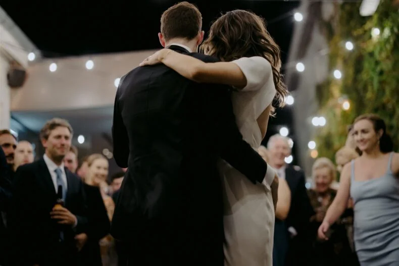 WE’RE GLAD WE… “We both put a lot of effort into our vows, proofread our celebrant Meg’s introduction, and practised our first kiss. To me, this moment was the most ‘wedding’ part of the day, so it calmed my nerves a lot [knowing] how it would proceed (excluding knowing Bryce’s vows). We also danced a lot and spent the majority of the night walking around together to talk to our friends and family.”