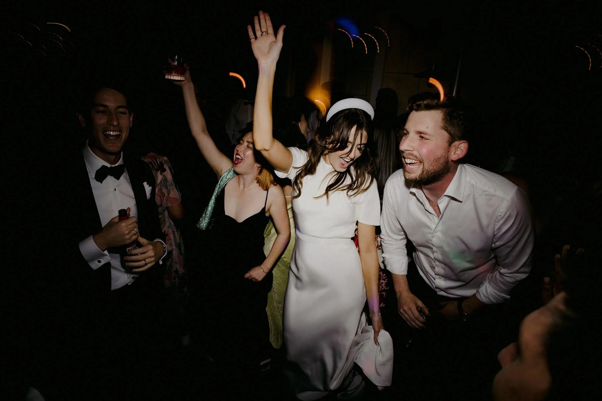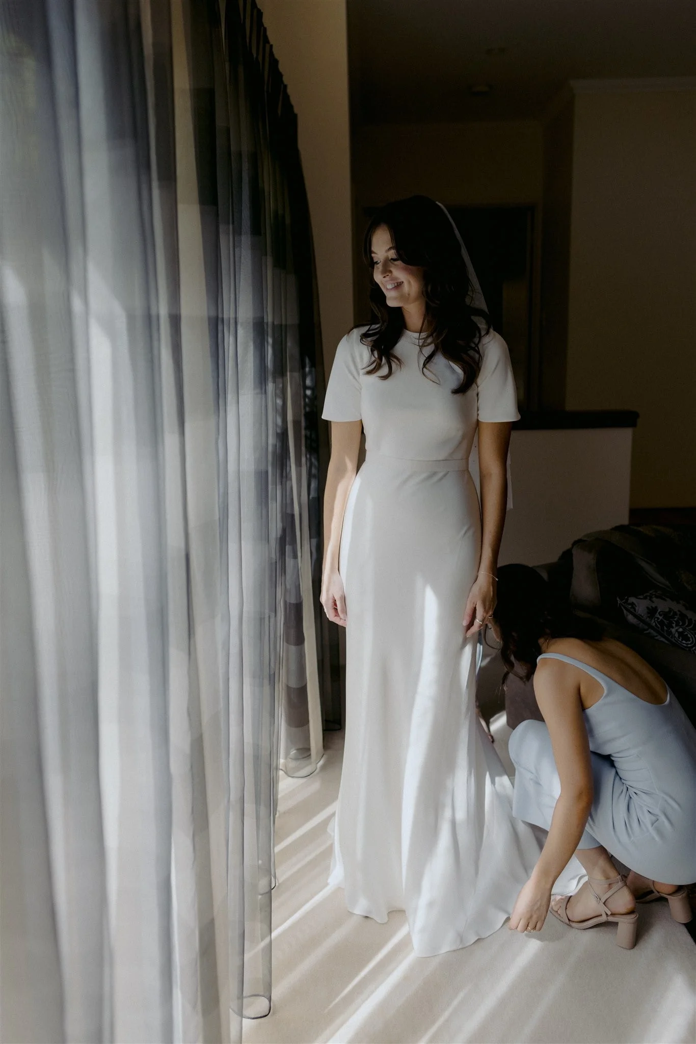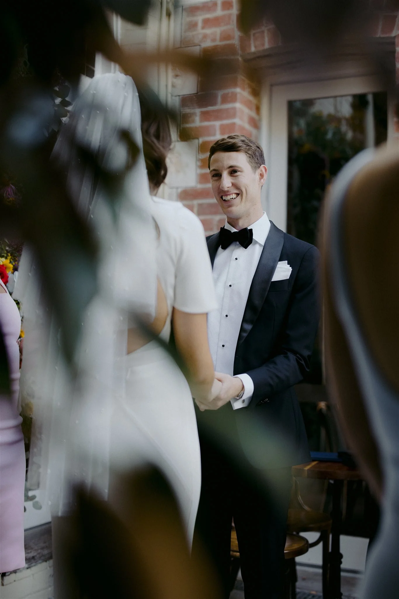WE’RE GLAD WE… “We both put a lot of effort into our vows, proofread our celebrant Meg’s introduction, and practised our first kiss. To me, this moment was the most ‘wedding’ part of the day, so it calmed my nerves a lot [knowing] how it would proceed (excluding knowing Bryce’s vows). We also danced a lot and spent the majority of the night walking around together to talk to our friends and family.”