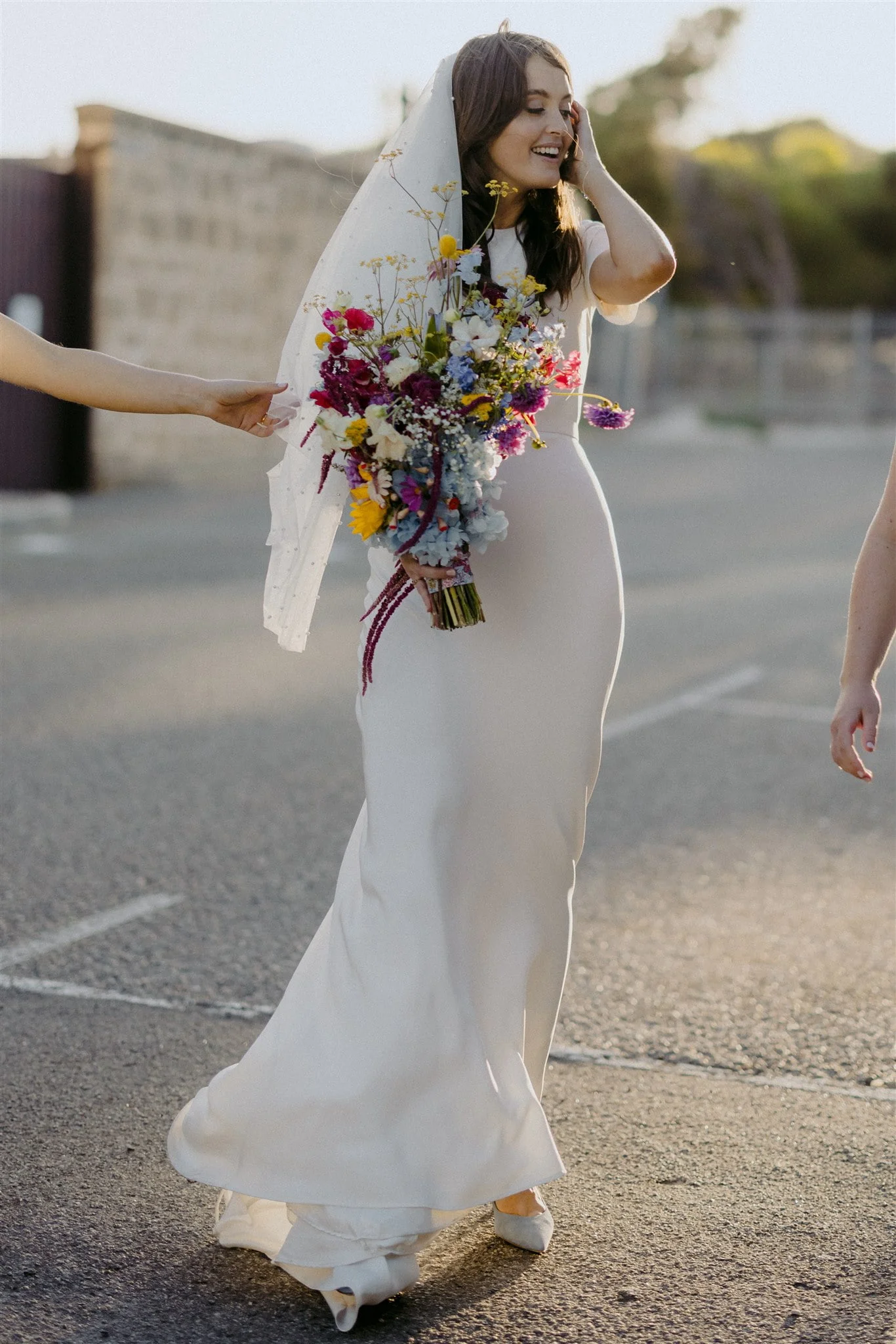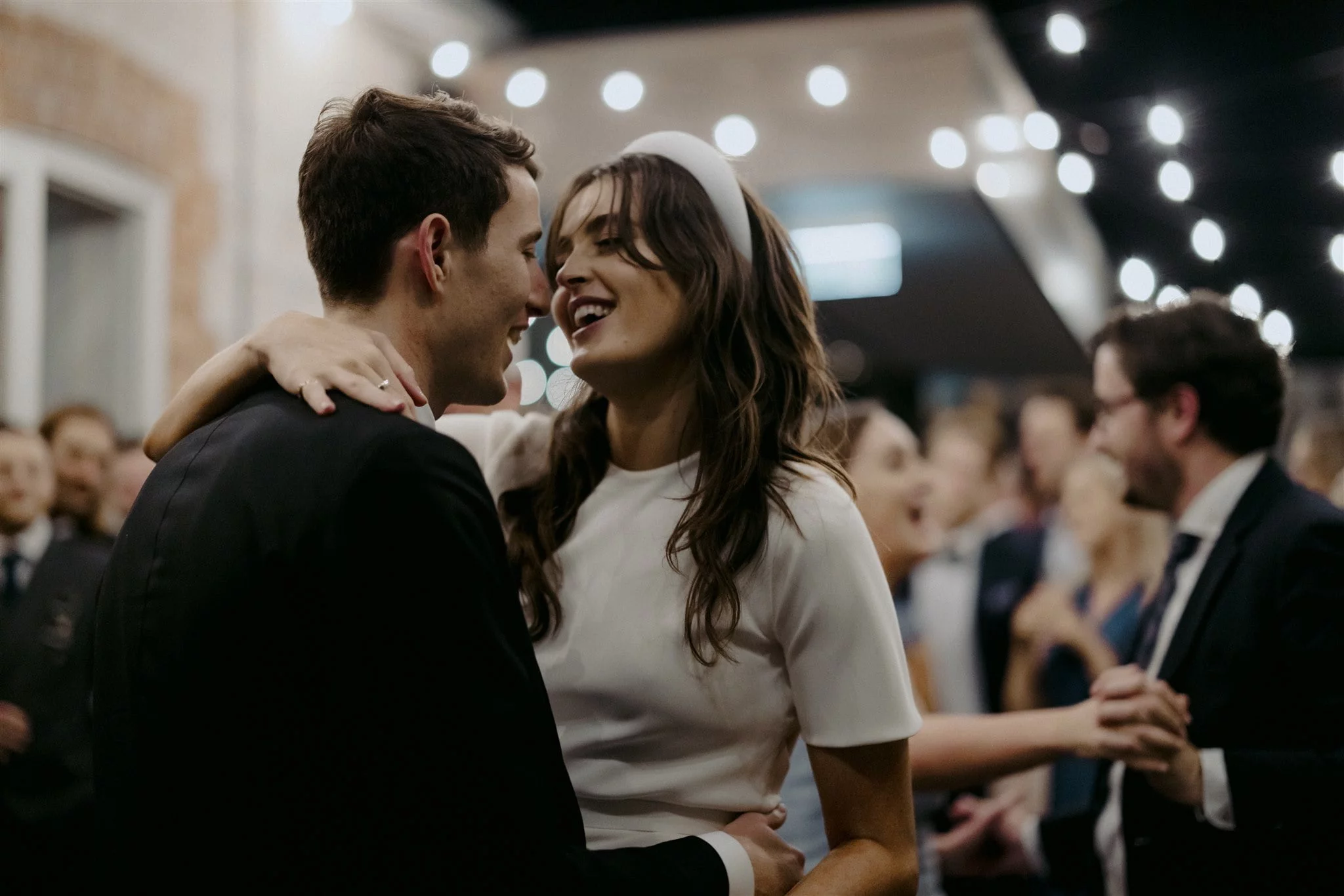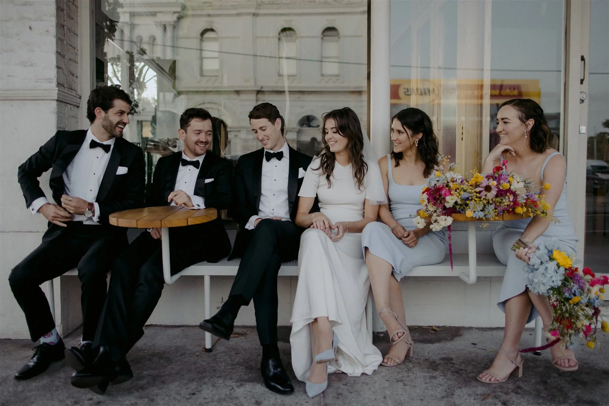 CONTRIBUTING VENDORS Photographer Flossy Photo Event Planner Amelia – Guildhall Event Space Florist The Flowergirl Perth Stationery Bryce Conway (Groom) & Henry King (Friend) Venue & Catering Guildhall Event Space Cake Maker Wild Bakery Lighting Hire JC Festoon Lighting Signage Bridget Pendergast (Bride), Bryce Conway (Groom) & Sticker Mule Celebrant Married by Megs Rings Sarah & Sebastian Entertainment Yon Jovi THE BRIDE Bridal Gown Designer Harriette Gordon Bridal Boutique Noa Bridal Veil Amélie George Shoes Zomp Hair & Makeup The Pretty Parlour Bridesmaid Dresses Bec + Bridge THE GROOM Suit & Pants M.J. Bale Shirt, Cufflinks & Bow Tie P.Johnson Shoes Ted Baker Watch Longines Barber / Grooming Billy Snips – Bloodhound Barbers