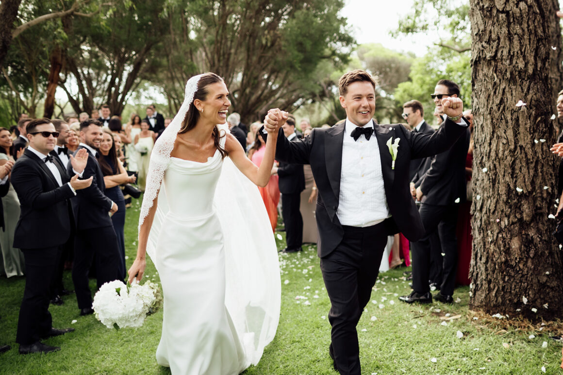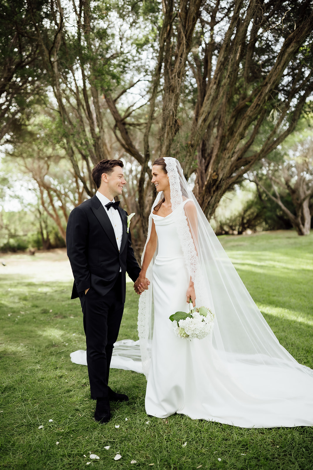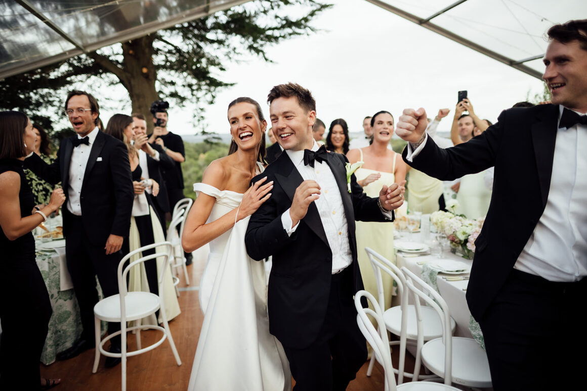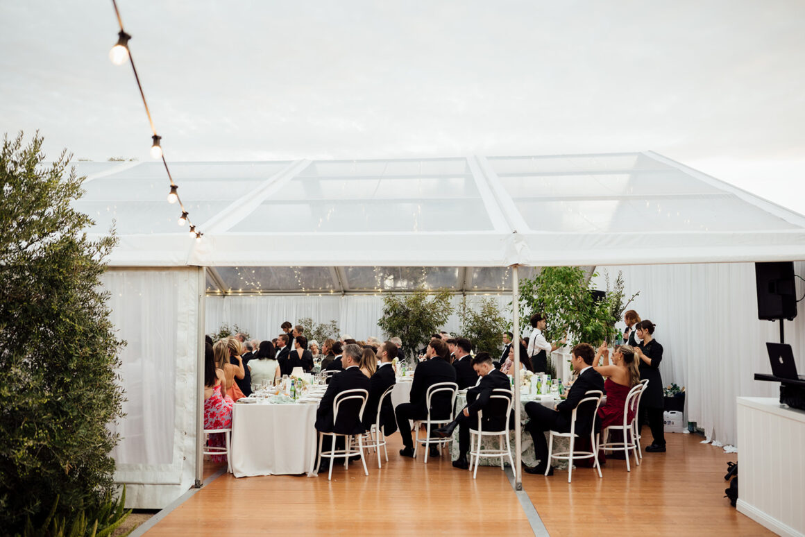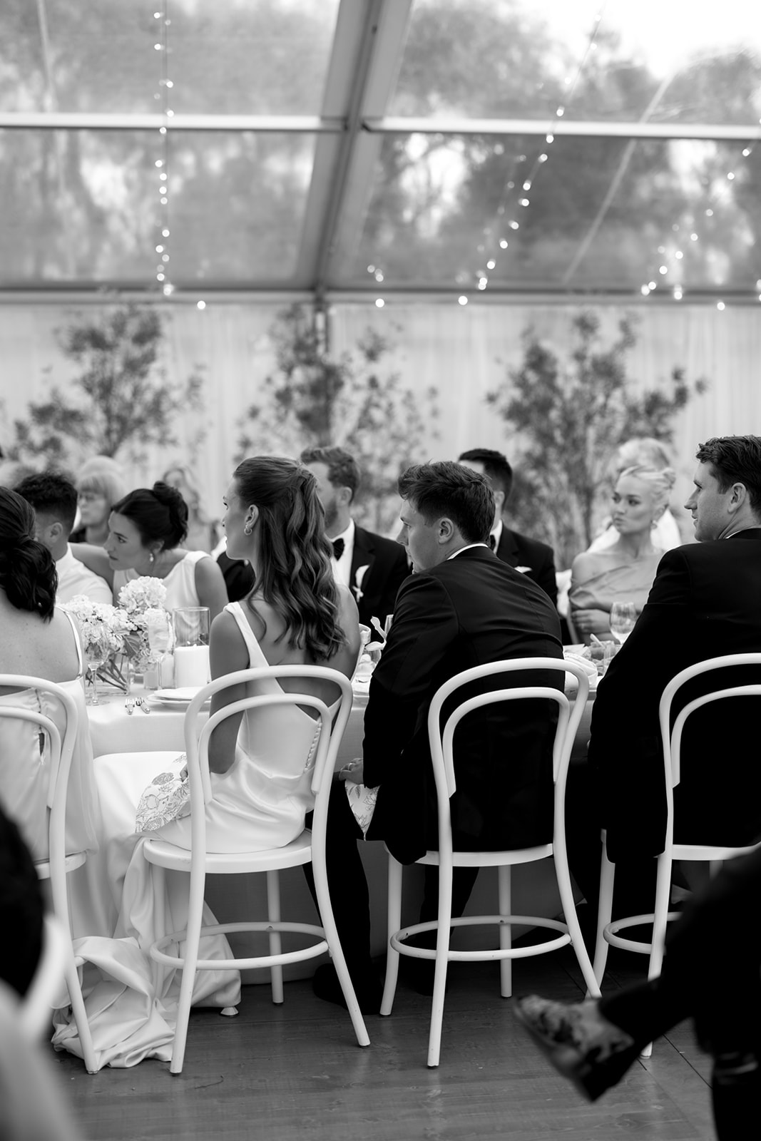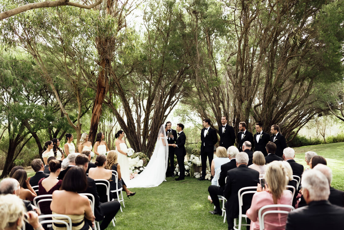 There’s no place like home, and while Bridget and Tommy considered getting married in Melbourne, nothing felt quite as magical as the bride’s family abode in Boneo on the Mornington Peninsula. Backdropped by lush green scenery, this marquee celebration was elegant as can be, yet steeped in warm, welcoming dinner-party-at-home energy.